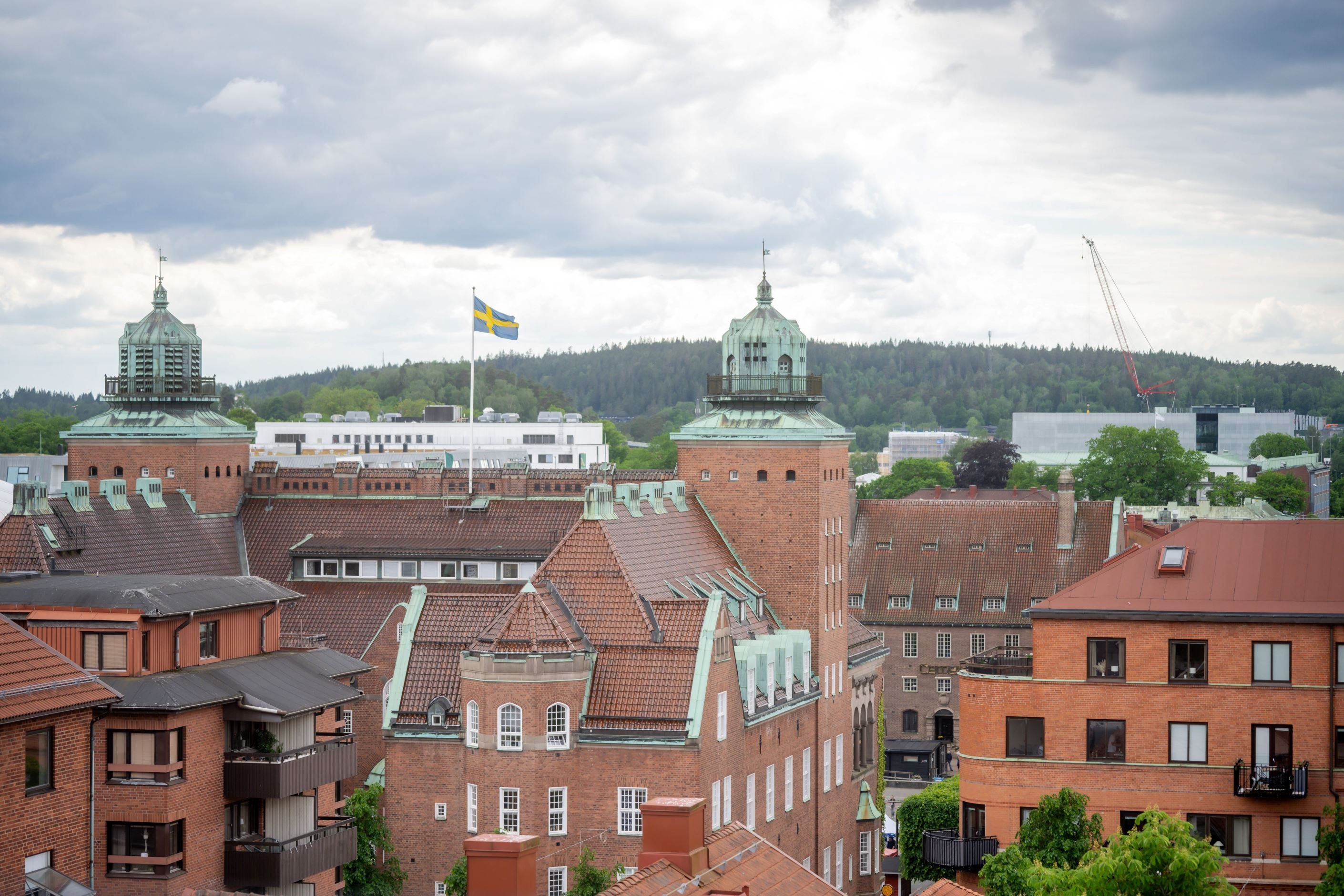 Från balkongen har du vacker utsikt över staden, takåsar och kyrktornet. Solen är med som trevligt sällskap hela eftermiddagen och kvällen.