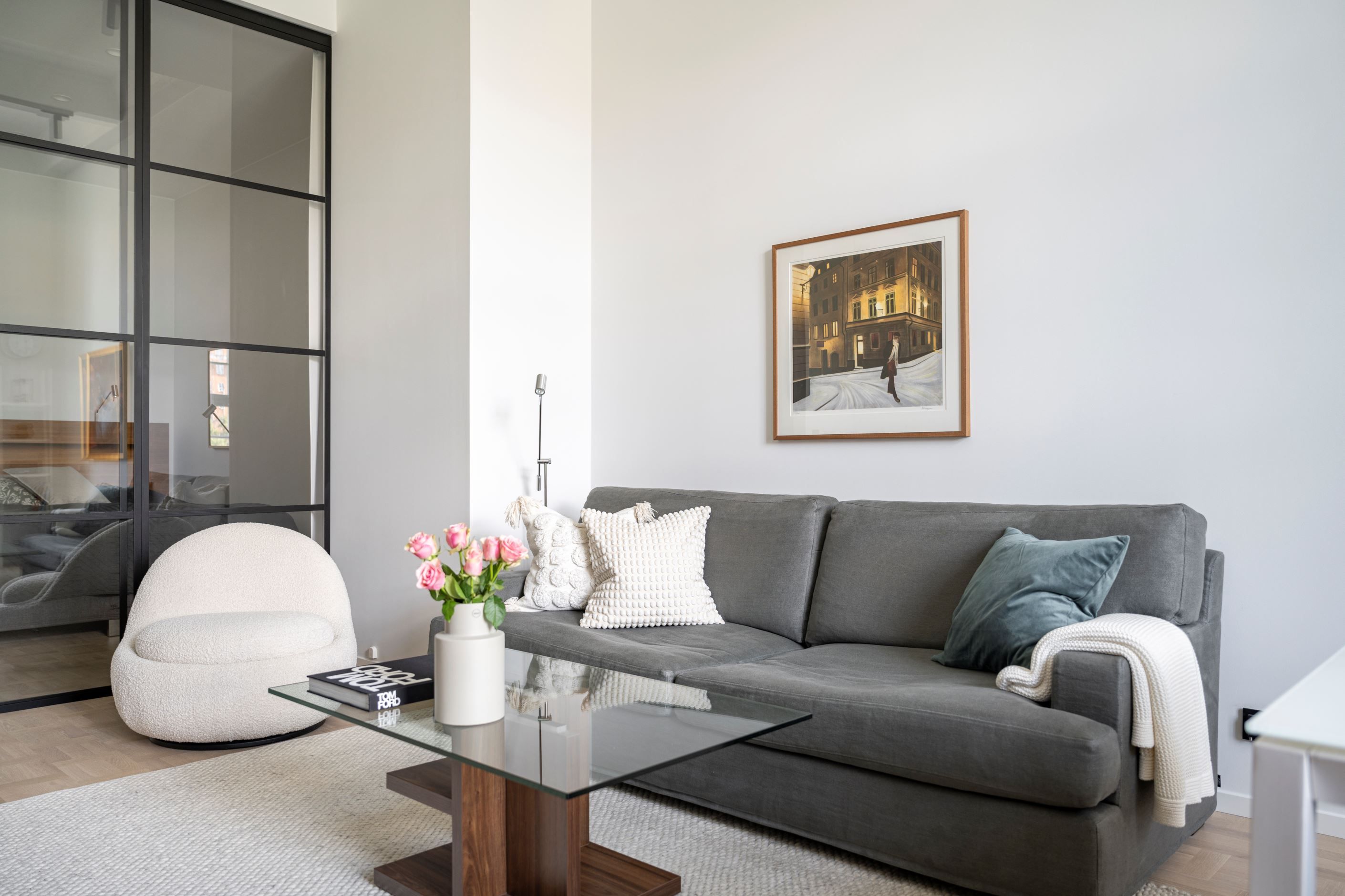 På första parkett mot Karlsbergssjön ligger denna magnifika bostad. Lägenheten är belägen i det vackra och anrika Tulohuset som byggdes 1926. Bostaden är nyproducerad (färdigställdes dec 2022) med en smakfull kombination av industriell loft känsla och exklusiv design. Den ovanligt höga takhöjden om ca 4 meter ger bostaden en fantastisk rymd och det vältilltagna fönster ett härligt ljusinsläpp.
