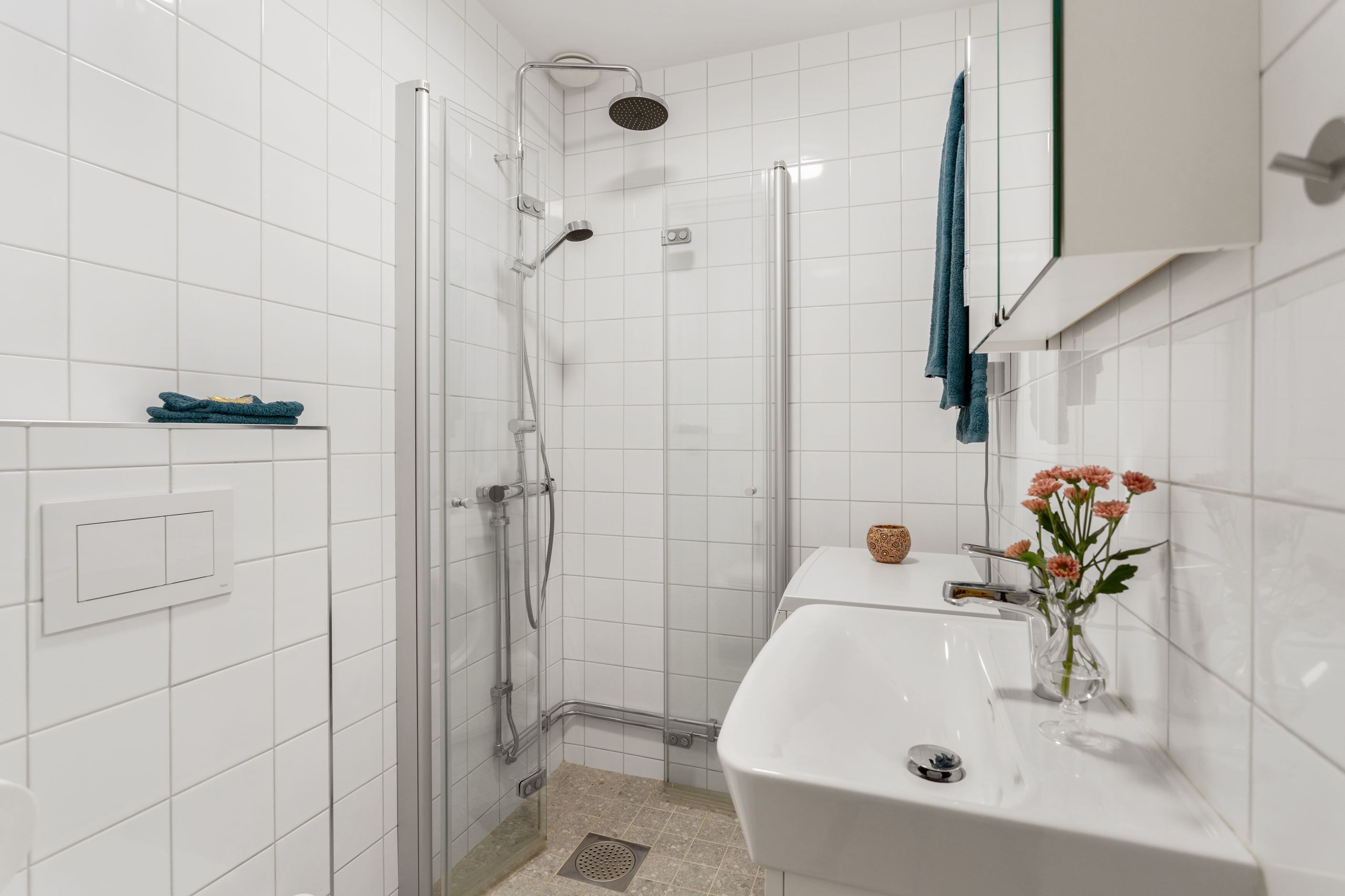 Ljus lägenhet med rymligt sovrum, väldisponerat vardagsrum med plats för stort matbord, bra förvaring i rymlig klädkammare samt nyrenoverat badrum med tvättmaskin.