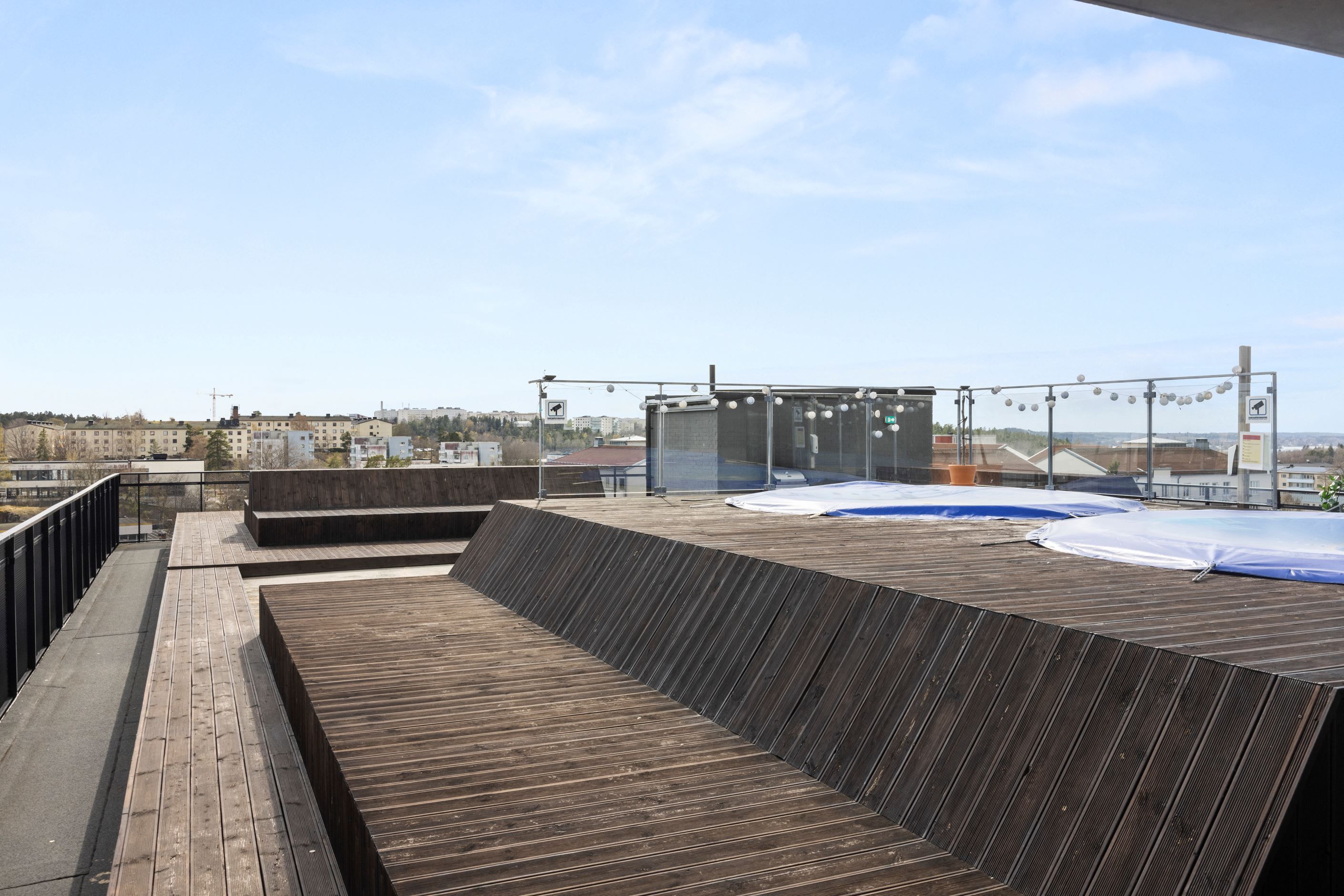 På taket finns en gemensam takterrass som ger en pampig panoramavy över takåsar, natur och en härlig glimt över Mälaren. Njut av en god middag tillsammans med vänner eller koppla av i det härliga spabadet och glöm bort vardagens stress för en stund. Detta är verkligen en plats att njuta av och att trivas på.