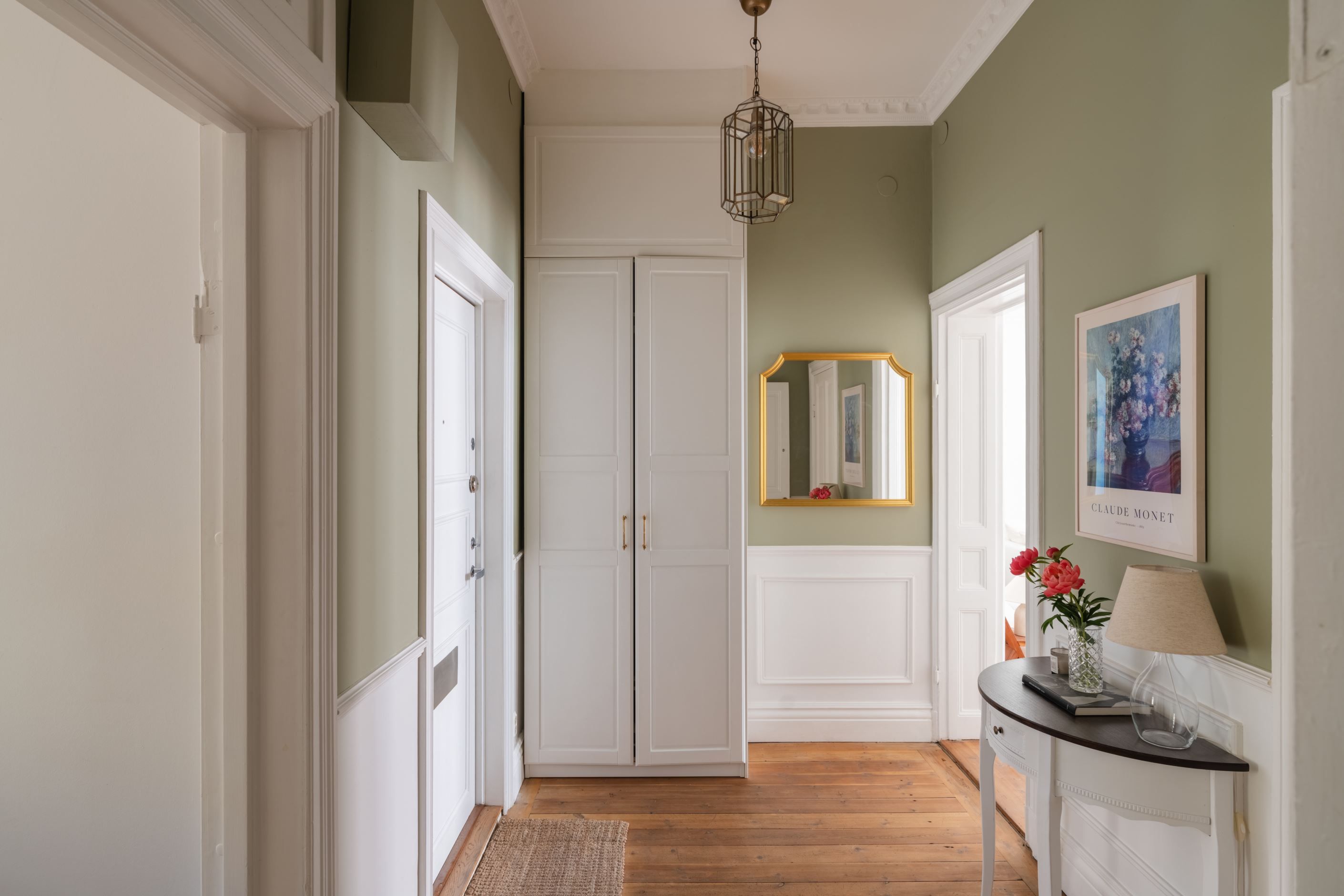 Bostaden är belägen 2,5 tr upp och erbjuder en tilltalande, genomgående planlösning i klassisk stil. Det rymliga vardagsrummet utgör hemmets naturliga samlingspunkt, med en stämningsfull kakelugn och gott om plats för både soffgrupp och stor matplats. Härifrån nås det rymliga sovrummet via vackra pardörrar.