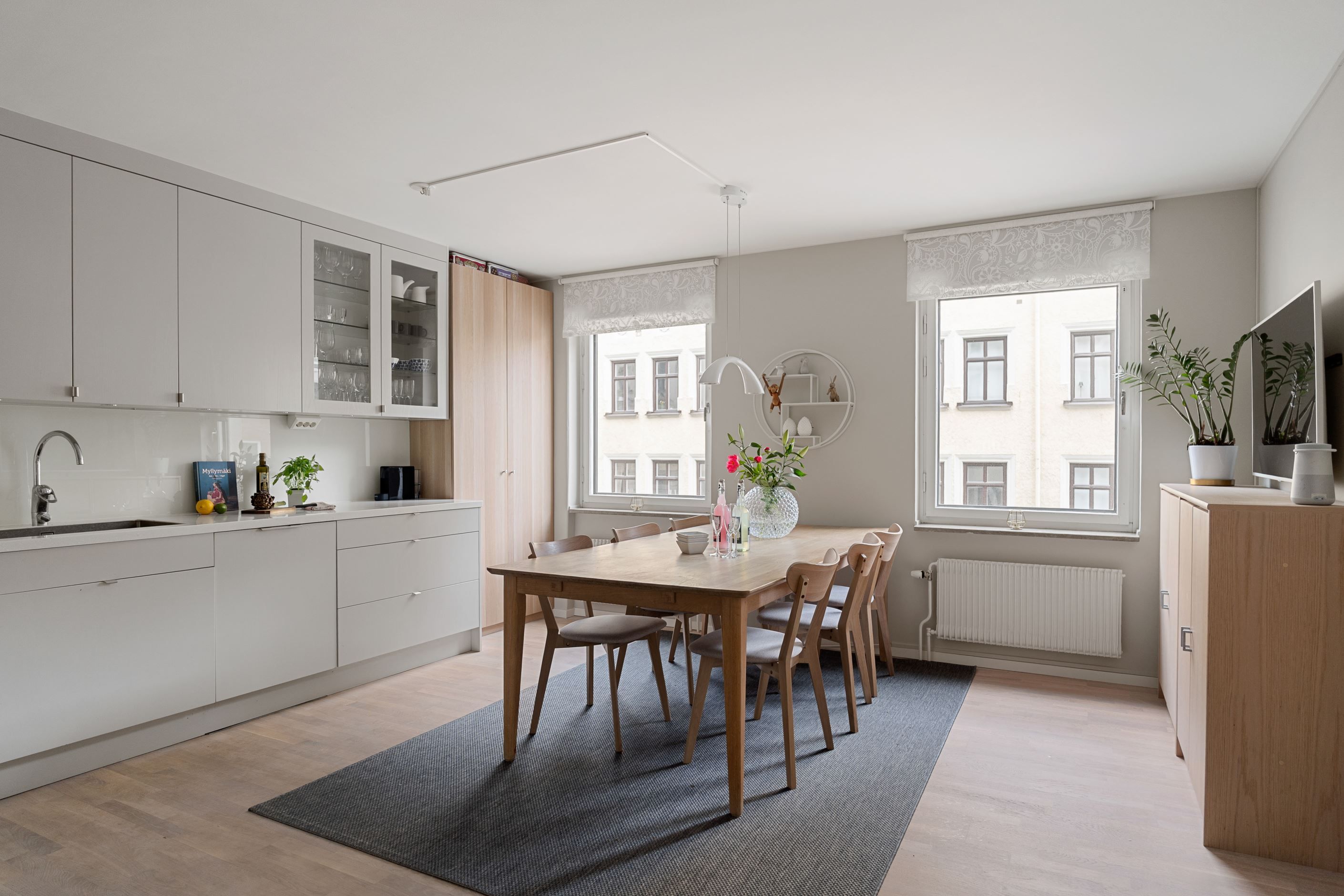 Utmärkt planlösning i hörnläge med 4 sovrum samt kök och vardagsrum i öppen planlösning som ger boendet en fin rymd. Därutöver finns en separat gäst wc, ett stort badrum med tvättpelare, dusch och badkar samt två klädkammare med gott om förvaring. Ett unikt tillfälle att förvärva detta fantastiska hem på bästa adress med alla bekvämligheter invid grönskande Tegnérlunden och Vasaparken.