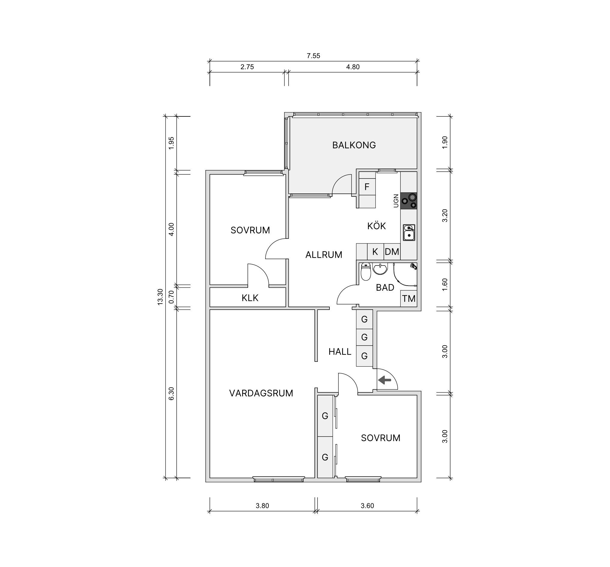 - 76,5 kvm