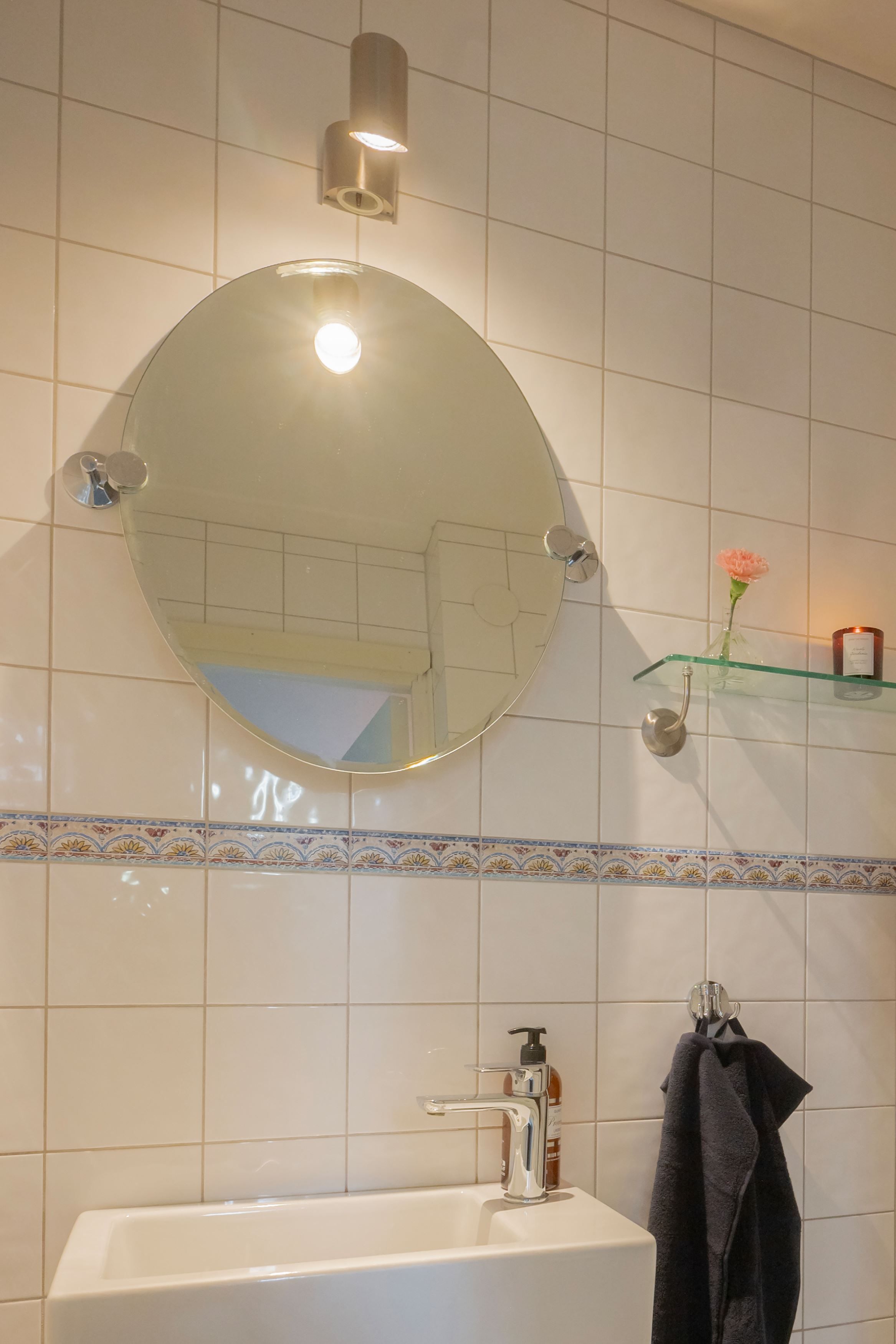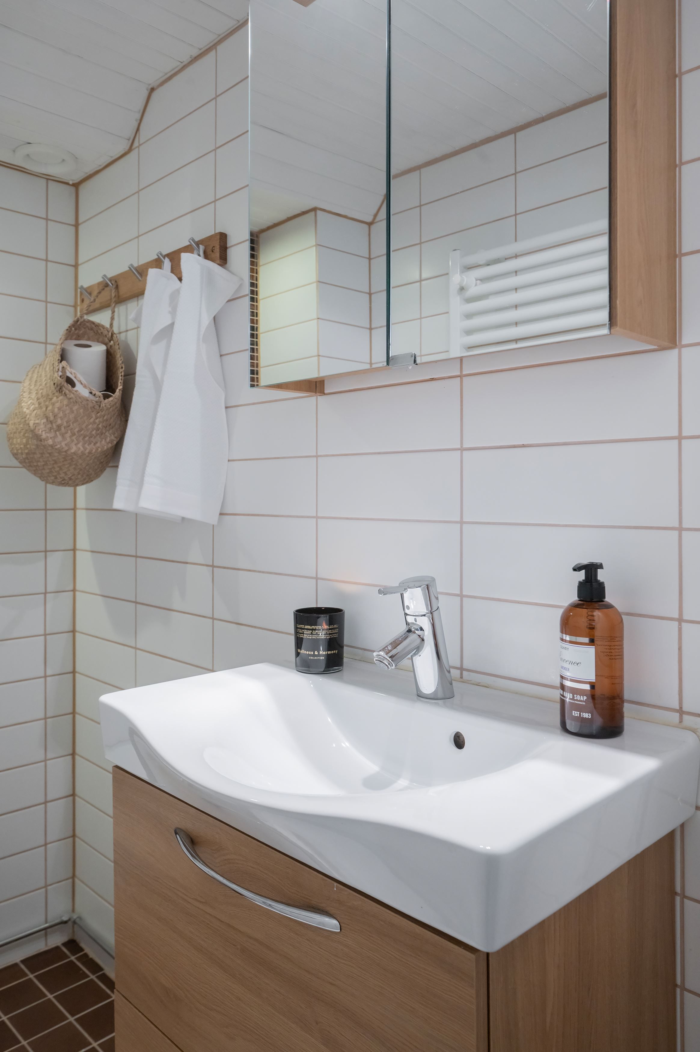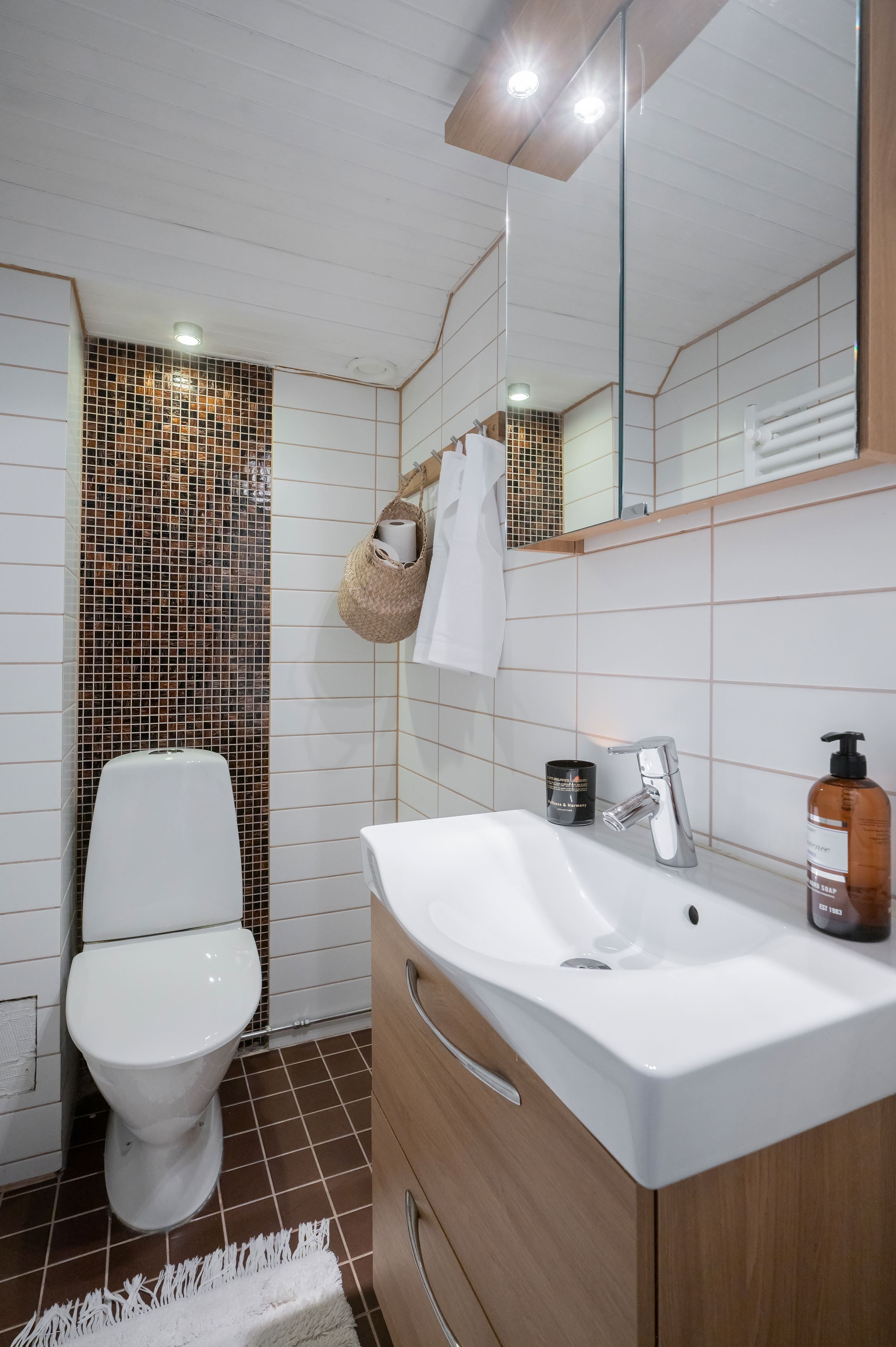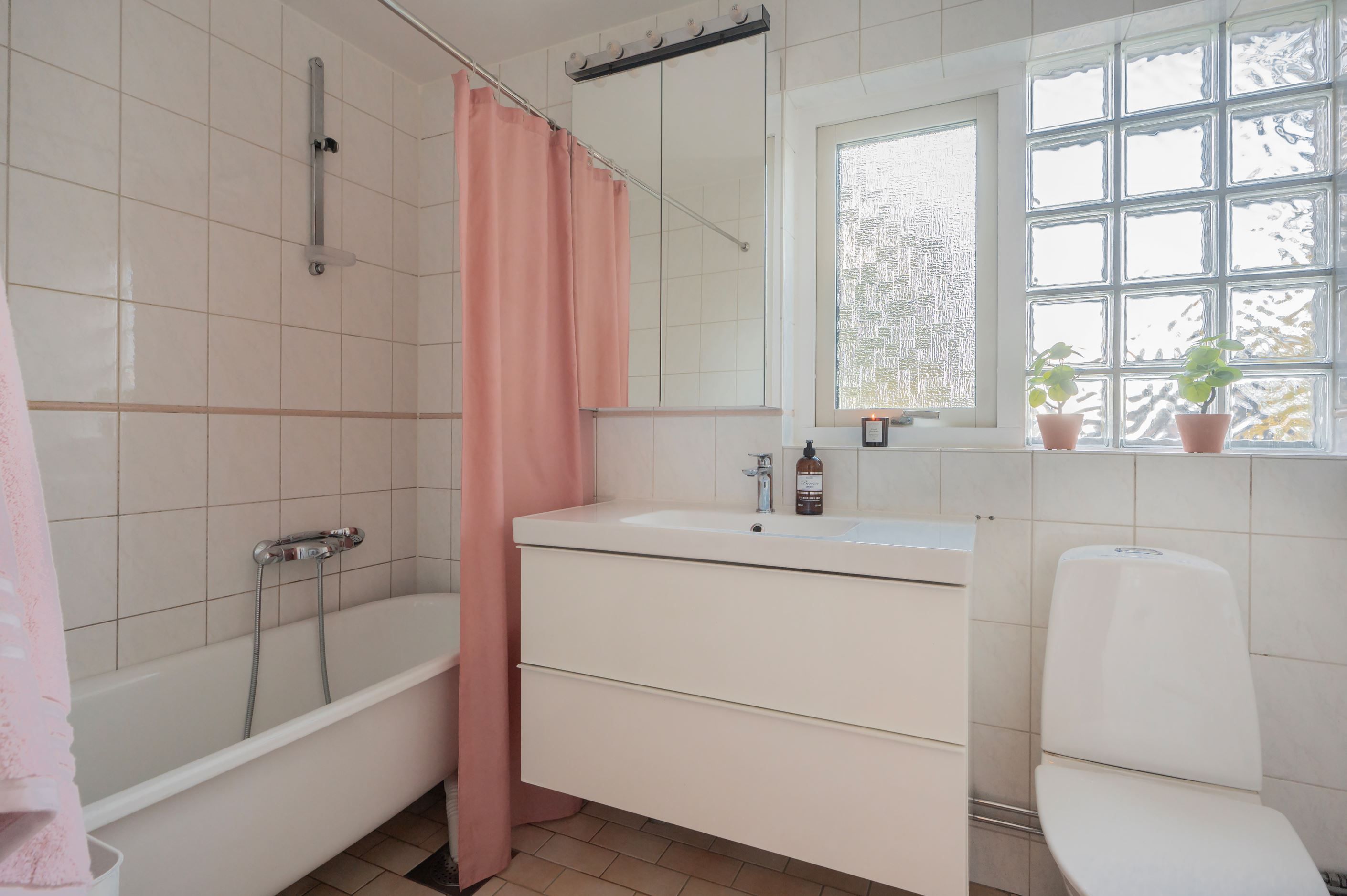 -Ett stilrent badrum med golvvärme, två separata WC samt en separat dusch