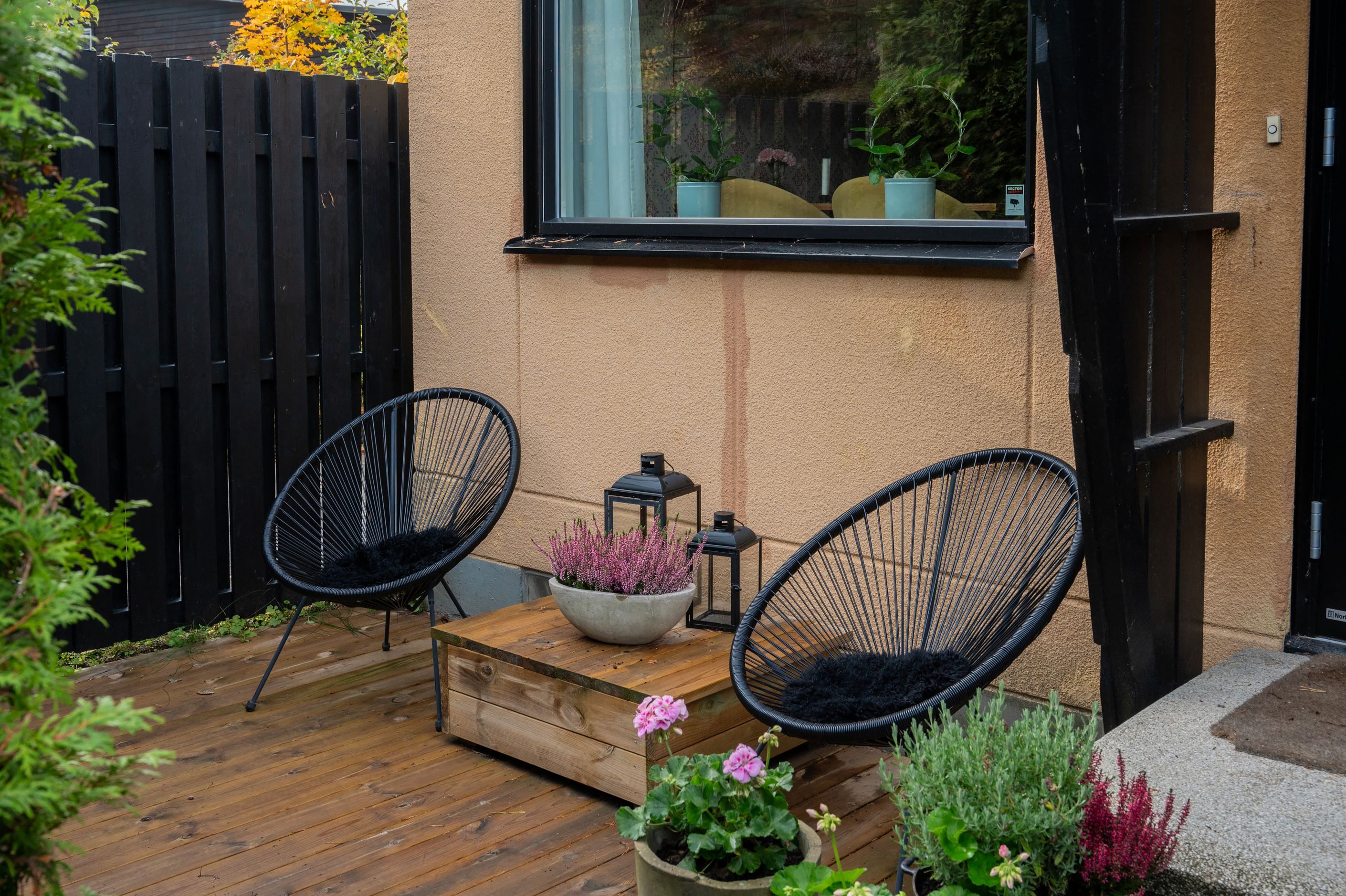 -Uteplatser på både fram- och baksida, med sol hela dagen