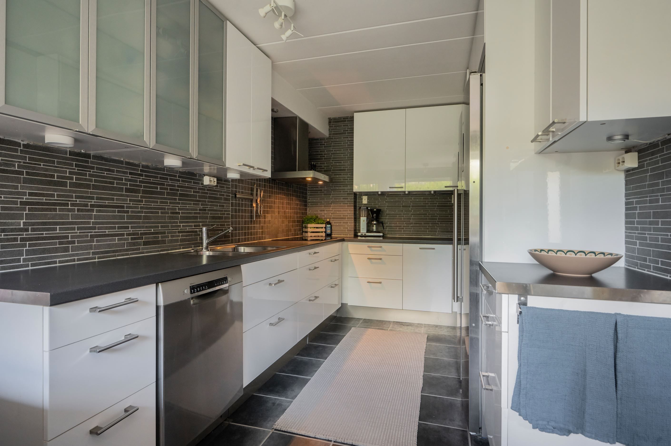 Detta hem erbjuder allt man kan önska sig i form av storlek och generösa ytor, vilket gör det idealiskt för den stora familjen. Här finns gott om plats, stilrena materialval, fina våtutrymmen och ett smakfullt kök med matplats för hela familjen. Radhuset har dessutom en stor uteplats i västläge med eftermiddagssol på baksidan, vilket gör att du kan njuta av solen större delen av dagen.