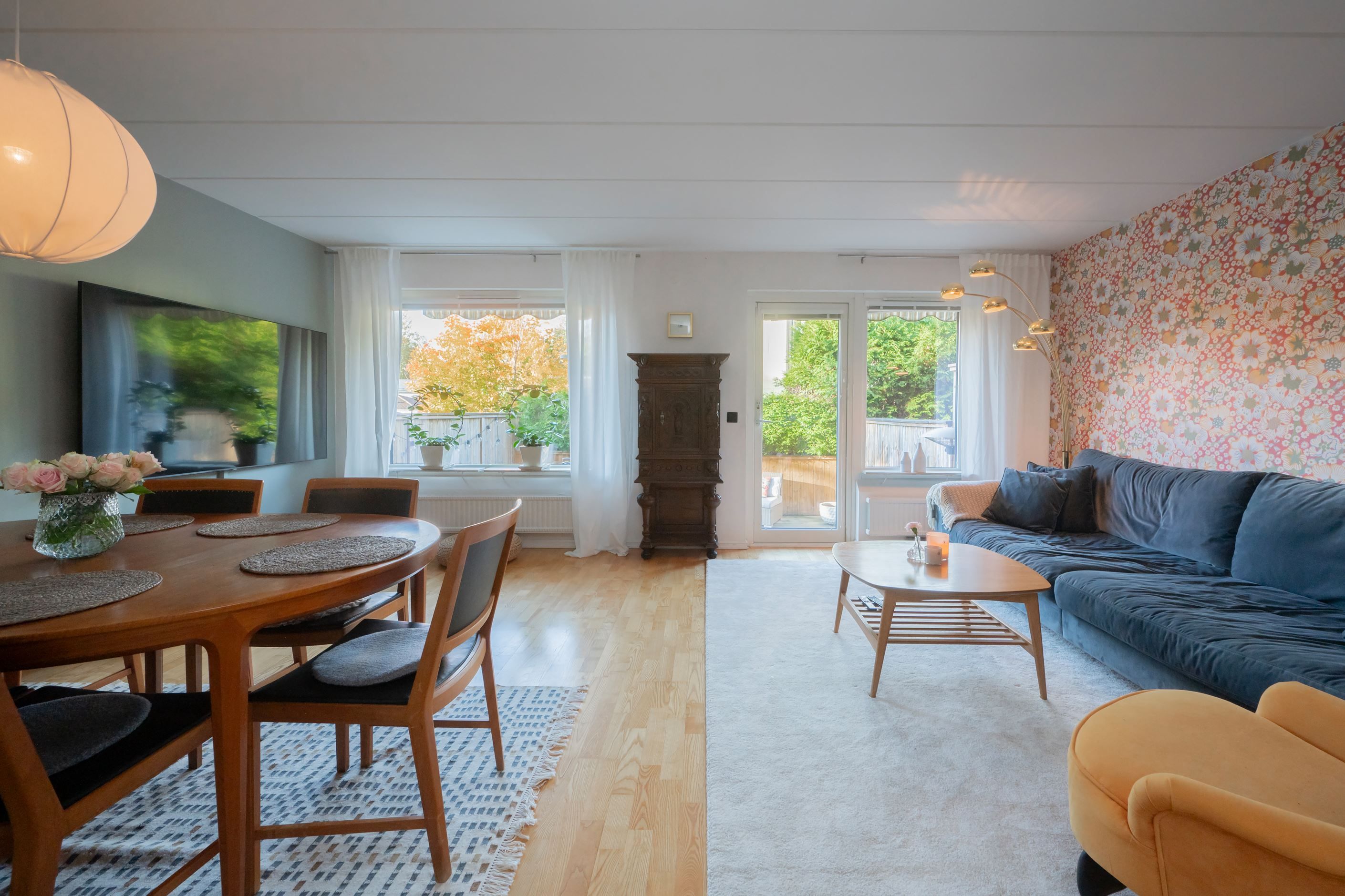 Det stora vardagsrummet på entréplanet bjuder på härlig rymd och flexibilitet, perfekt för både sociala tillställningar och mysiga familjekvällar. Sovrummen är rymliga och smart placerade, och hela bostaden är i mycket gott skick, så det är bara att flytta in.