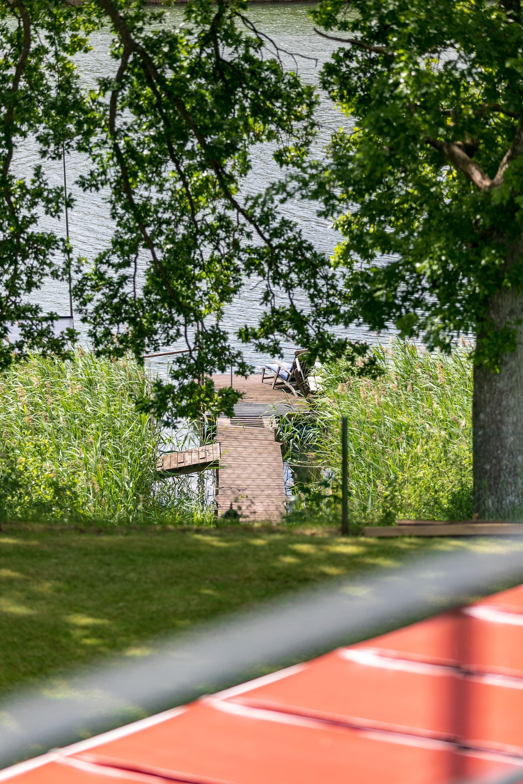 Tomten omfamnas av grönska och har gott om plats för lek och odling. Den egna bryggan blir en given favorit för morgondopp, fiske eller bara lugn avkoppling med utsikt över vattnet, här finns även en vedeldad bastu och el är draget till bryggan. Från bryggan tar man sig enkelt ut med båt och har direkt anslutning till Göta kanal – perfekt för den som vill upptäcka vattenvägarna vidare.