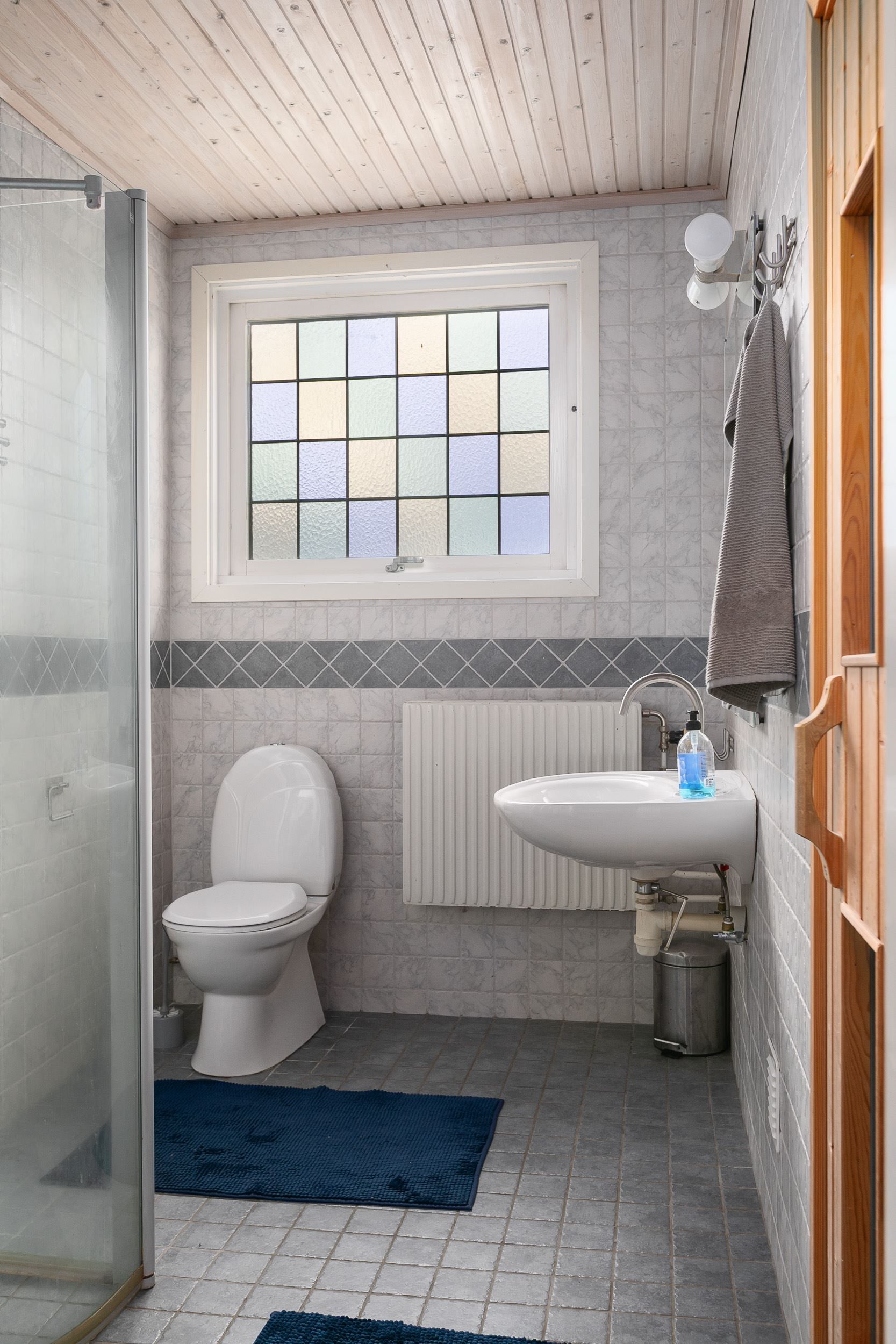 På övre plan finns ett stort allrum med utgång till balkong och underbar sjöutsikt. Här finns även tre sovrum, ett kontor/sovrum, wc samt en bastu. Flera praktiska garderober och kattvindar ger generöst med förvaring.