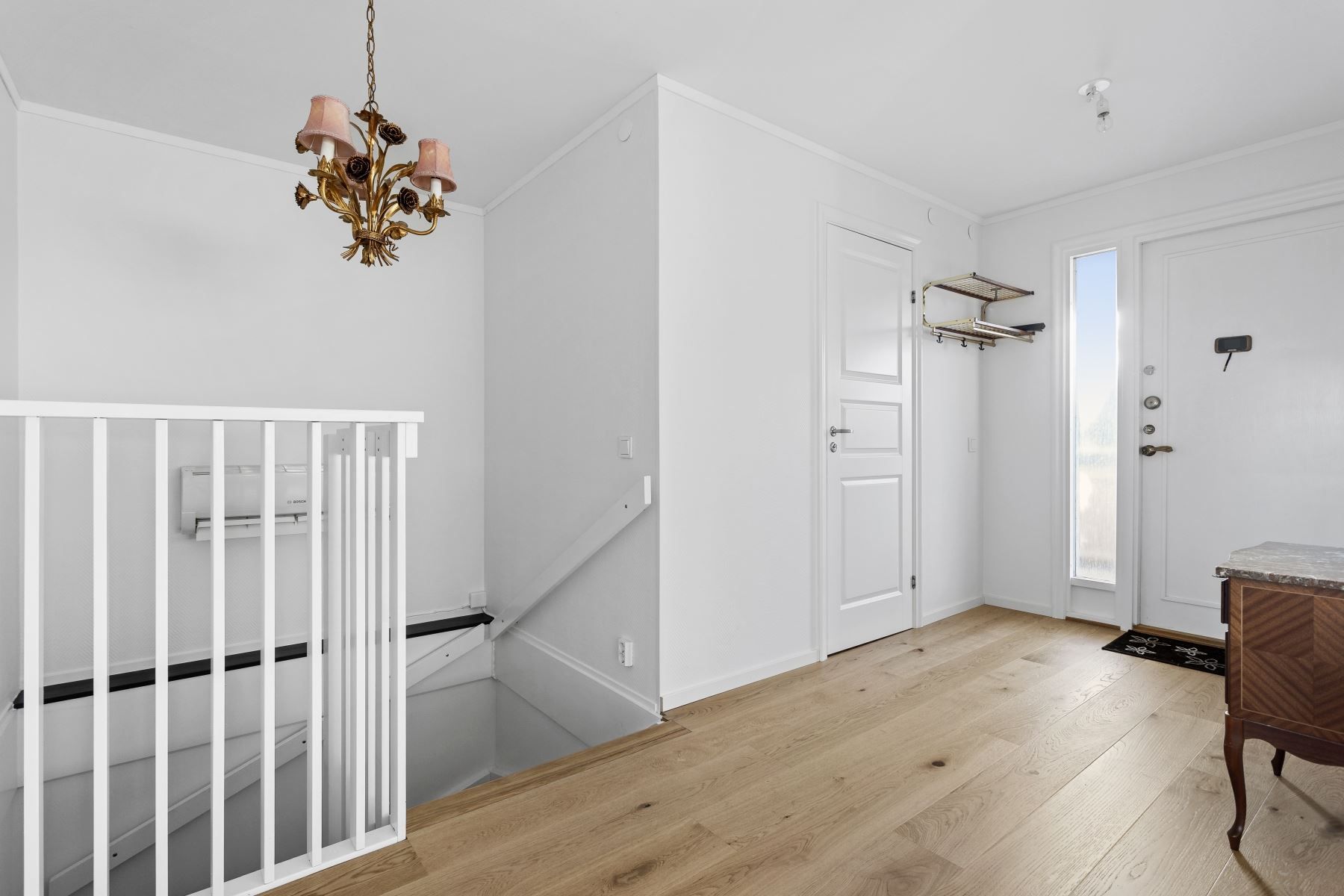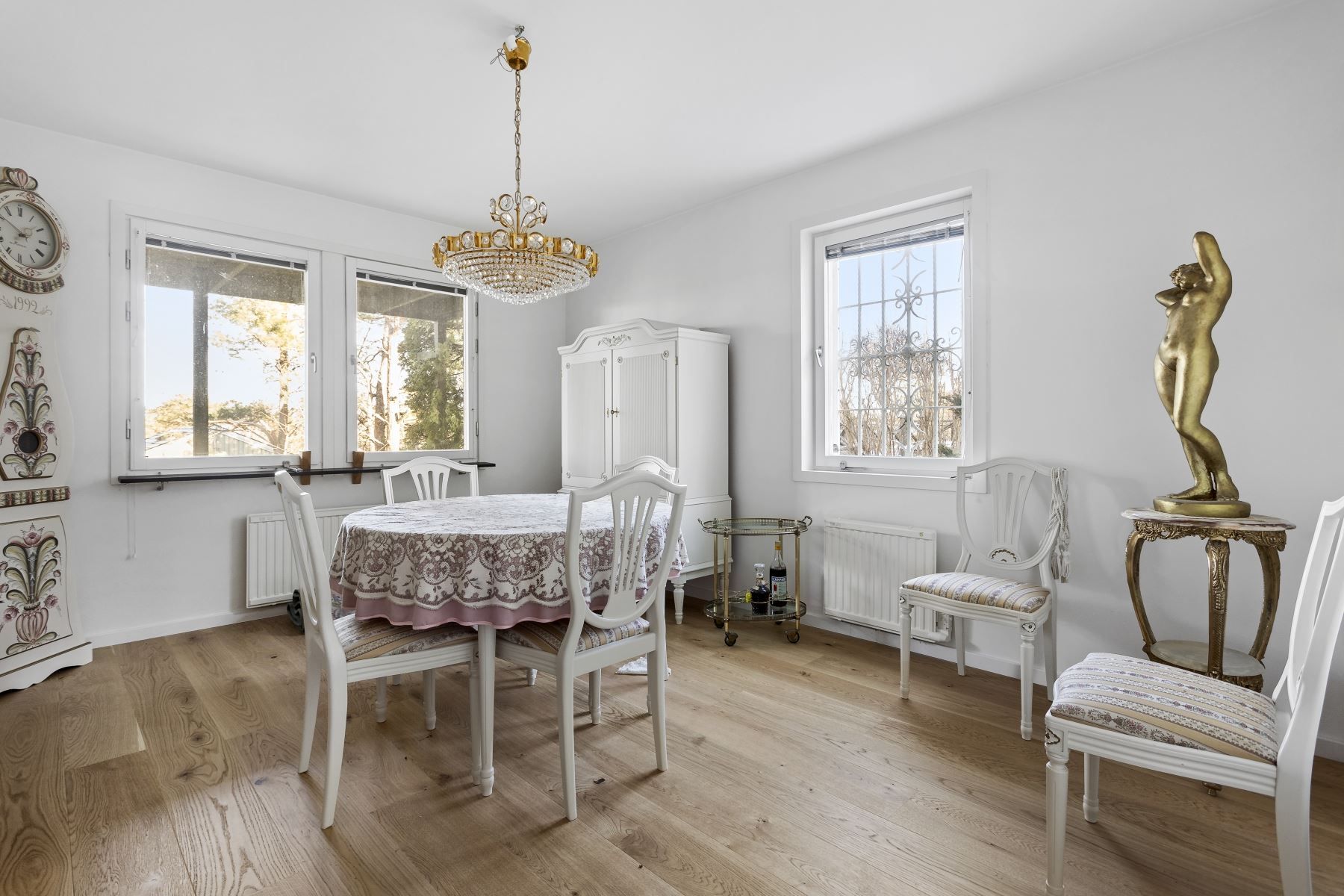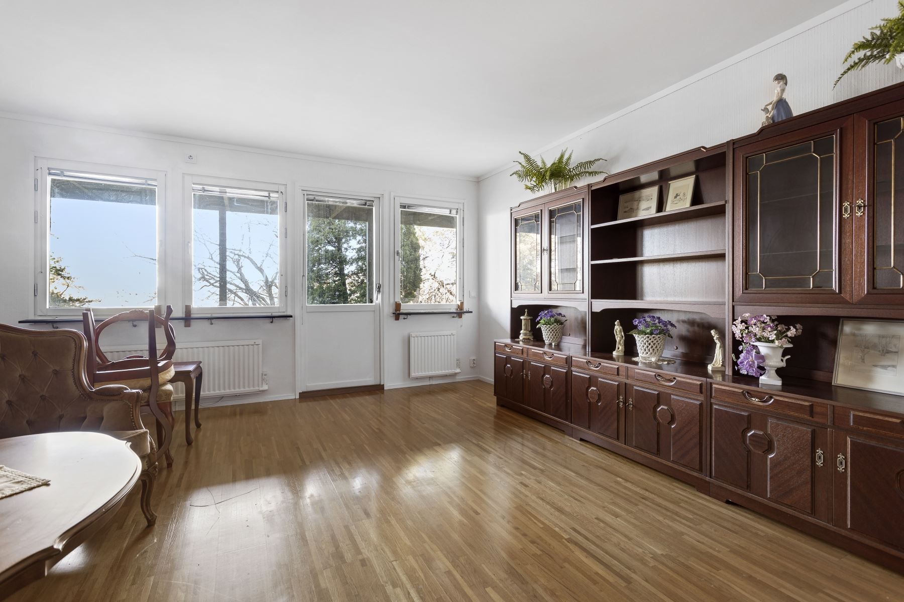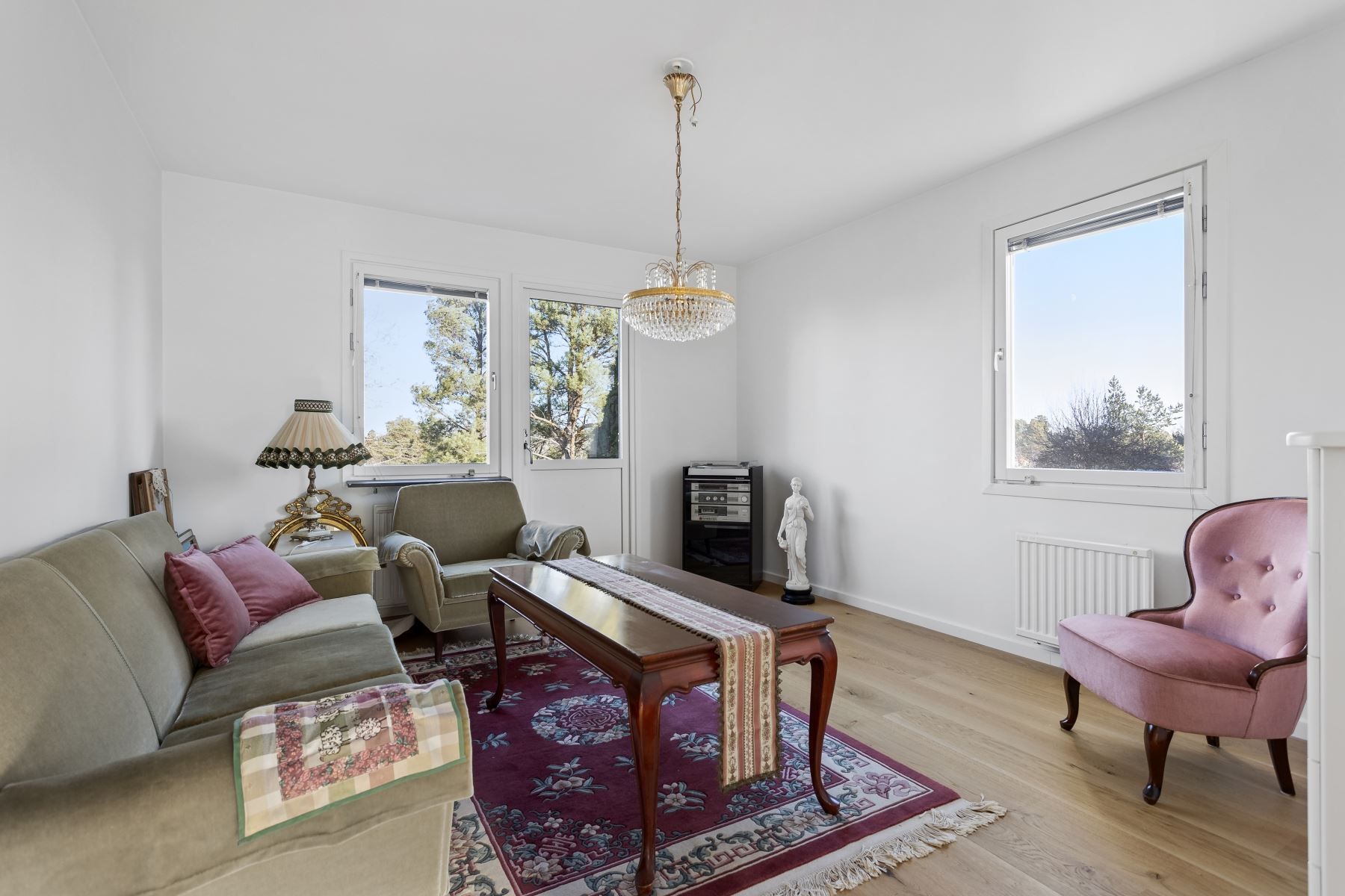 Familjeidyll i omtyckta kvarter! Insynsskyddad och fantastisk tomt med milsvid utsikt. Garage bredvid huset. Nära skola, förskolor, affär, kommunikationer, Mälaren och grönområden.