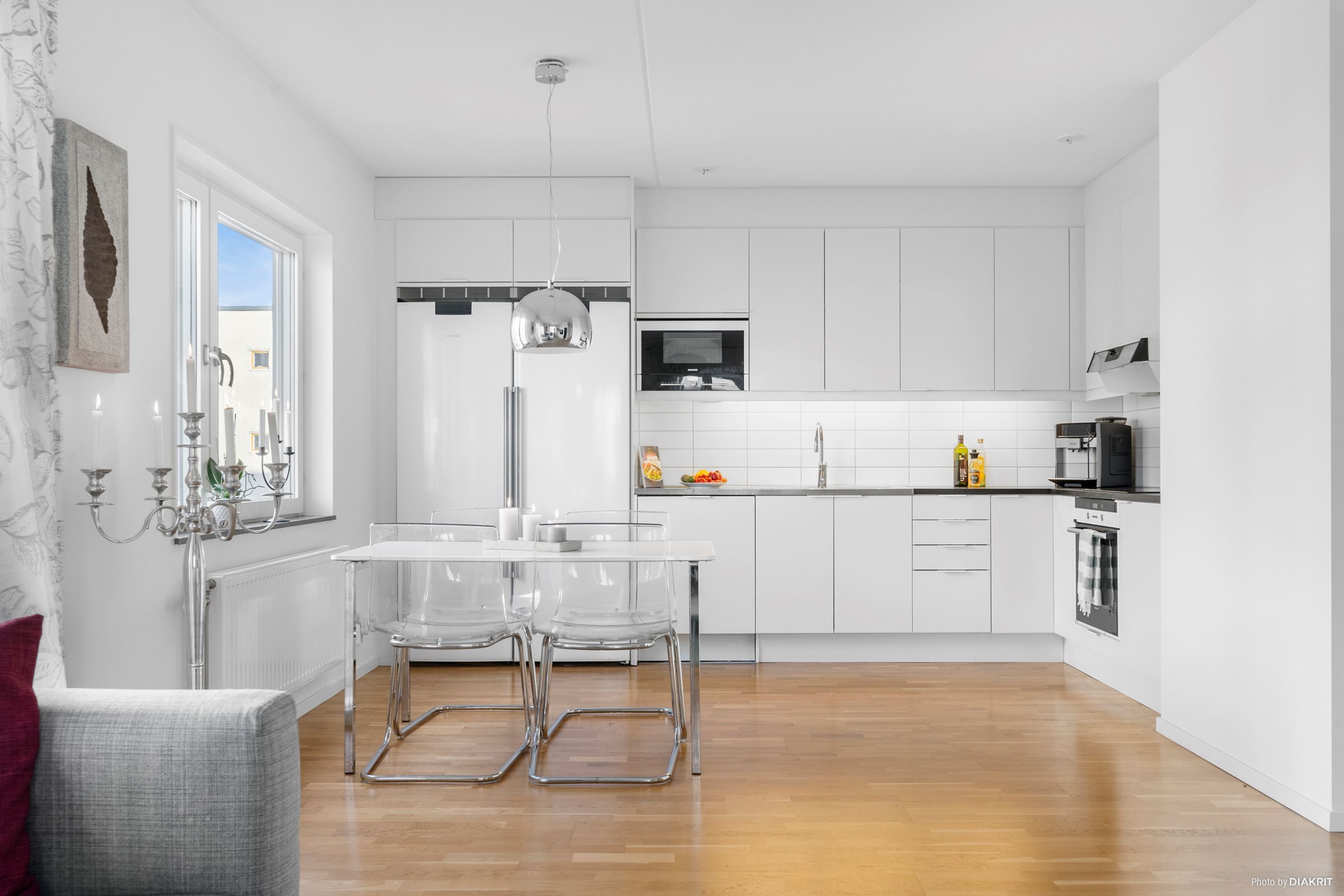 Härlig och ljus gaveltrea med balkong mot vacker innergård!
