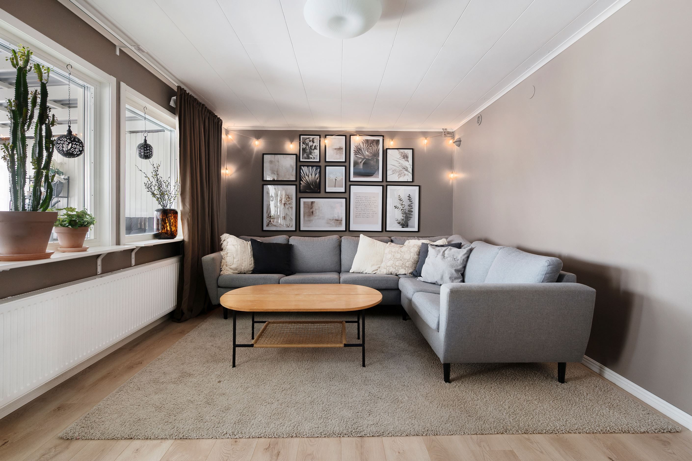 Bostaden har under de senaste åren genomgått omfattande och smakfulla renoveringar där inget lämnats åt slumpen. Här möts du av en modern och harmonisk interiör med genomgående uppdaterade ytskikt – samtliga golv och väggar har renoverats (med undantag för golvet i tvättstugan), vilket ger ett enhetligt och stilrent helhetsintryck.
