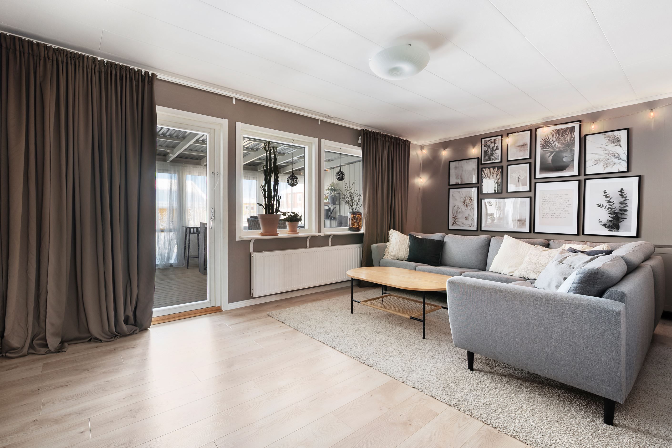 Via vardagsrummet nås sedan den stora inglasade altanen i västerläge vilken förlänger utesäsongen rejält och blir snabbt en favoritplats från tidig vår till sen höst. Här kan du njuta av eftermiddagssol och kvällssol i en skyddad och trivsam miljö. Gavelläget ger dessutom extra rymd och en luftig känsla både inne och ute.