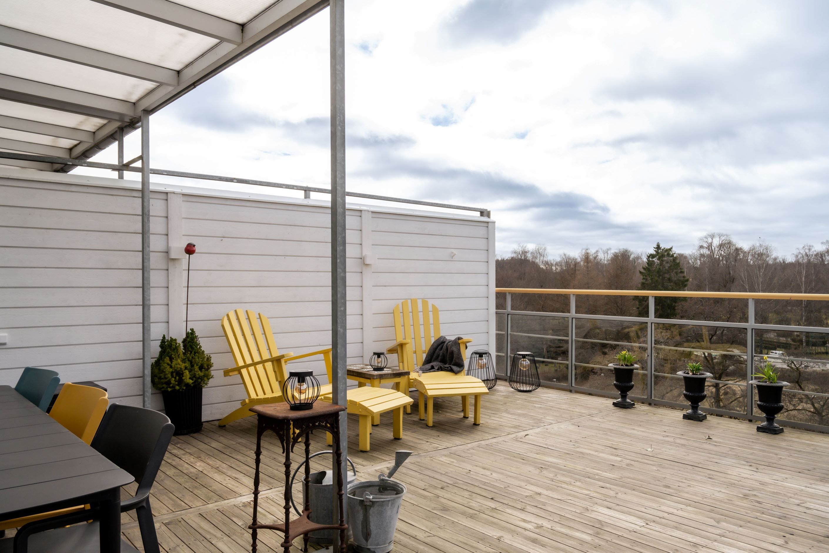 Nytt och fräscht, mitt i stan och högst upp i huset med en helt fantastisk takterrass. Köket är smakfullt och exklusivt renoverat med påkostade materialval och uppdaterade vitvaror. Pluslistan på detta hem kan göras lång.
