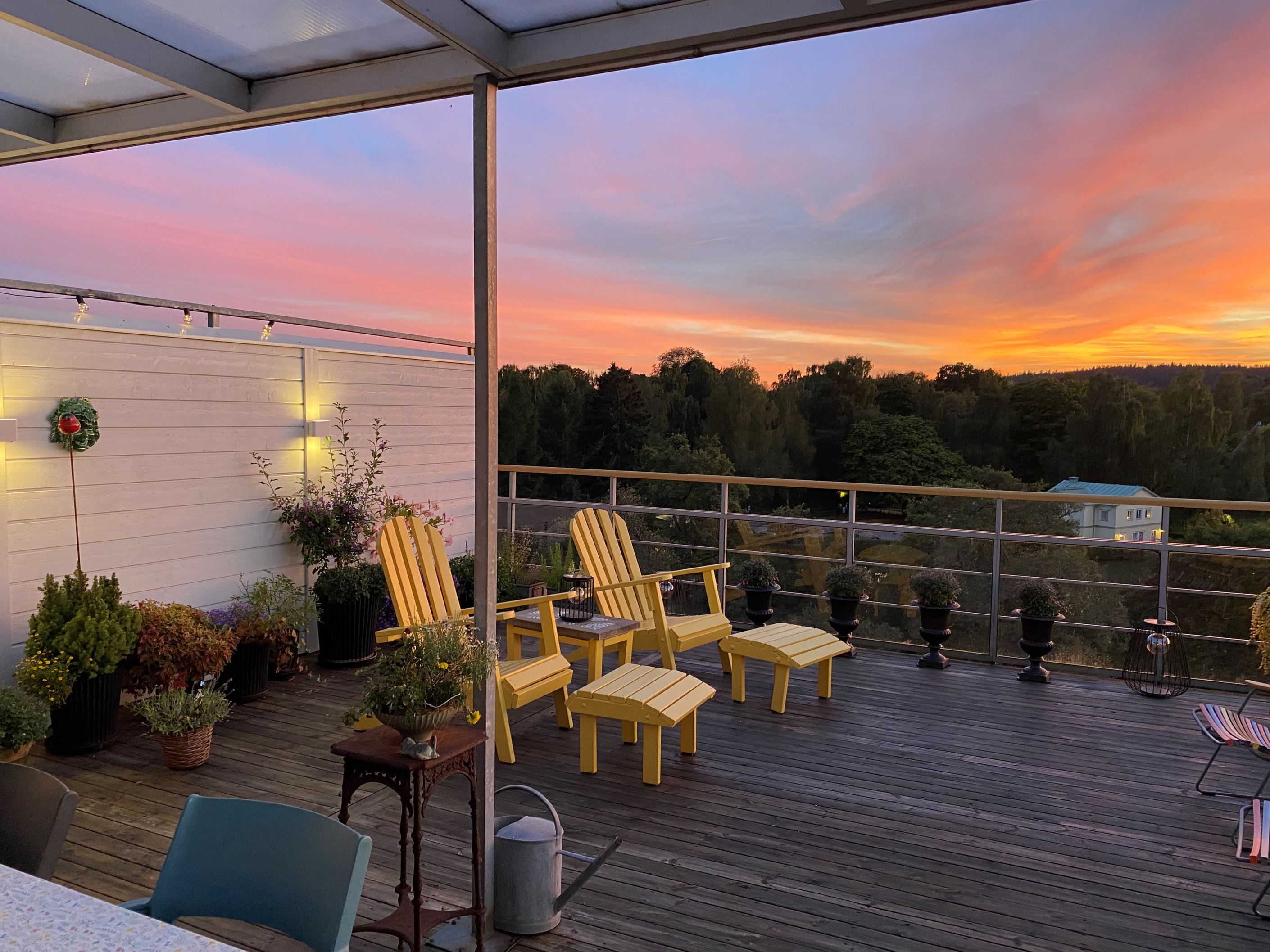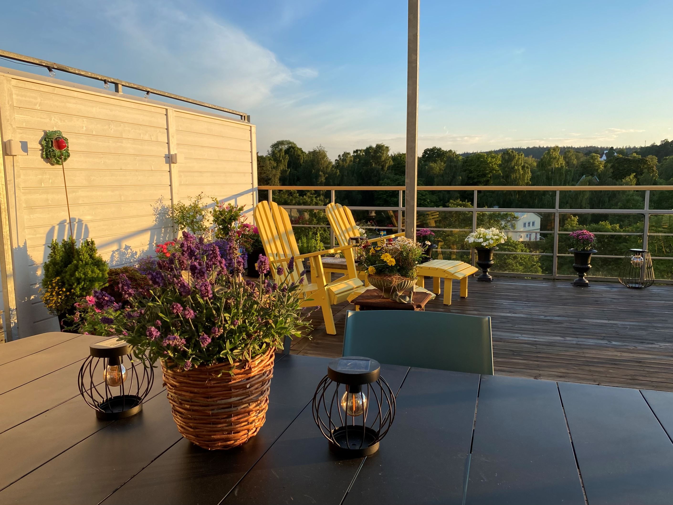 Sommartid vill man spendera mer tid på terrassen än inomhus. Solen är med som trevligt sällskap hela dagen, solnedgången här är magisk och du har första parkett året om. Fram med loungegrupp, solstolar, grill och växter. Allt får plats.