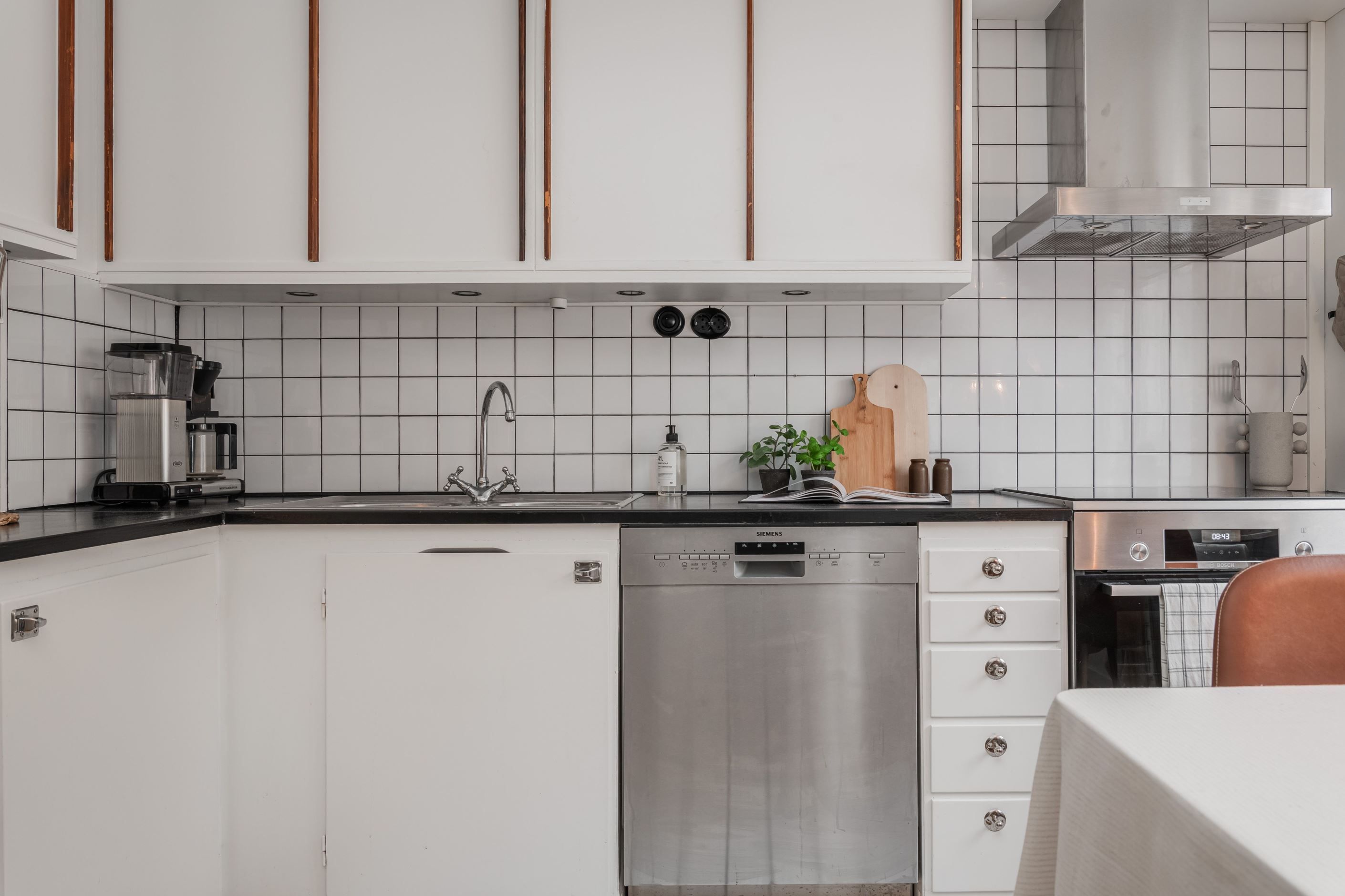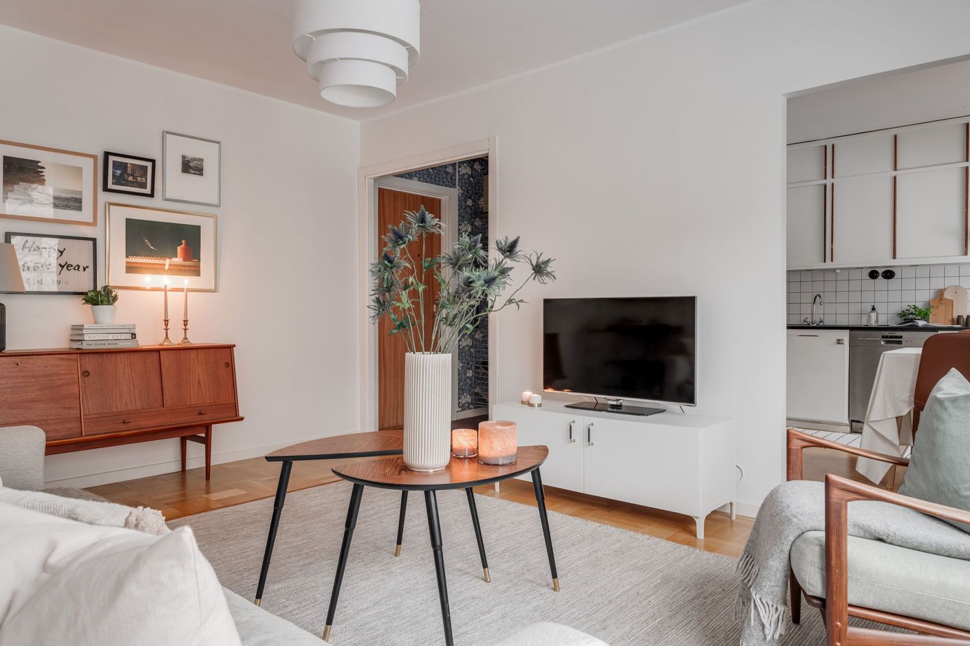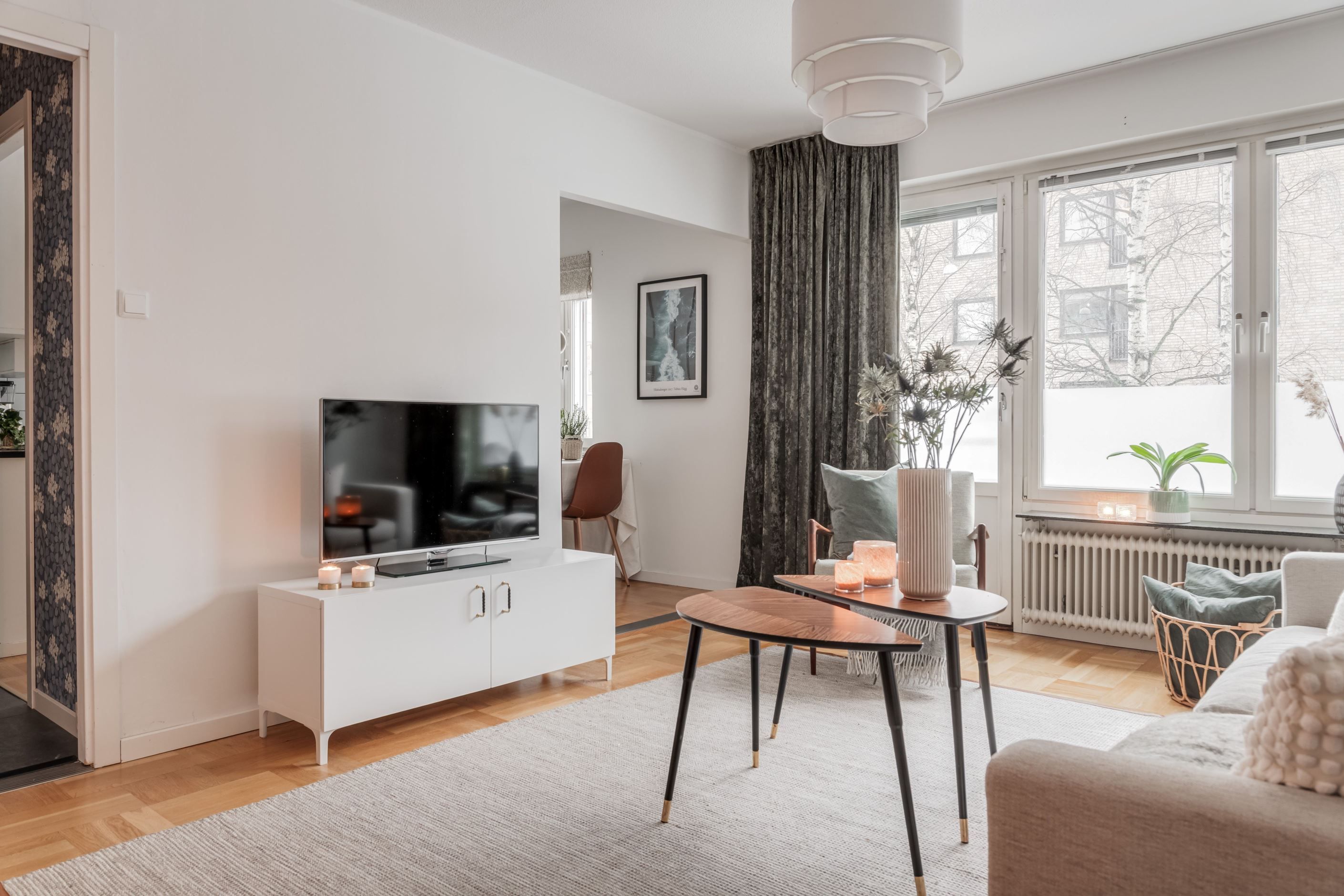 Köket bjuder på charmiga originalluckor i fint skick – en perfekt kombination av karaktär och funktion. Intill ligger det ljusa vardagsrummet som skapar en inbjudande social yta. Det renoverade badrumet är stilrent med kakel och klinker/golvvärme. I sovrummet ryms både dubbelsäng och förvaring.