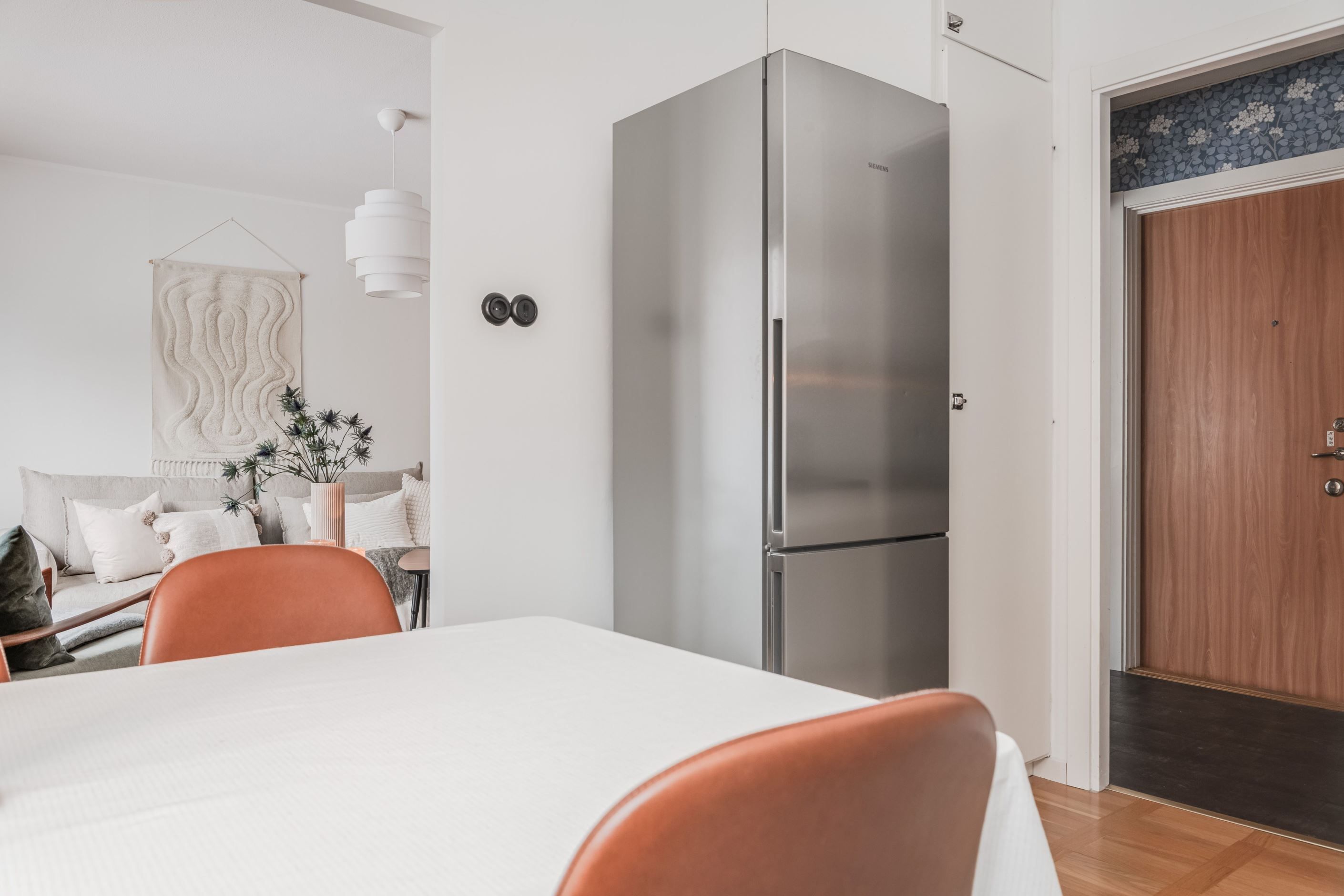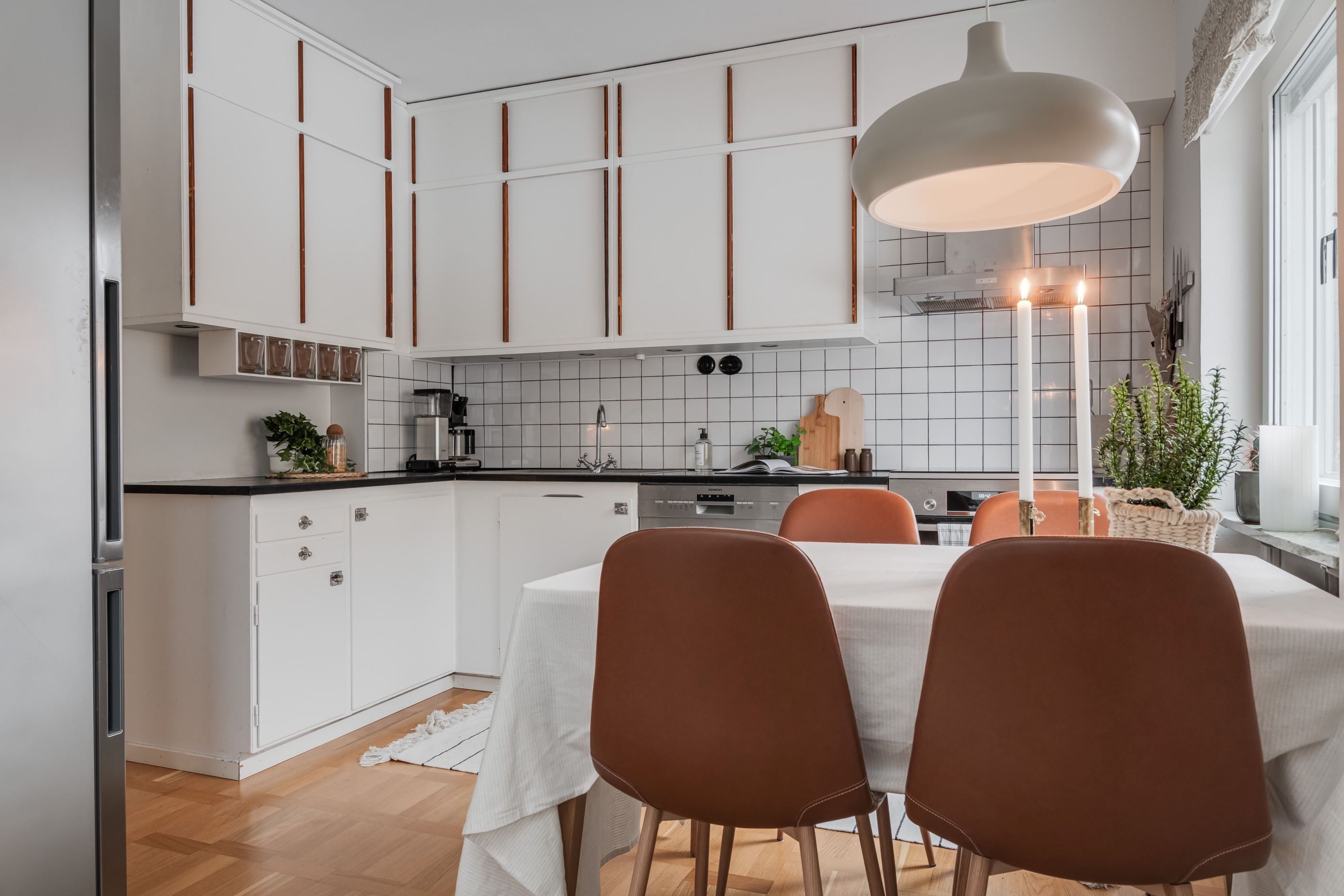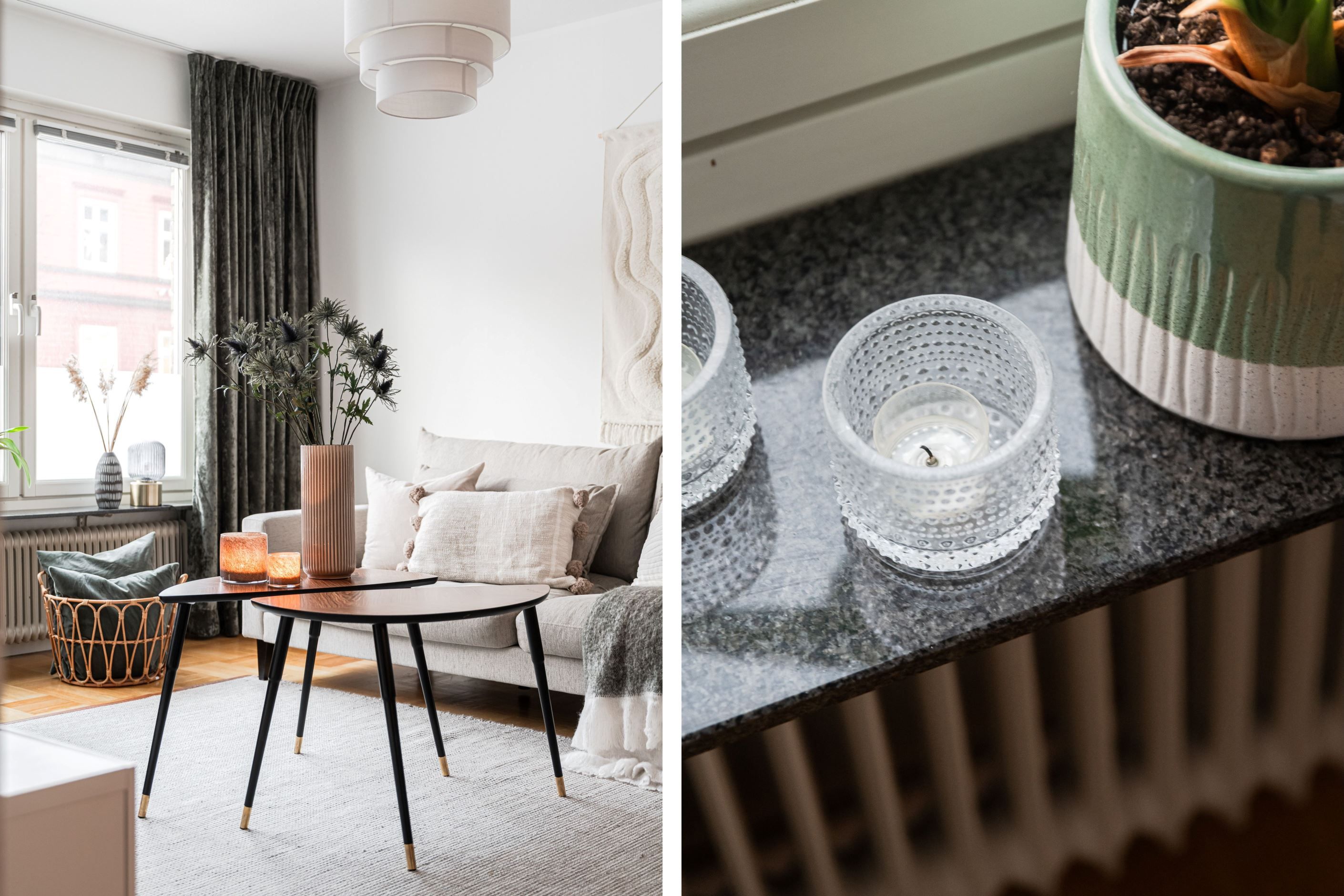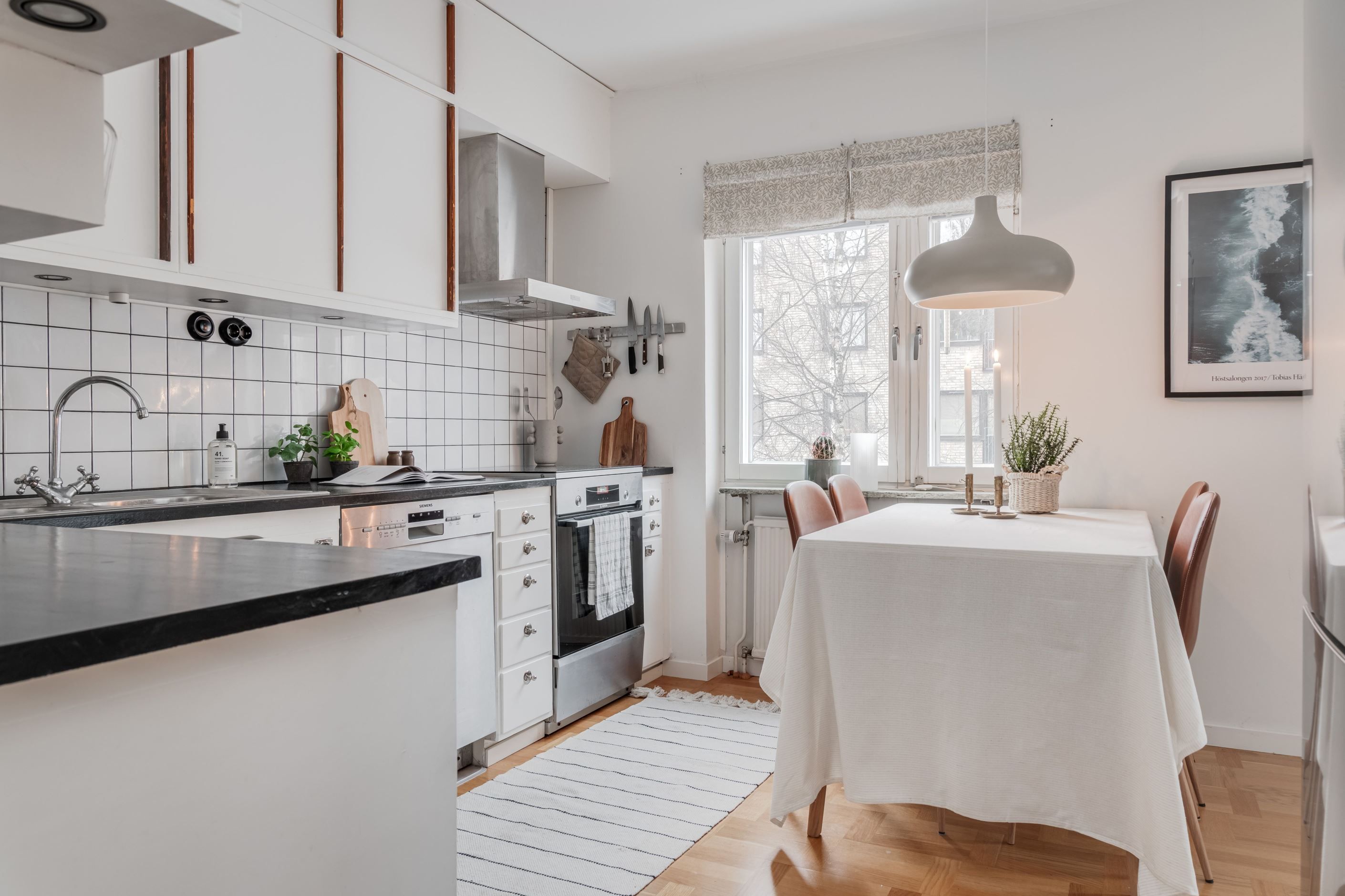 Köket bjuder på charmiga originalluckor i fint skick – en perfekt kombination av karaktär och funktion. Intill ligger det ljusa vardagsrummet som skapar en inbjudande social yta. Det renoverade badrumet är stilrent med kakel och klinker/golvvärme. I sovrummet ryms både dubbelsäng och förvaring.