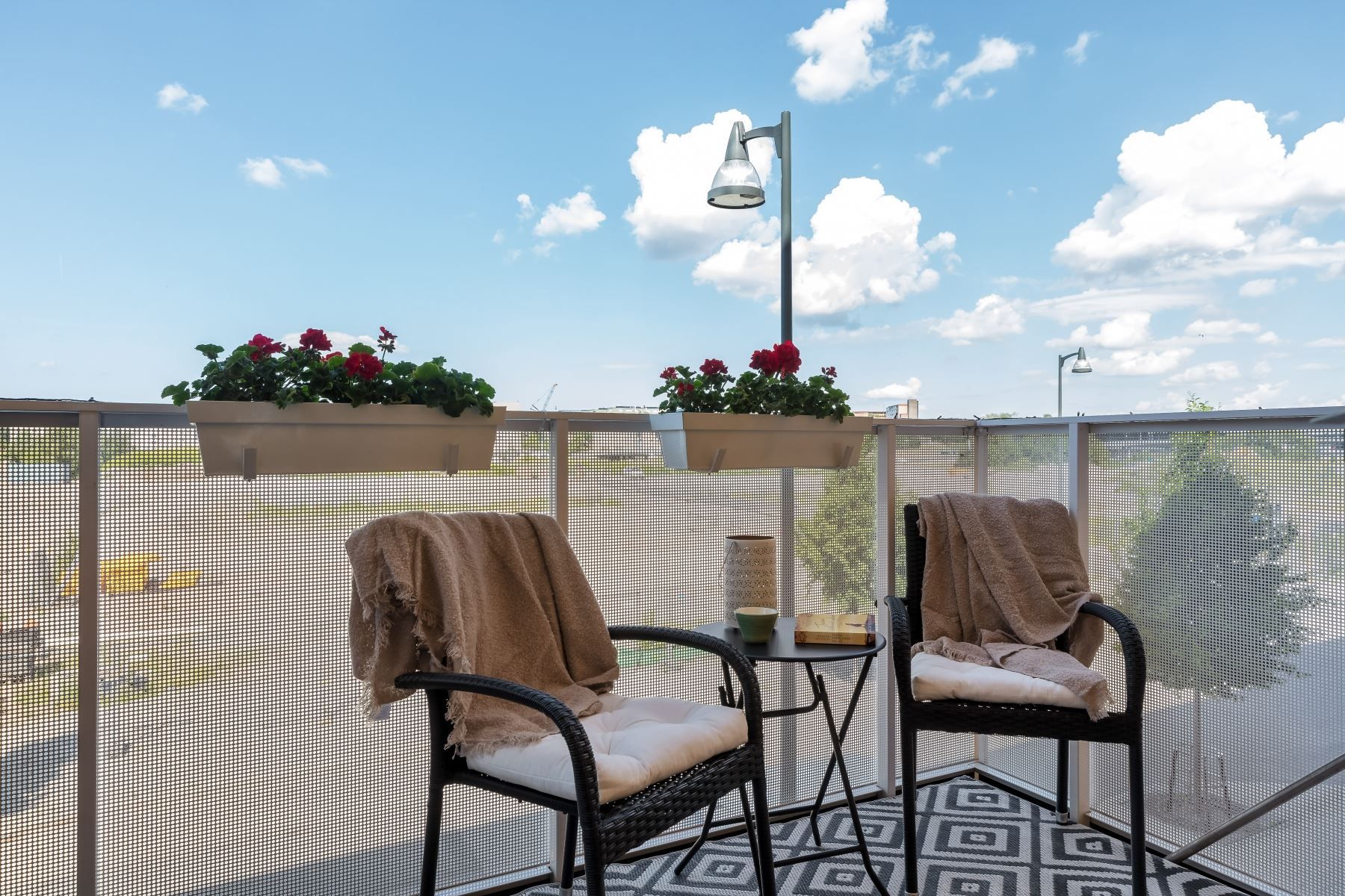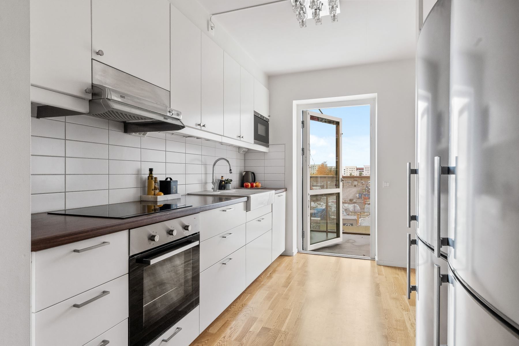 Från vardagsrummet når du den stora möblerbara balkongen med kvällssol!