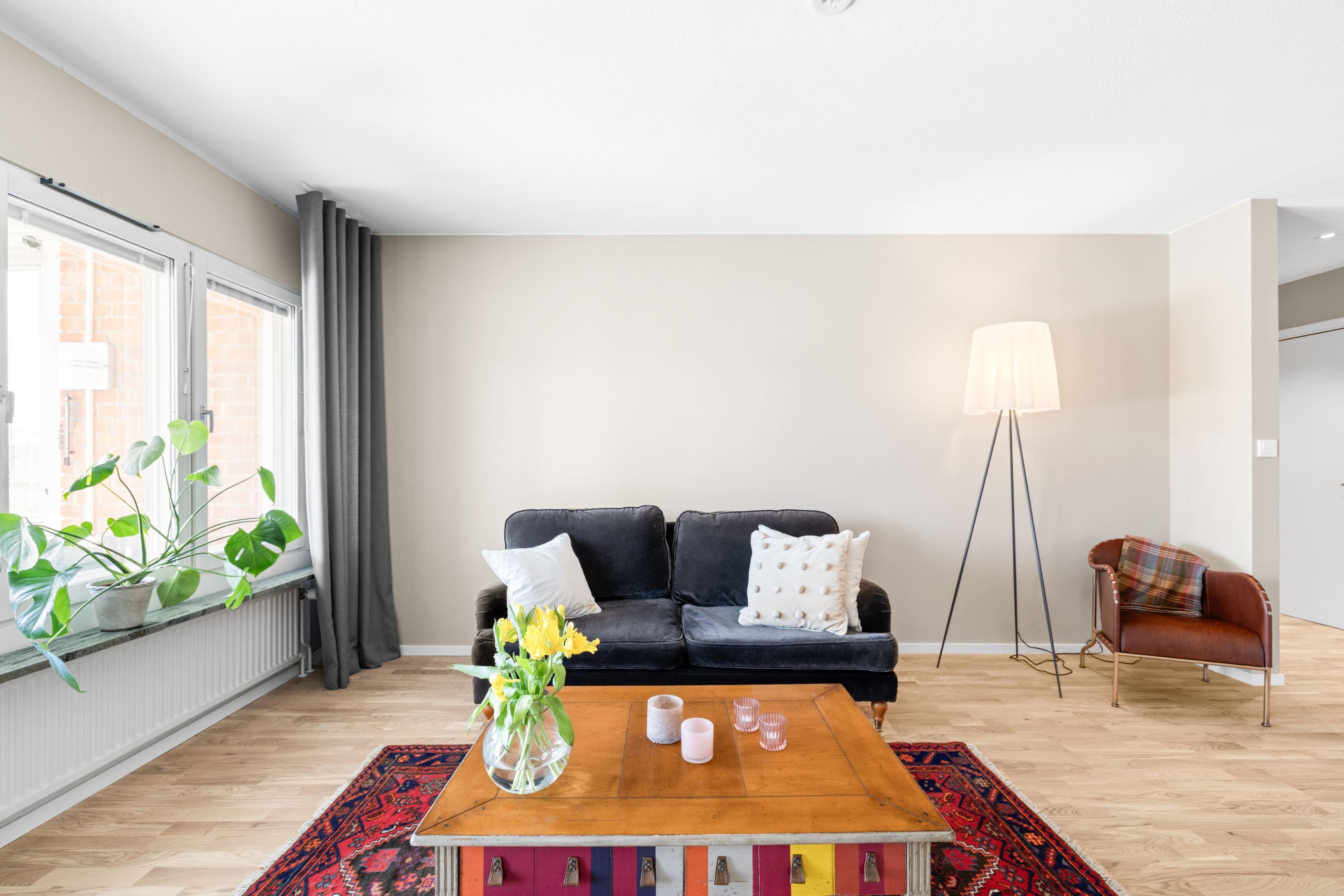 Här erbjuds ett hem där allt är gjort – det är bara att flytta in och bli den första som bor efter de smakfulla renoveringarna. Bostaden genomsyras av en enhetlig och genomtänkt design med dova, harmoniska färgval och noggrant utvalda material.