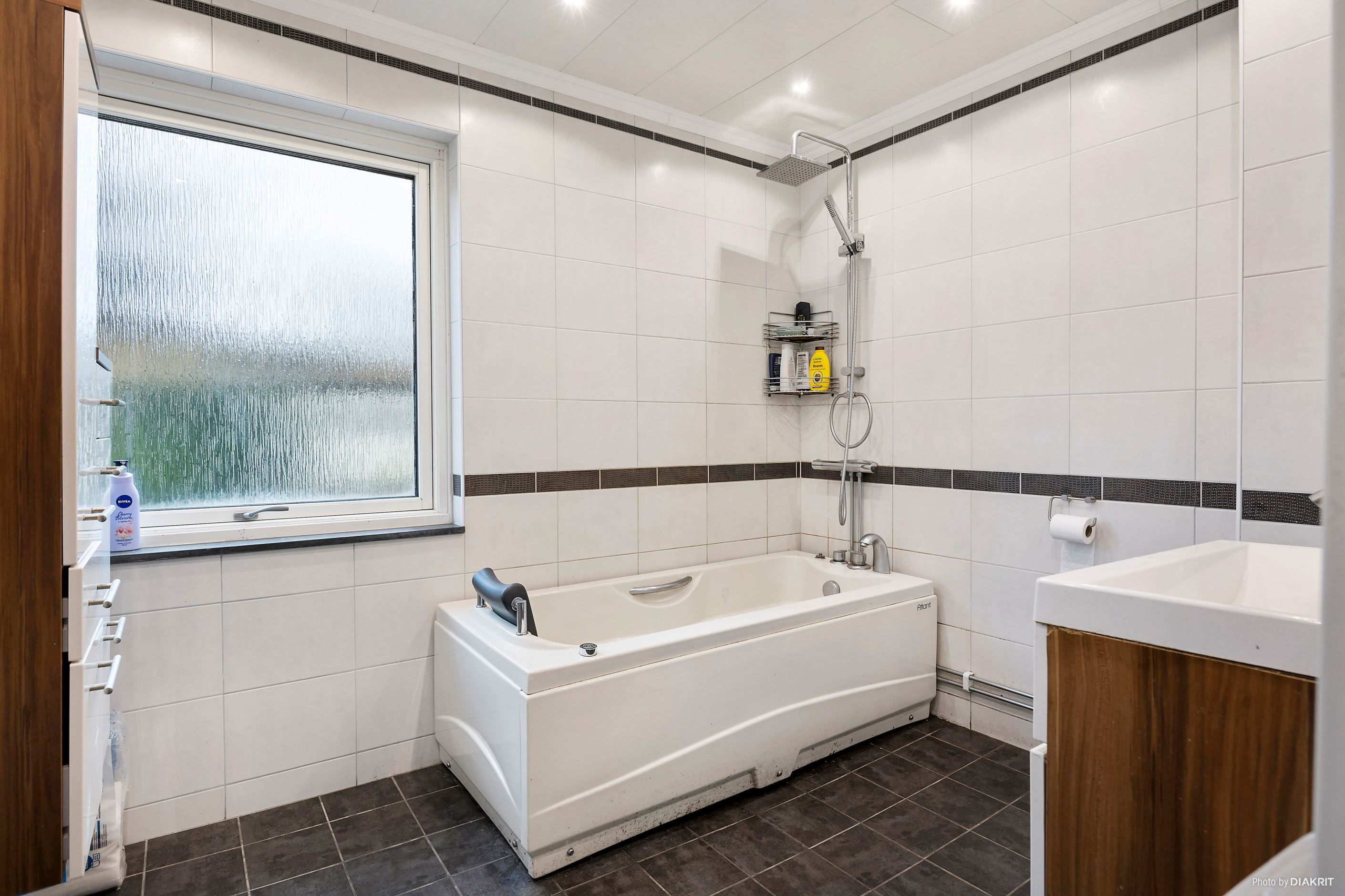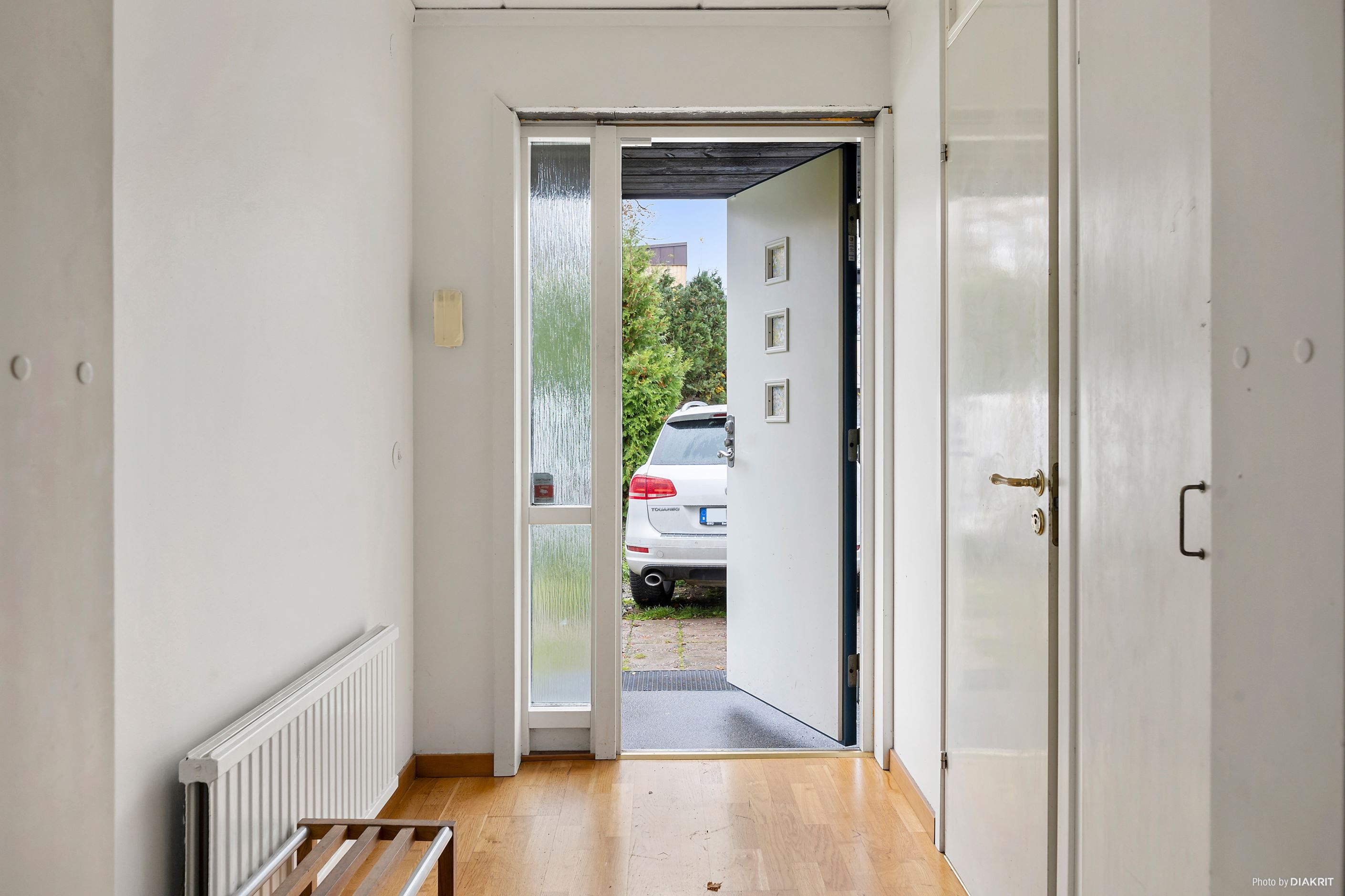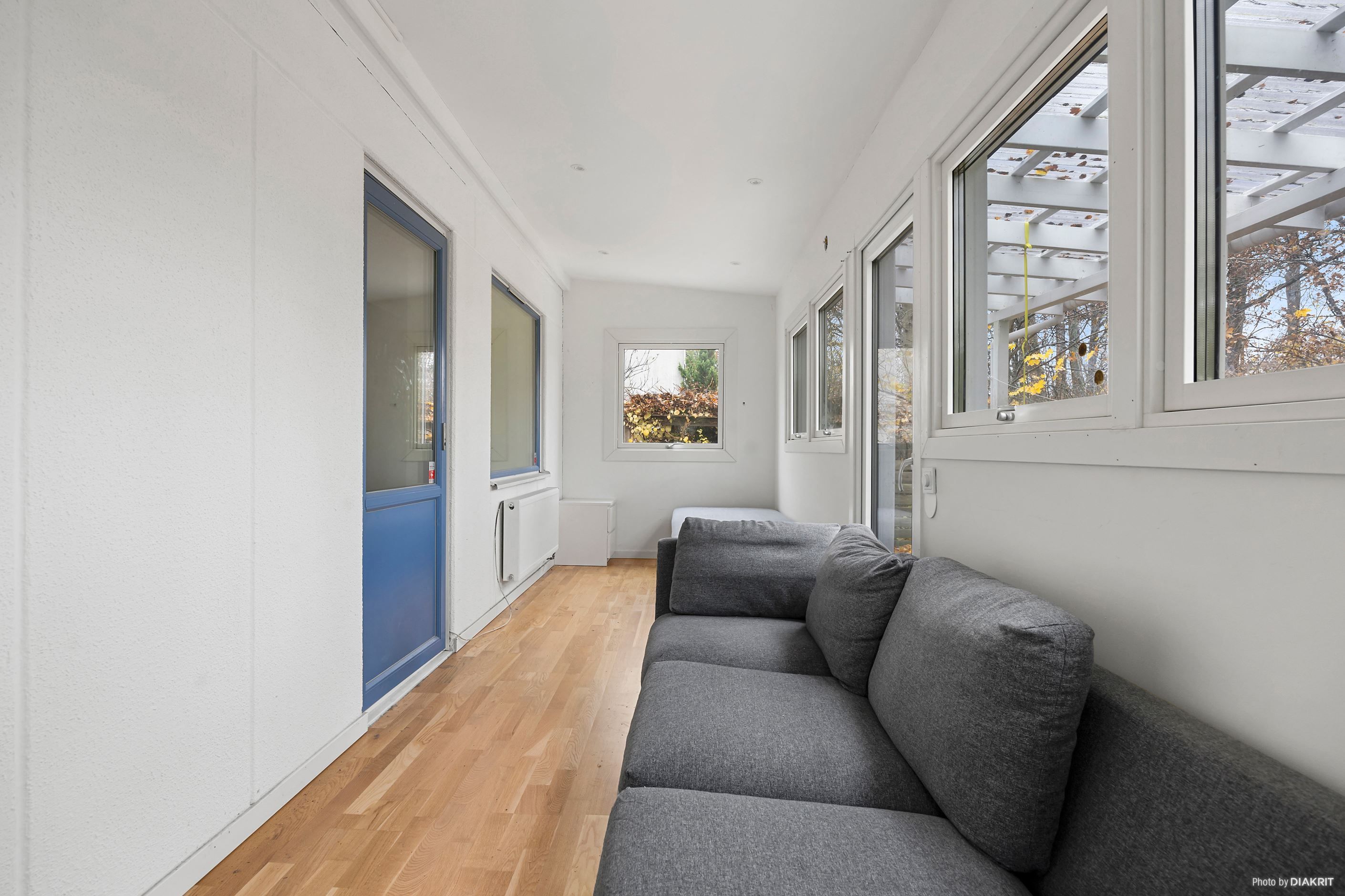Ni välkomnas in av en välkomnande hall med förvaringsmöjligheter och ett helkaklat badrum intill hallen. Vidare erbjuds huset sociala ytor i form utav ett stort kök i en delvis öppen planlösning gentemot det rymliga vardagsrummet. Från vardagsrummet har ni även direkt tillgång till den varma och inglasade altanen som kan nyttjas som ett extra rum, lekrum eller annat som tillfredsställer familjens behov. Vidare erbjuds ett stort förråd och en tvättstuga.