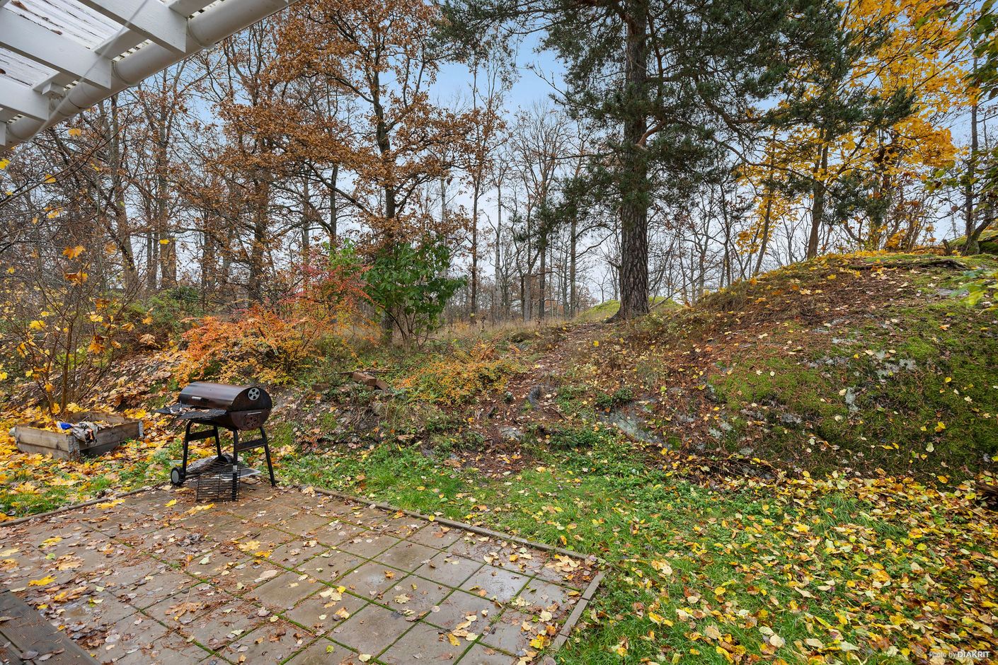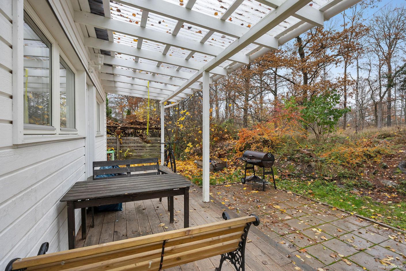 Från vardagsrummet når ni även direkt ut till den insynsskyddade uteplatsen i soligt läge. Här kommer många timmar tillbringas med nära och kära i en väldigt privat uteplats som vetter mot lummigt skogsparti!