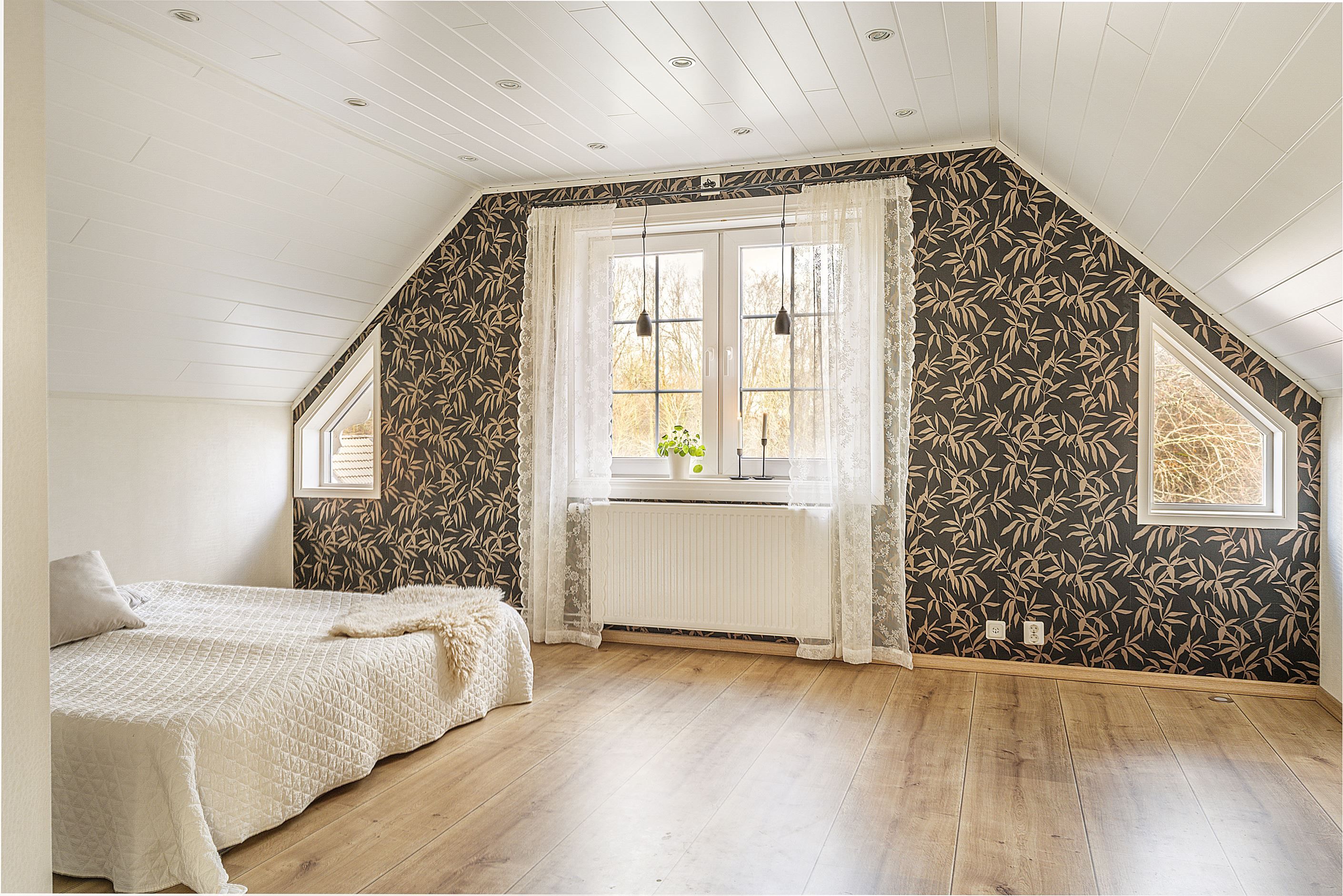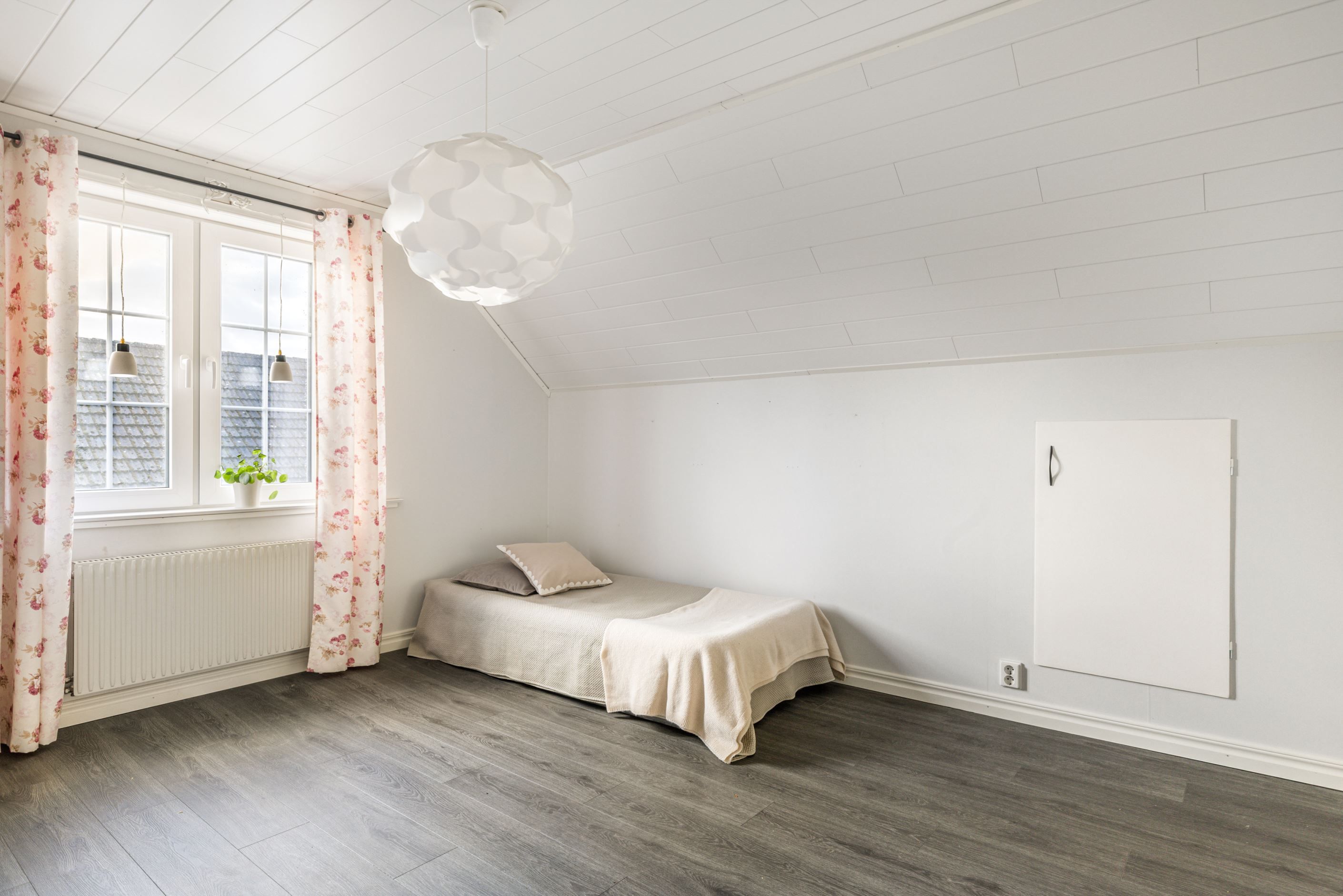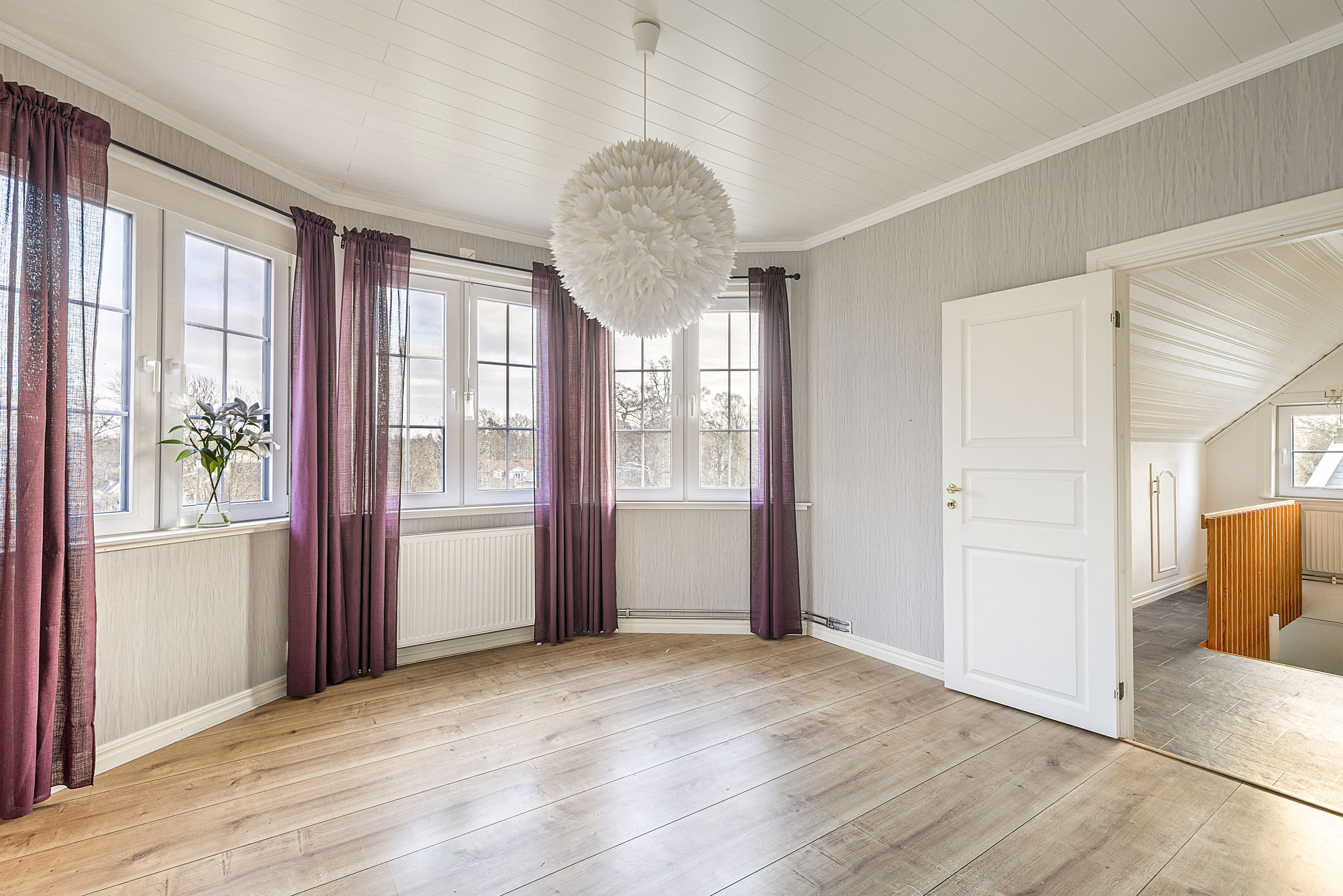 En trappa upp möts du av ett allrum som passar utmärkt som TV-rum eller lekhörna samt ytterligare sovrum.