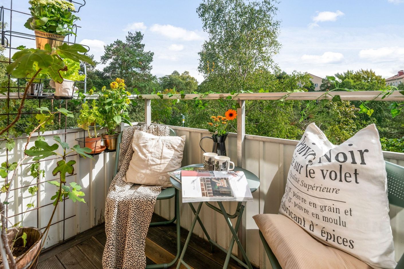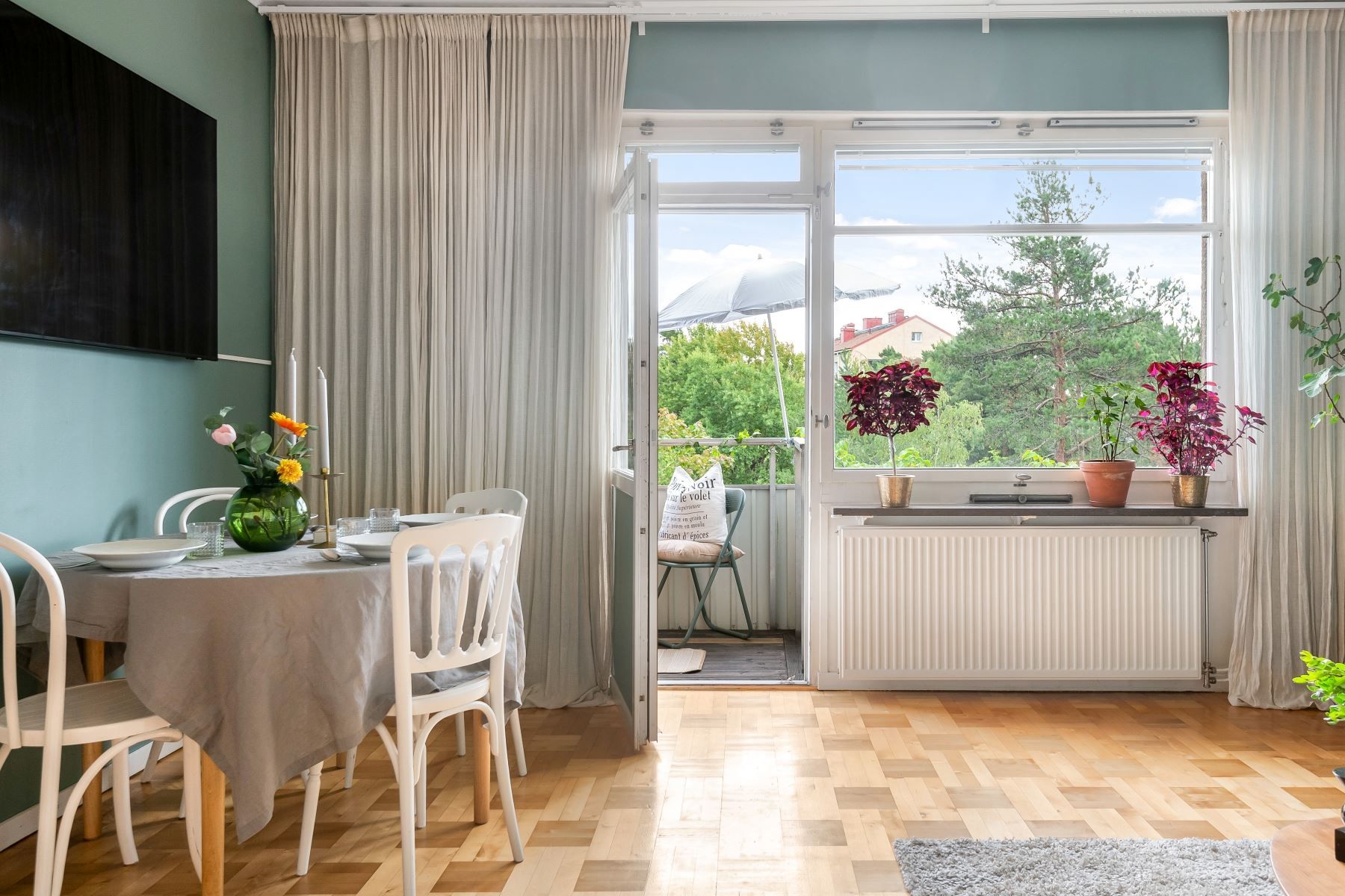 Väl innanför dörren möts du av en rymlig hall med goda avhängningsytor samt plats för ytterligare förvaringsmöbler. Mörkt trägolv i hallen som sträcker sig vidare in i det charmiga och fullutrustade köket. Köket är varsamt renoverat i en tidlös design och håller genomgående hög standard. Kökets färger går i en varm mörkgrön nyans och erbjuder gott om arbetsytor och förvaring bakom lådor och skåp. Här nås ni även av ett trivsamt ljusinsläpp från stort fönster mot nordost. Vidare in i lägenheten når ni ett rymligt vardagsrum med generöst ljusinsläpp från fönsterparti mot sydost. Golvet är klätt i vacker parkett som går vidare in i sovrummet. Rummet erbjuder enkelt plats för soffgrupp, matbord och övrigt passande möblemang. Från vardagsrummet tar ni er ut på den möblerbara balkongen med träd och grönska tätt intill som bjuder in till både mysiga frukoststunder som härligt kvällshäng med vänner och familj. Intill vardagsrummet finner ni sovrummet med gott om förvaring i en rymlig garderob samt gott om plats för fullstor säng med tillhörande sängbord. Badrummet är stambytt och helkaklat, med de förnödenheter som behövs för vardagen i form av dusch, WC, handfat, bra förvaringsmöjligheter samt tvättmaskin. Till lägenheten hör ett stort vindsförråd samt källarförråd.