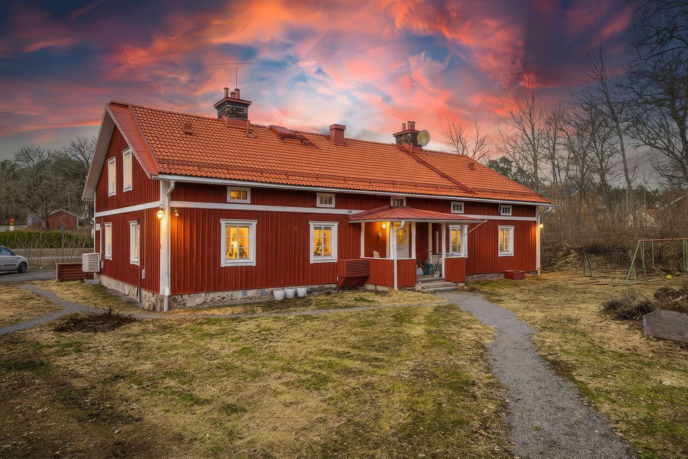 Ett hem med charm och lugn, mitt i grönskande bruksmiljö.