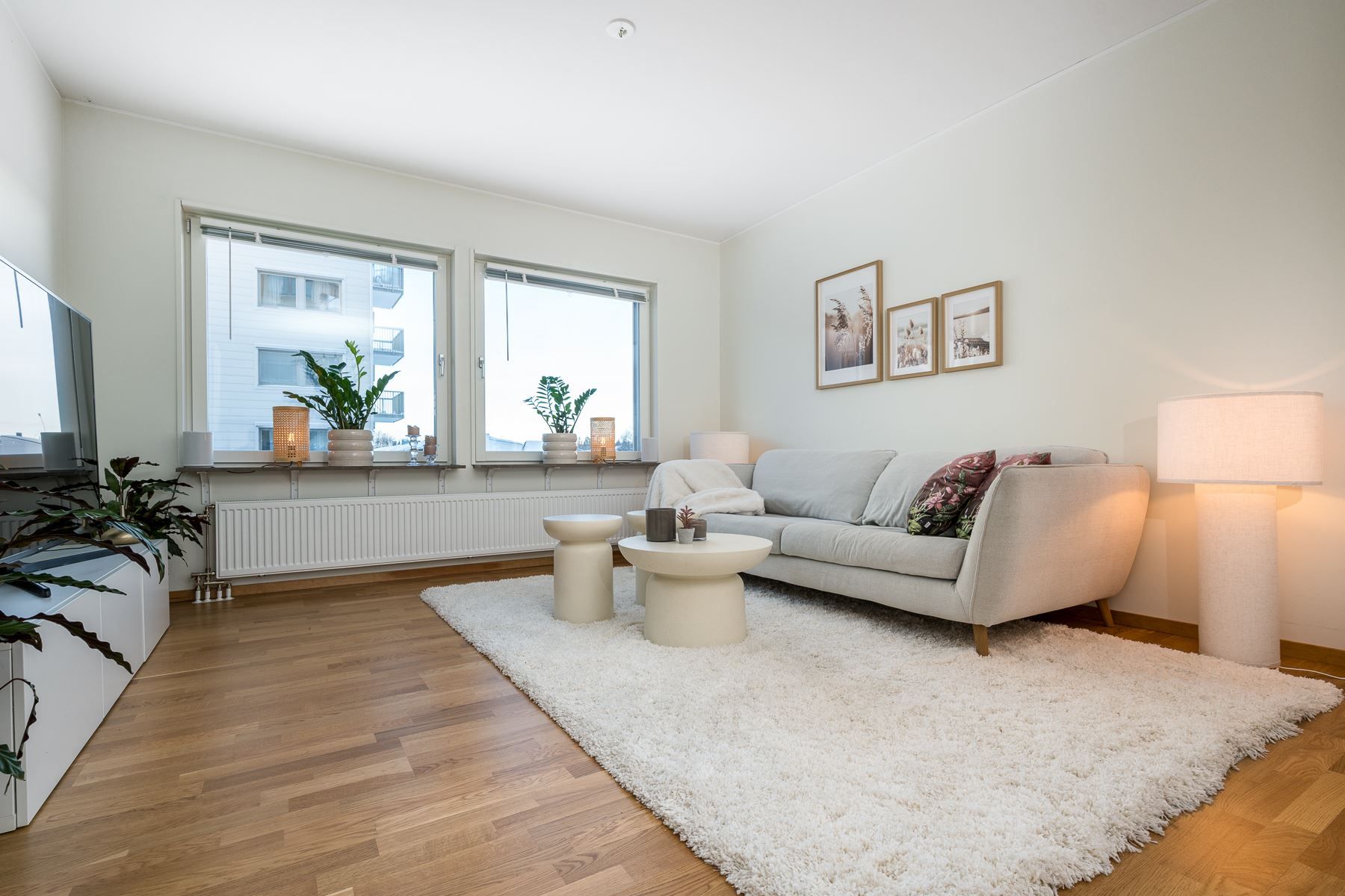Välkommen till denna fina 4:a i centrum en trapp upp. Du välkommans av en hall med platsbyggd förvaring. Största sovrummet finner du från hallen med en liten hall med garderob och plats för skrivbord. Vidare in från hallen finner du det fina badrummet med alla bekvämligheter så som kakel och klinker med golvvärme, tvättmaskin och torktumlare. Köket är ljust och luftigt med utgång till balkongen. Den öppna planlösningen mellan vardagsrummet och köket ger fönster från två håll. Från köket hittar du ett sovrum med samma enhetliga parkettgolv och ljusa väggar. Från vardagsrummet finner du sista sovrummet som idag används som arbetsrum/Klädkammare. I denna förening finns det bastu och gott om carports. Välkommen att hitta hem och anmäla intresse!
