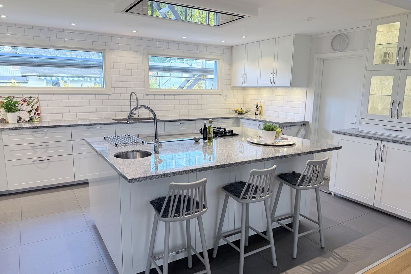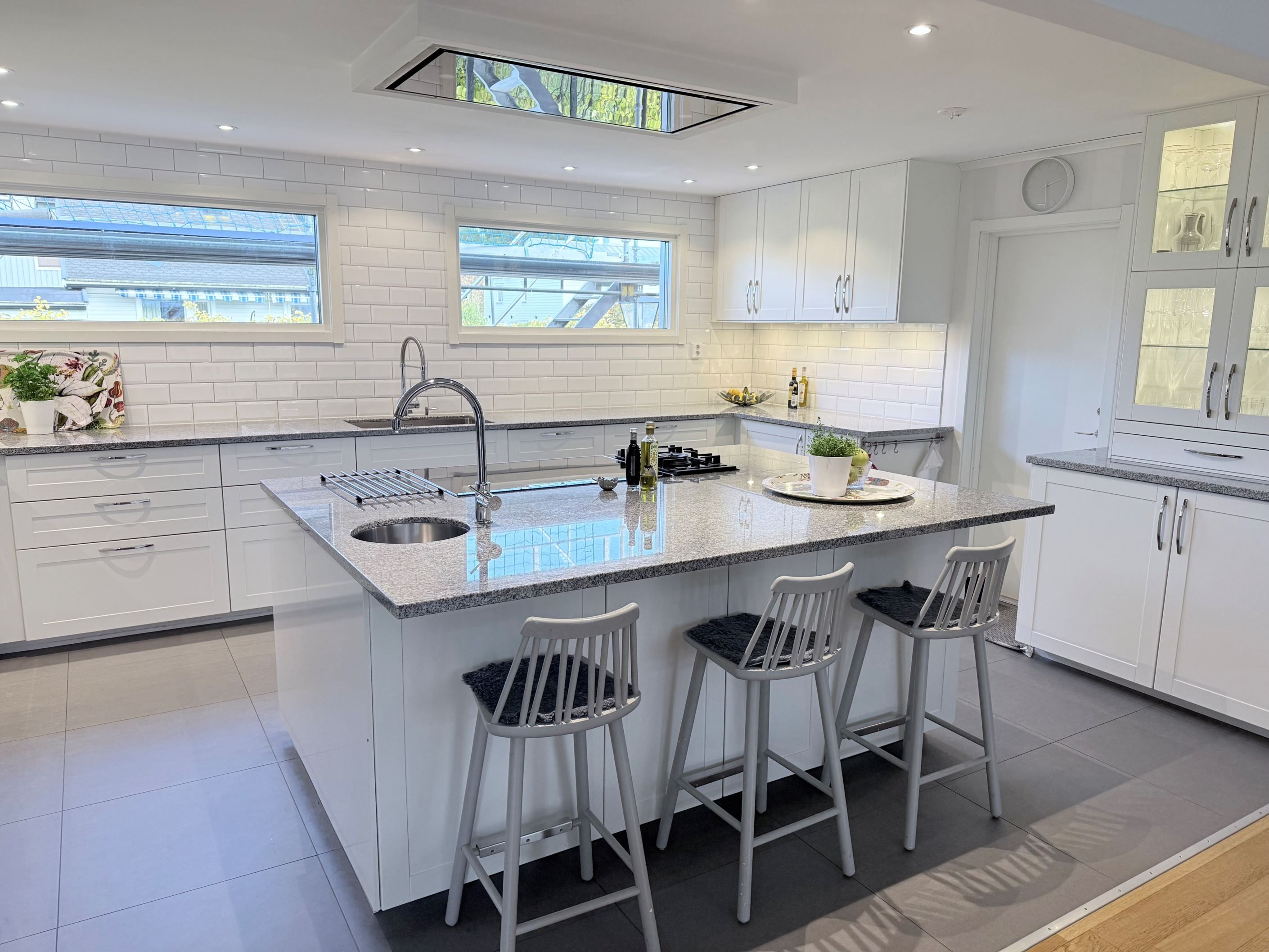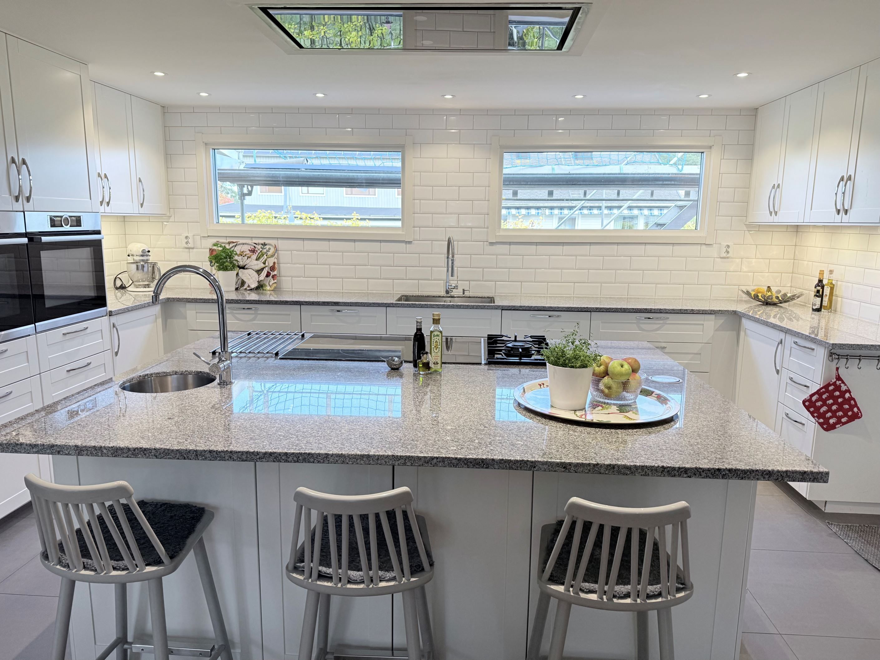 Fastigheten har ett vidbyggt dubbelgarage med ett extra sovrum och egen ingång, vilket ger möjlighet till uthyrning eller användning som gästboende.