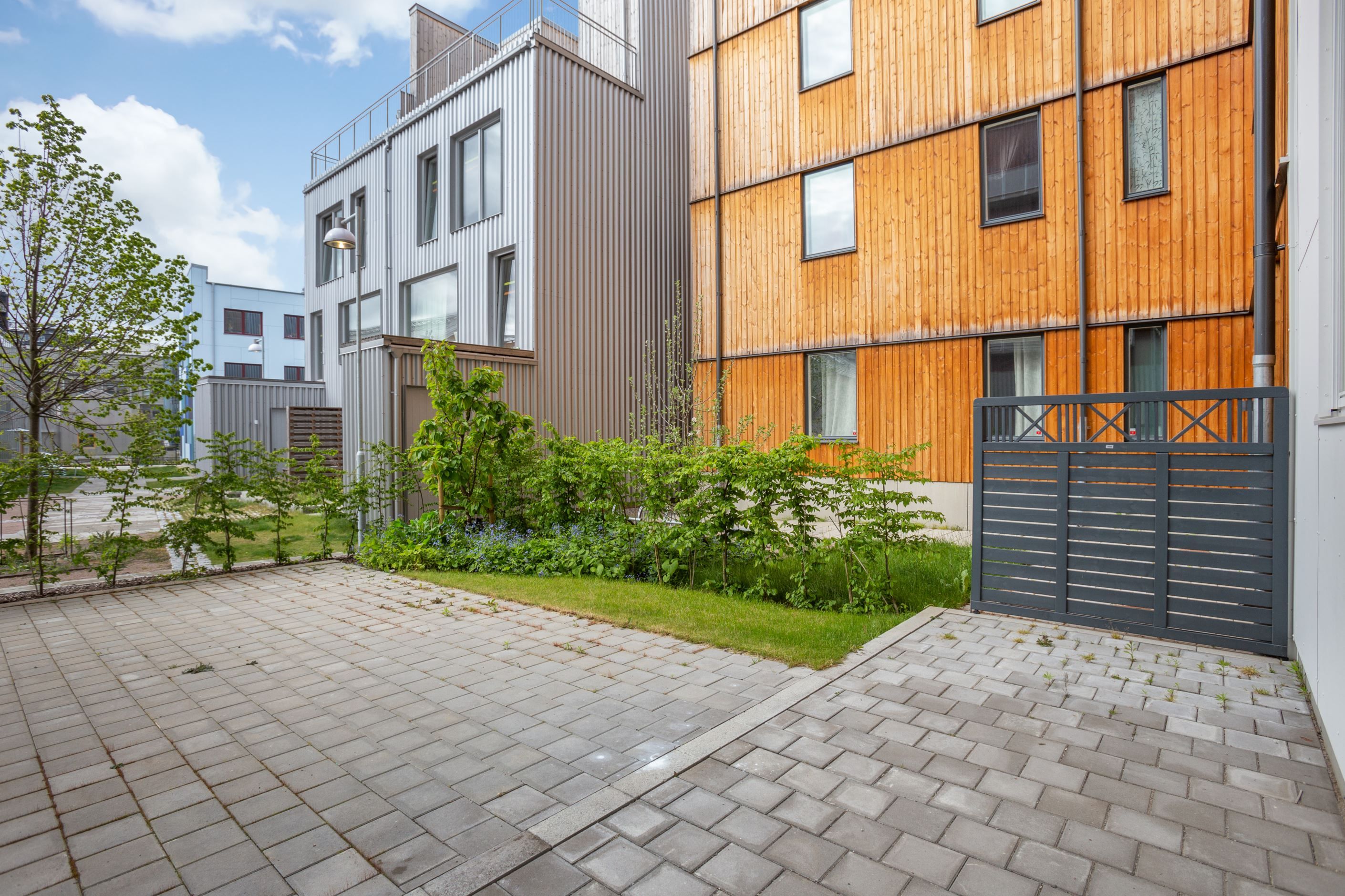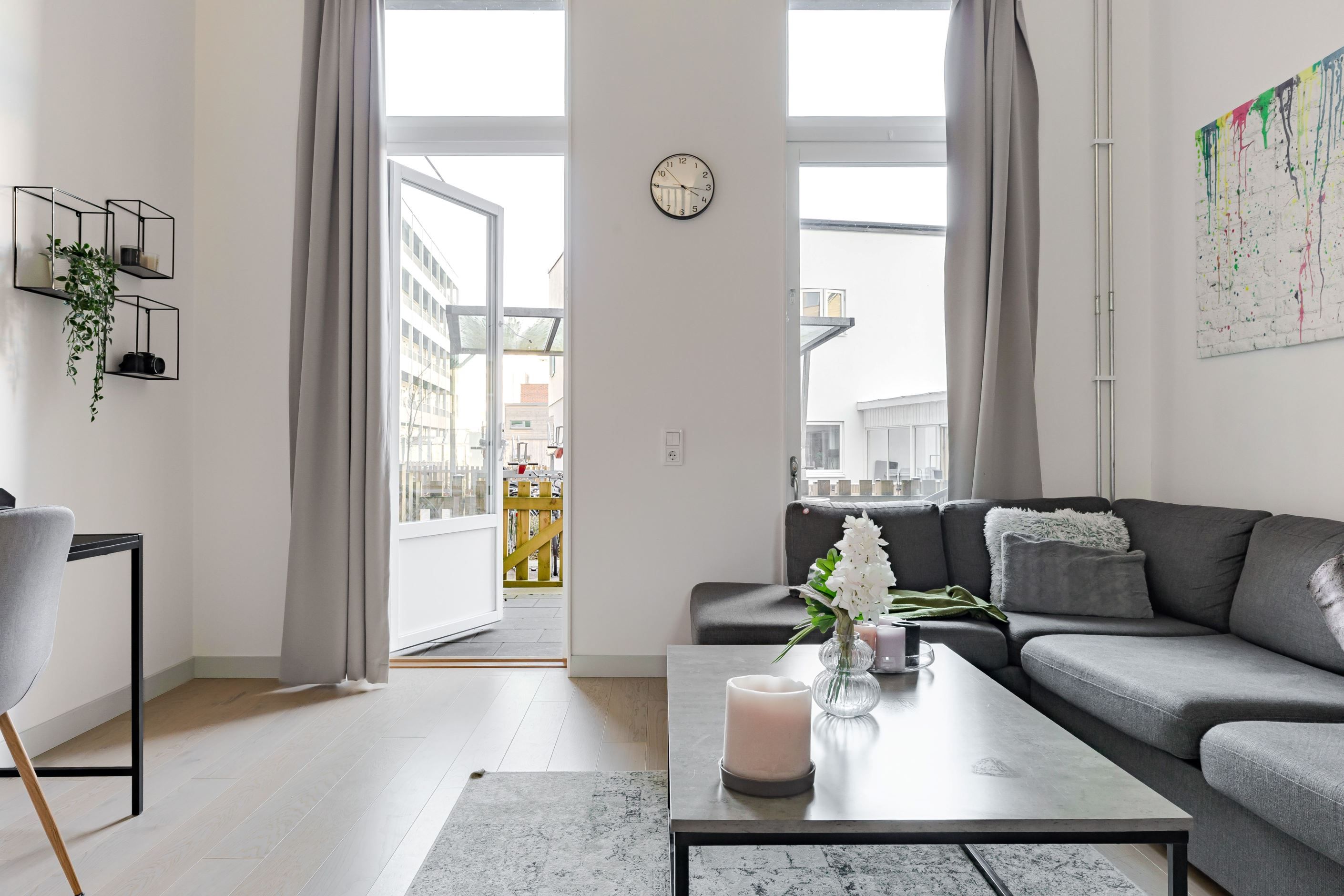 Här erbjuds en stilfull bostad där smart planlösning möter en luftig och inbjudande känsla. Med egen entré i markplan får du en privat och bekväm boendemiljö med två uteplatser att kunna njuta av.