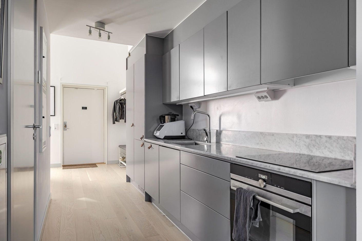 Direkt vid entrén möts du av en trivsam matplats som skapar en naturlig samlingspunkt i hemmet. Intill ligger det välutrustade köket med goda arbetsytor och allt som behövs för både vardagsmatlagning och middagar med vänner.