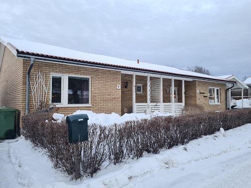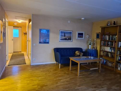 Här är allt samlat i ett plan inga besvärliga trappor, öppen planlösning mellan kök och vardagsrum.