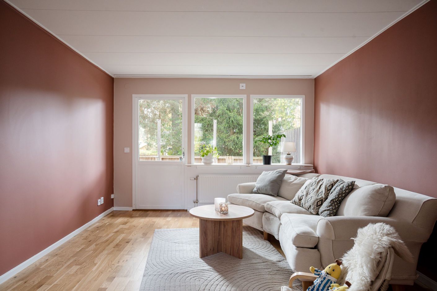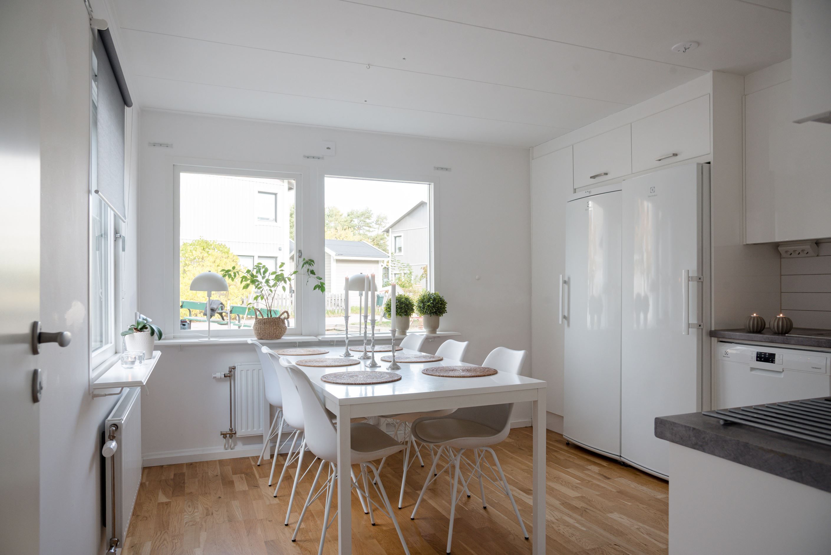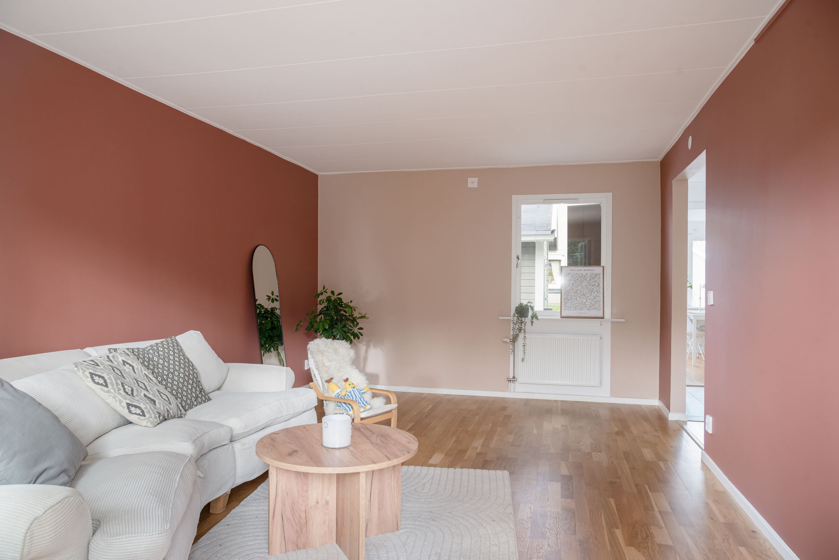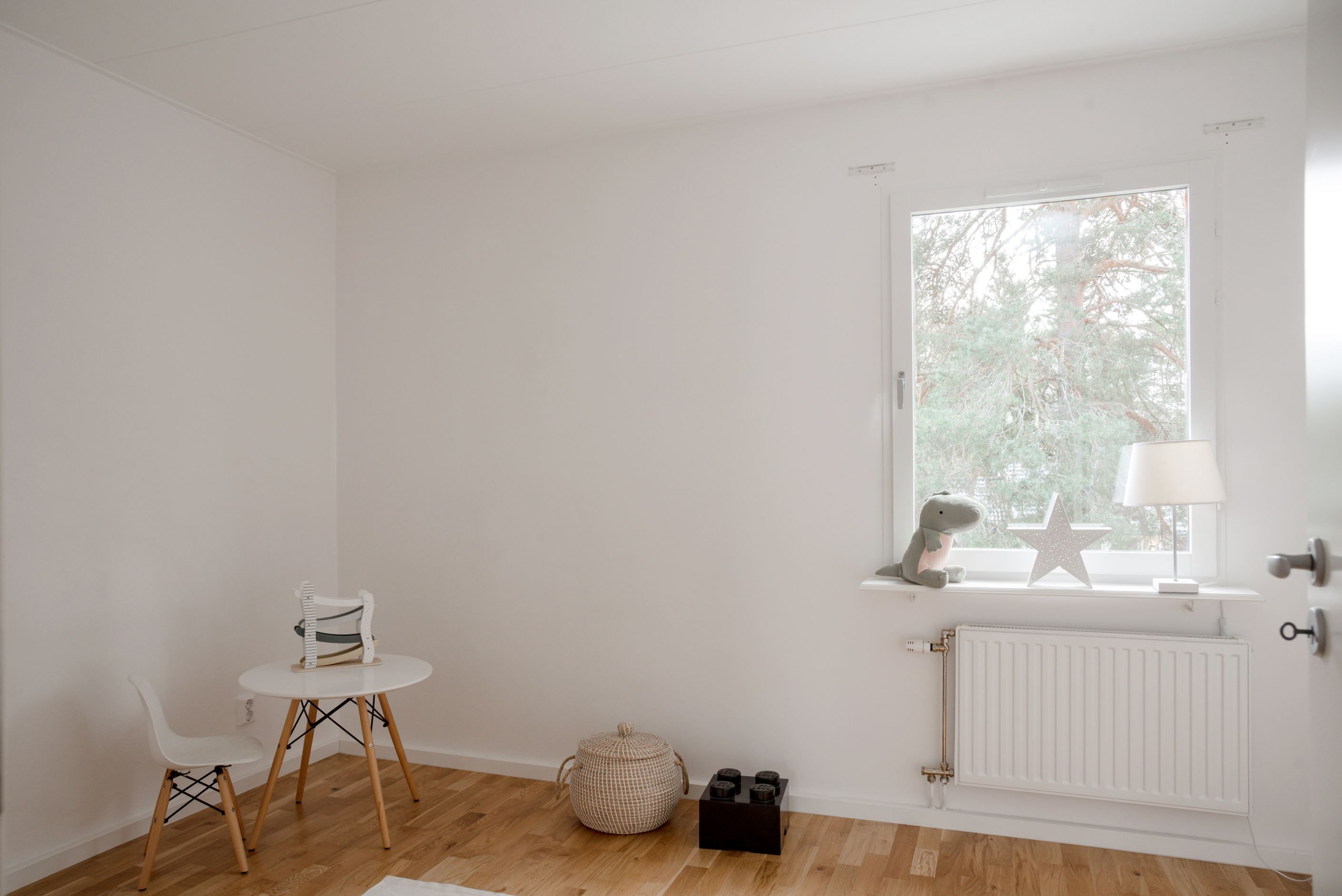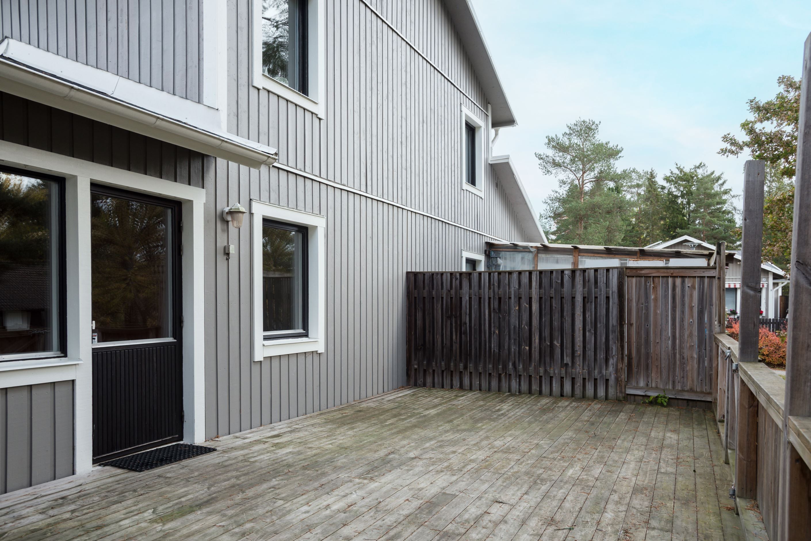 Här erbjuds en väl genomtänkt planlösning med sociala ytor och goda möjligheter för privatliv. Entréplanet erbjuder ett väl tilltaget vardagsrum med utgång till skyddad uteplats i soligt läge, modernt kök med plats för matbord, sovrum samt en rymligt hall med klinkergolv. Det övre planet disponeras över två stora sovrum, en passage med förvaringsmöjligheter samt badrum med kaklade väggar och badkar.