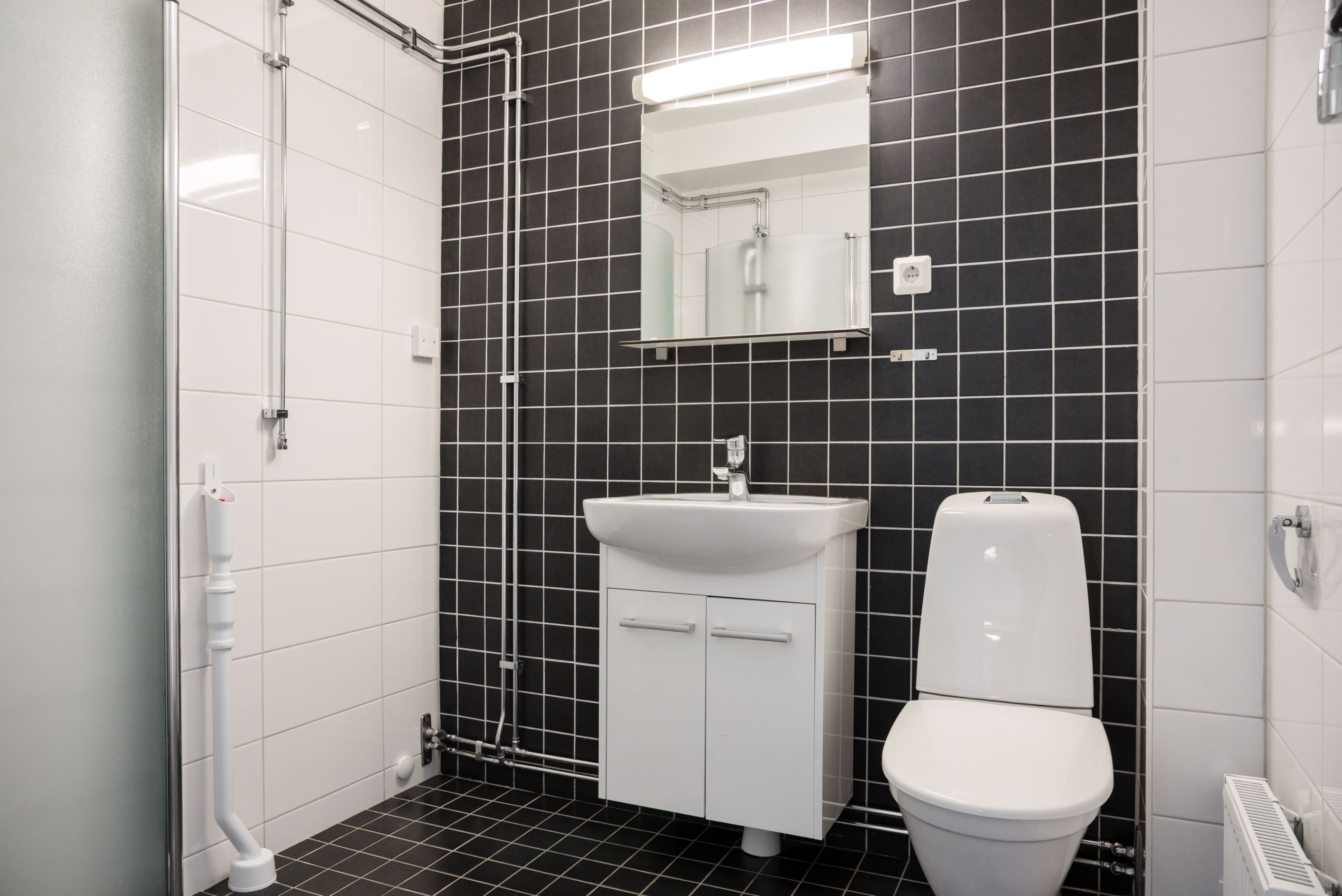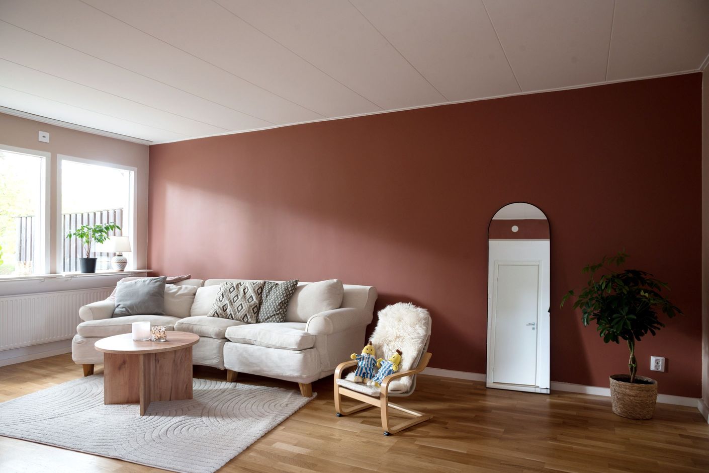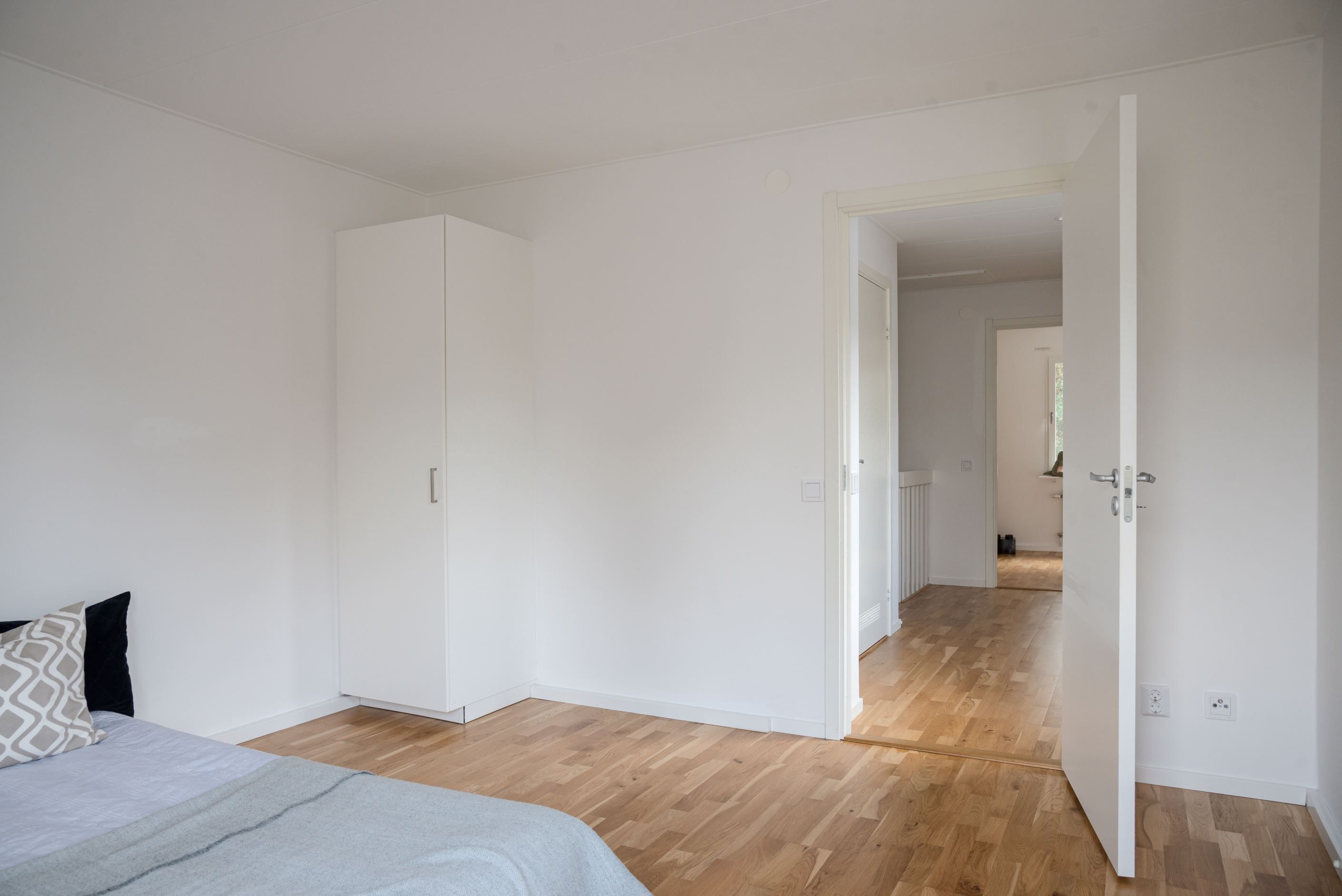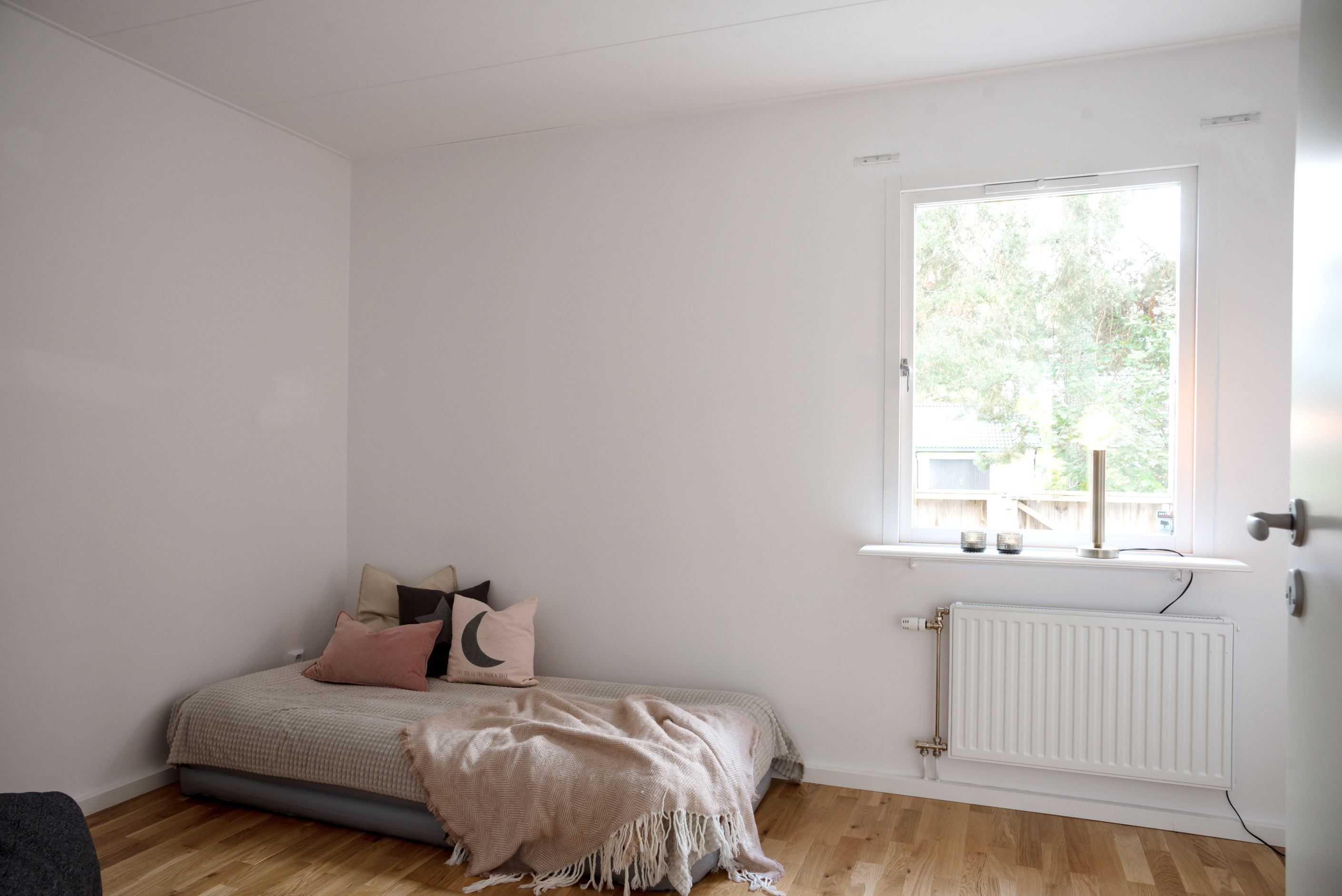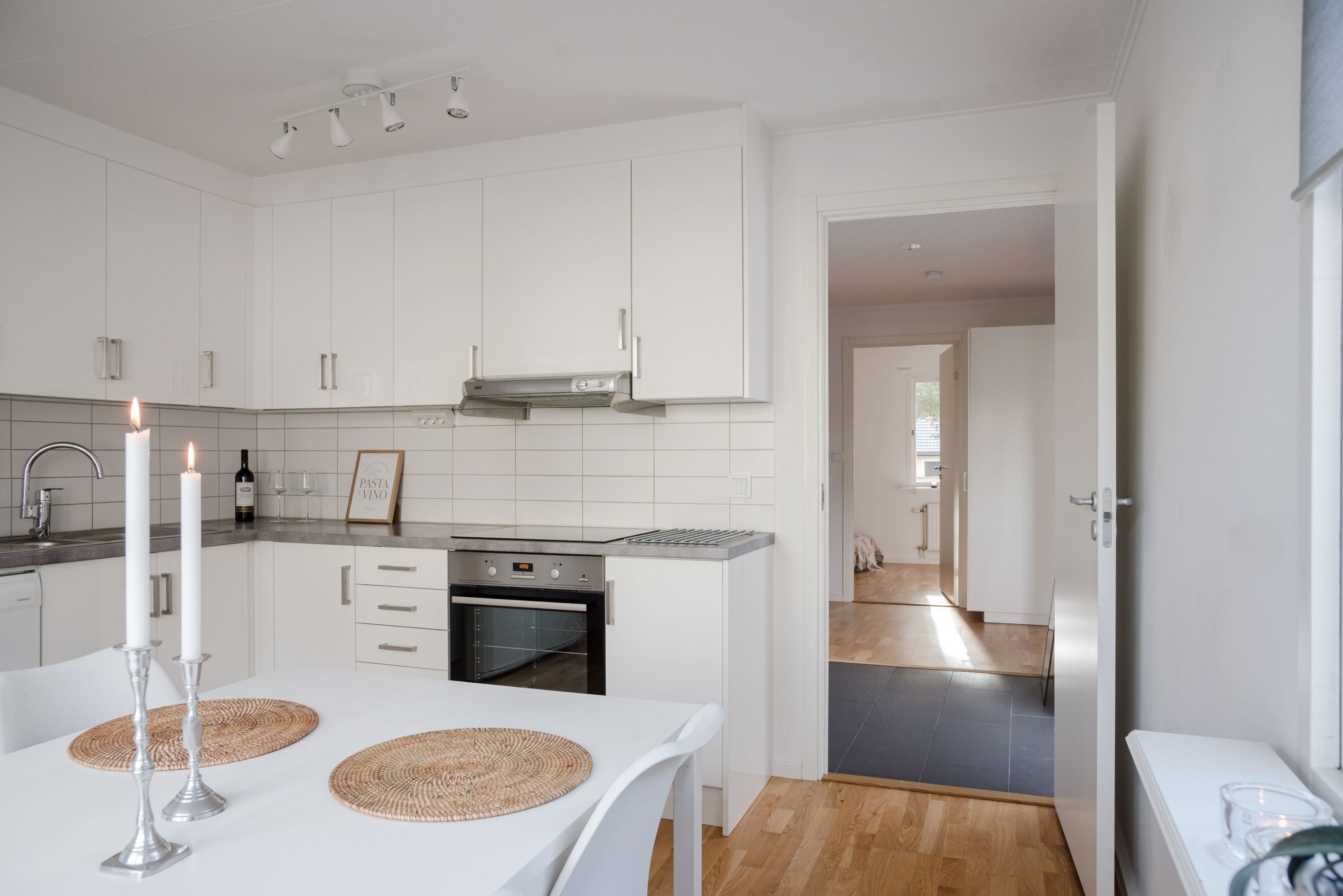 Här erbjuds en väl genomtänkt planlösning med sociala ytor och goda möjligheter för privatliv. Entréplanet erbjuder ett väl tilltaget vardagsrum med utgång till skyddad uteplats i soligt läge, modernt kök med plats för matbord, sovrum samt en rymligt hall med klinkergolv. Det övre planet disponeras över två stora sovrum, en passage med förvaringsmöjligheter samt badrum med kaklade väggar och badkar.