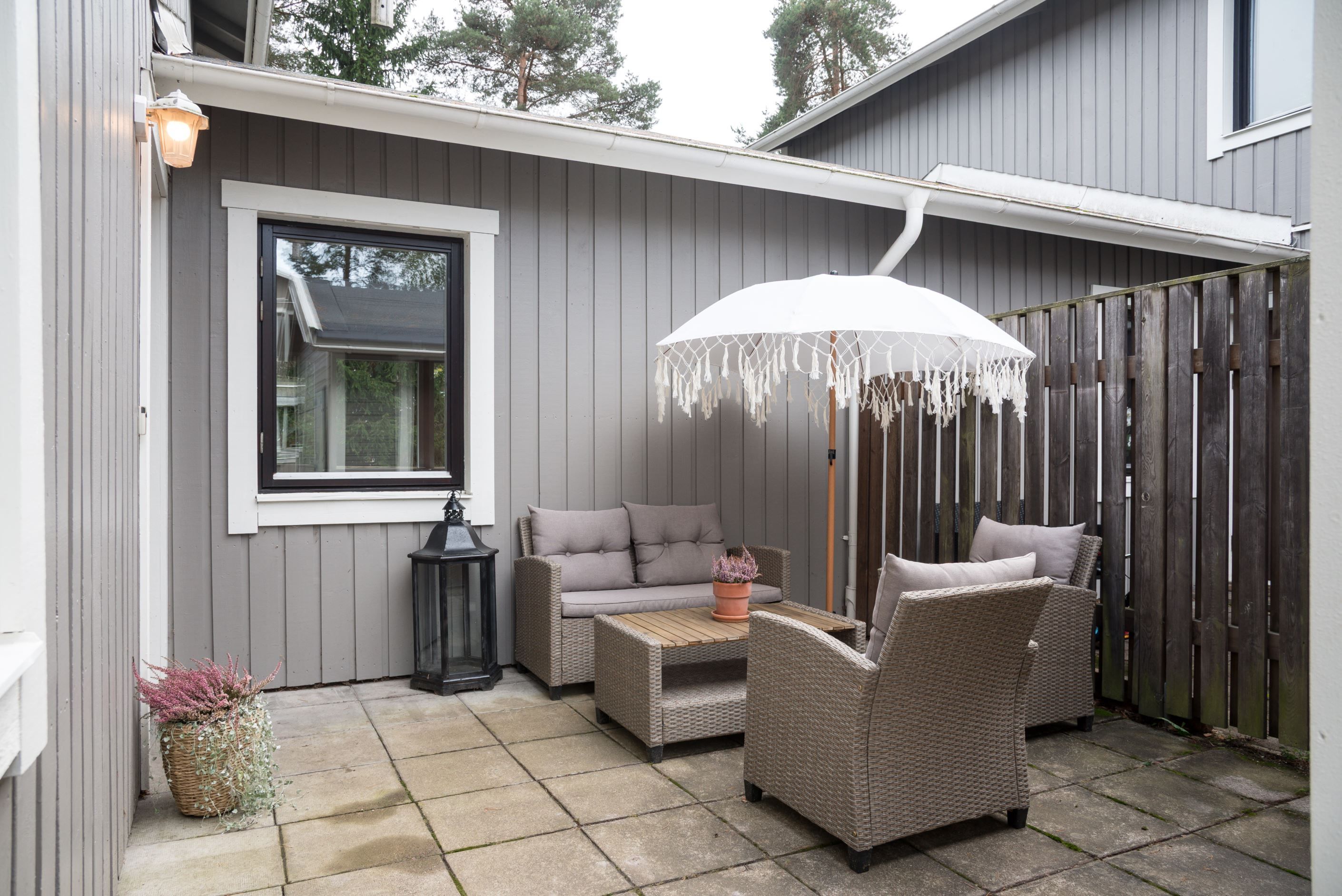 Altanen, som är belägen i söderläge, blir bostadens naturliga samlingspunkt under varma månader. Här ges chans till både grillhörna, plats för möblemang och gröna planteringar. Läget innebär att du får maximal sol under dagen. Intill entrén finns ytterligare en uteplats i skyddat läge. Området är bilfritt vilket bidrar till ett lugnt och tryggt boende.
