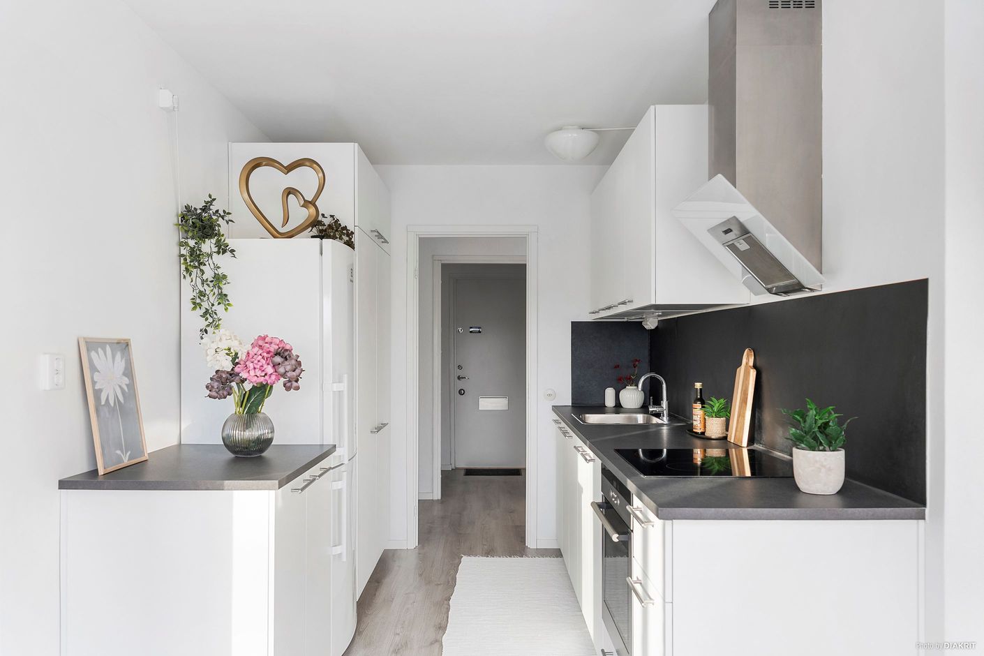 Bostaden genomgick en omfattande renovering 2025 där kök, golv, dörrar, karmar och lister förnyades i en enhetlig och stilren ton. Planlösningen är både funktionell och ljus med fina siktlinjer och ett härligt ljusinsläpp.
