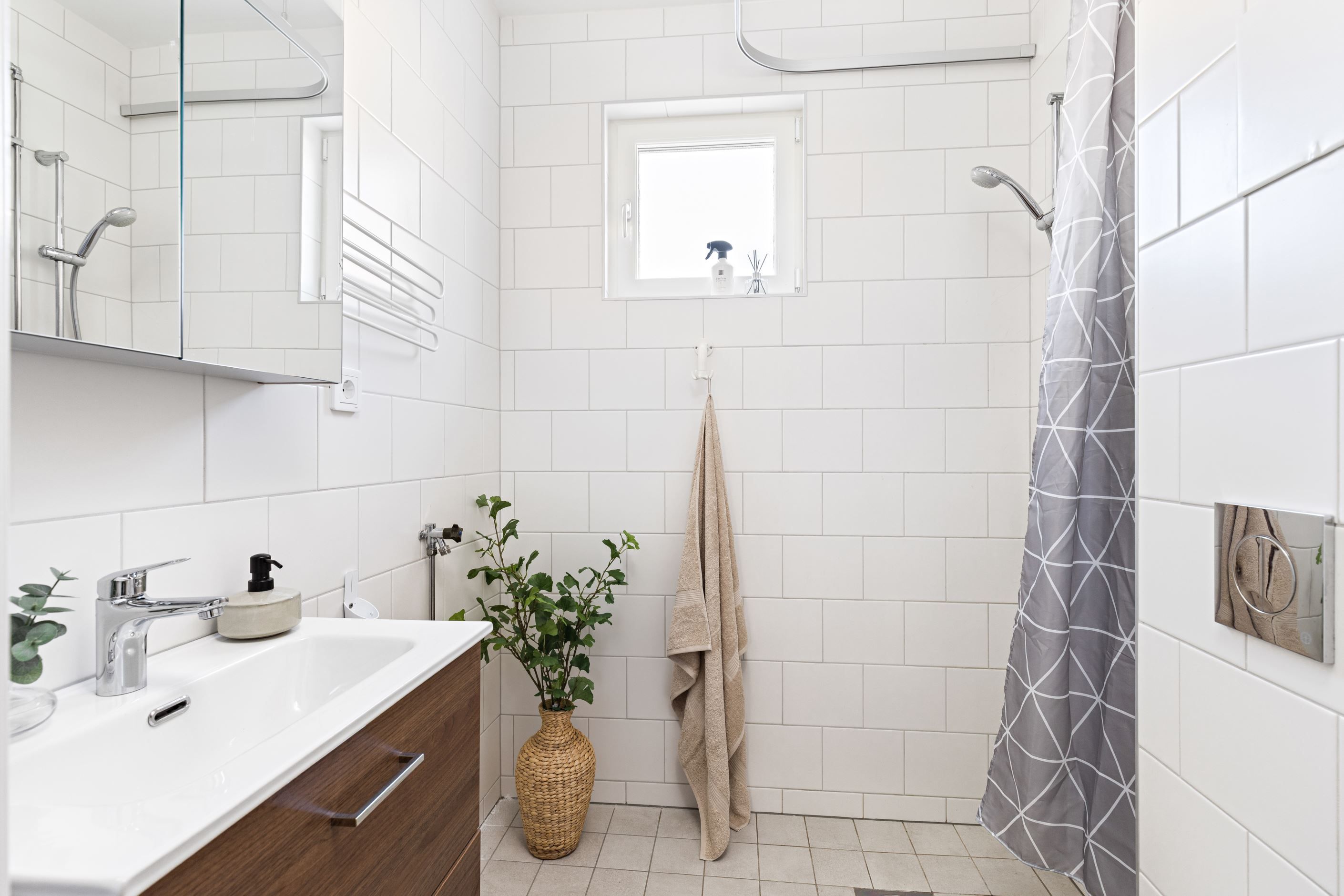 Tre "riktiga" sovrum i ljusa färger, två av dem med inbyggda garderober.