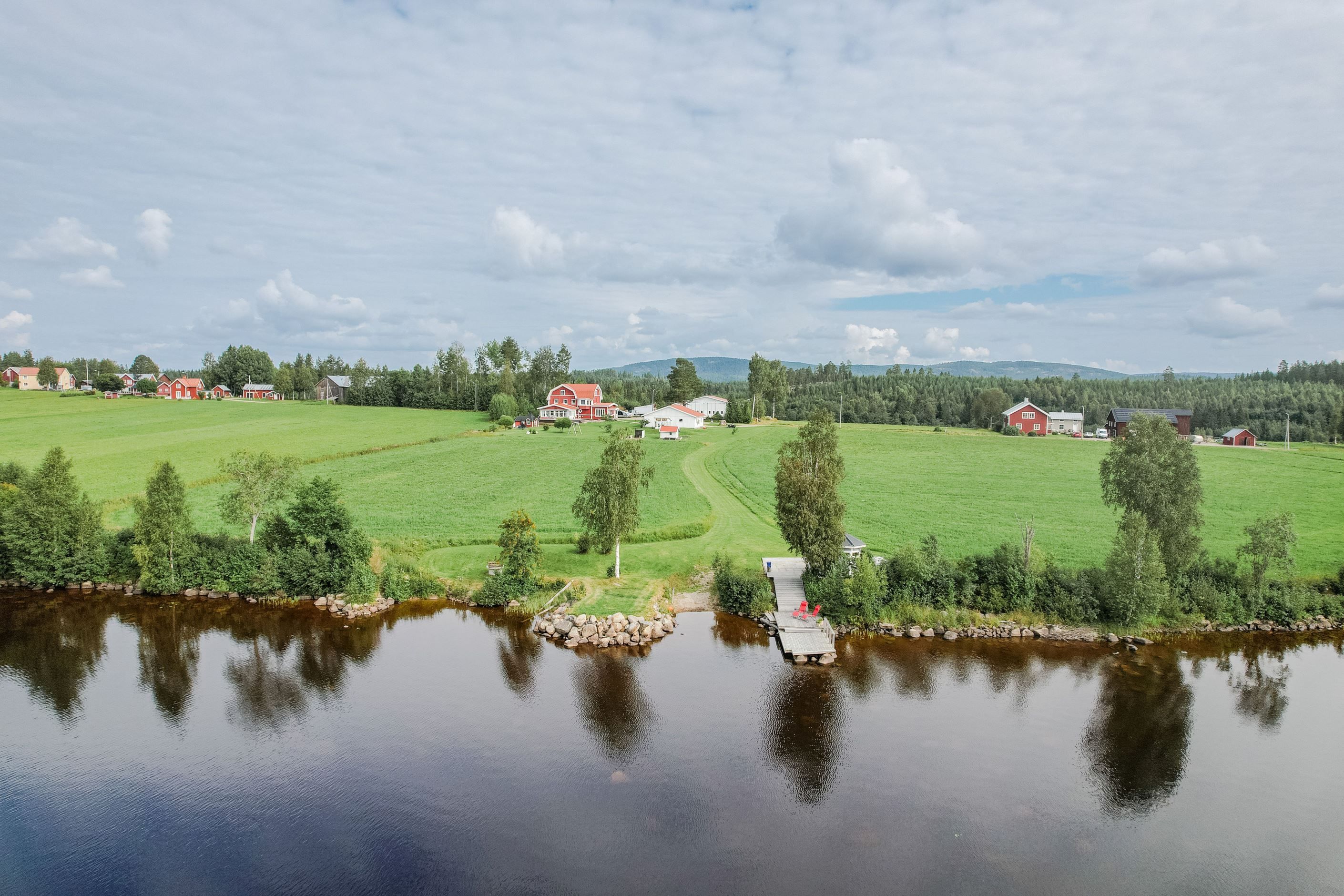 Unik jordbruksfastighet med sjötomt, egen strand och imponerande garage- och verkstadbyggnader!