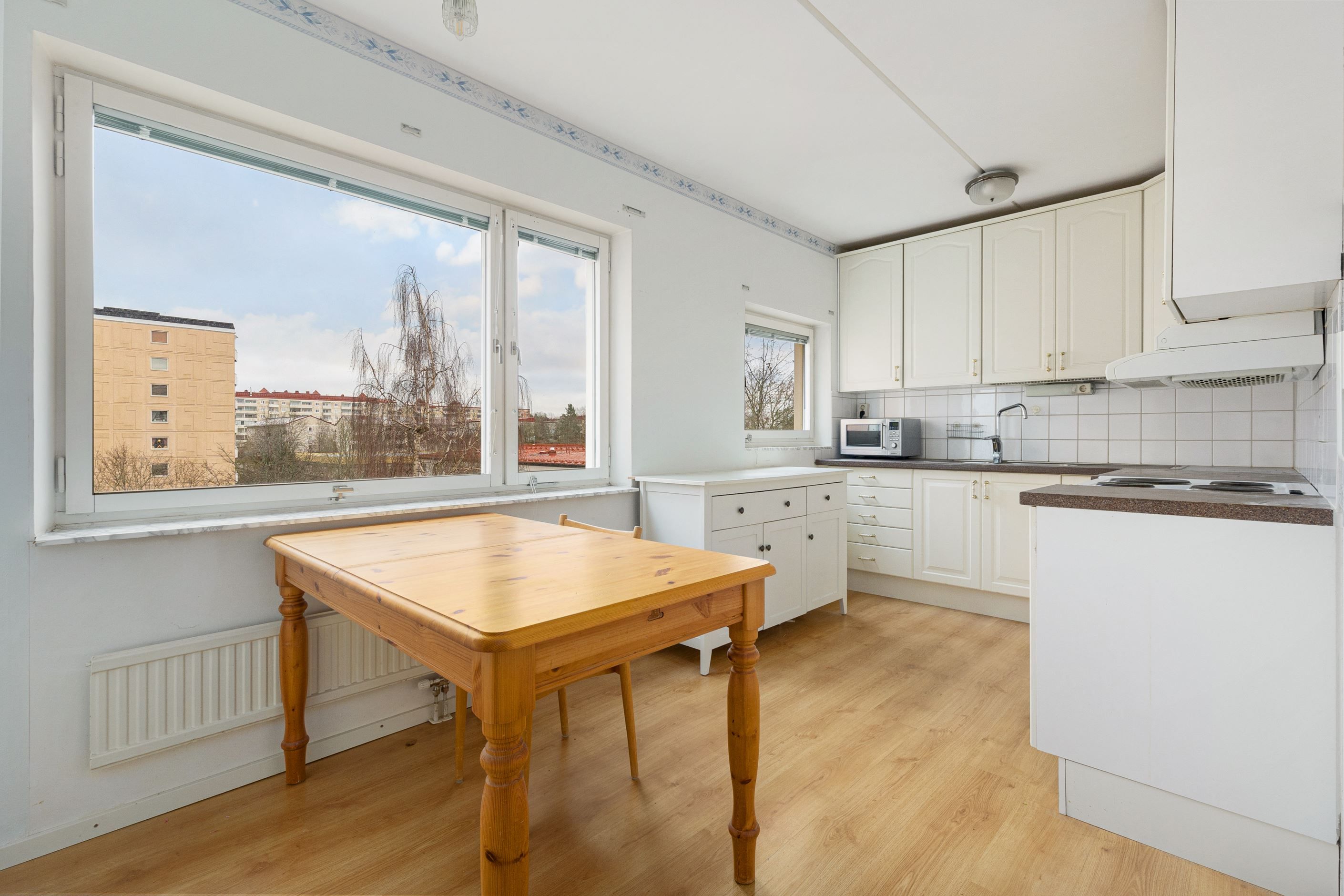 Nu ges ett utmärkt tillfälle att förvärva denna mycket trevliga och rymliga tvåa om 66 kvm, belägen på våning fyra med härlig utsikt, kvällssol och helt utan insyn. Lägenheten har ett attraktivt gavelläge som ger ett fantastiskt ljusinsläpp från stora fönsterpartier samt möjlighet att skapa en trea tack vare gavelfönstret.