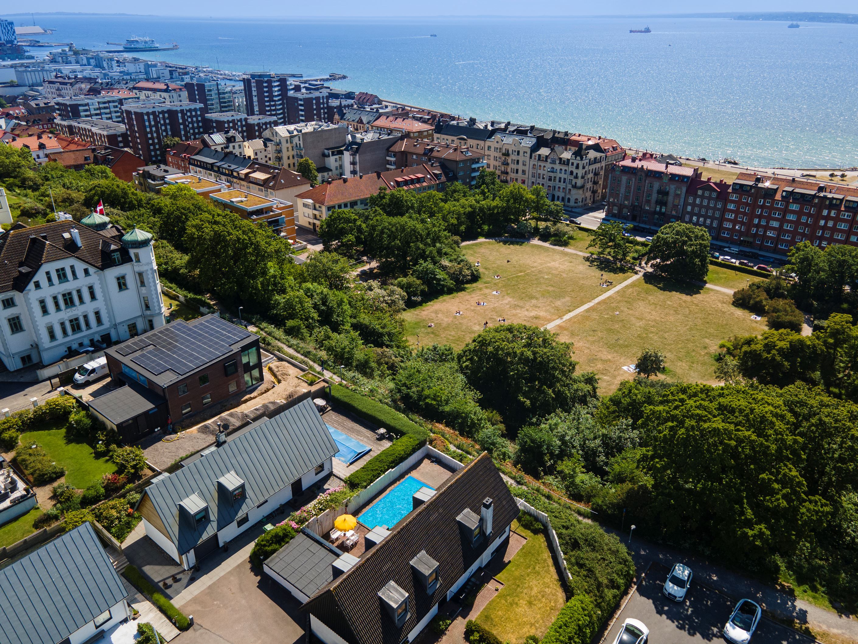 På ett av Helsingborgs bästa lägen, intill Landborgspromenaden och med enastående utsikt över Helsingborg, Öresund och Helsingör, hittar du denna pärla. Bostaden har generösa sociala ytor, stora fönster som släpper in mycket ljus och möjlighet att njuta av utsikten från trädgården eller inifrån.