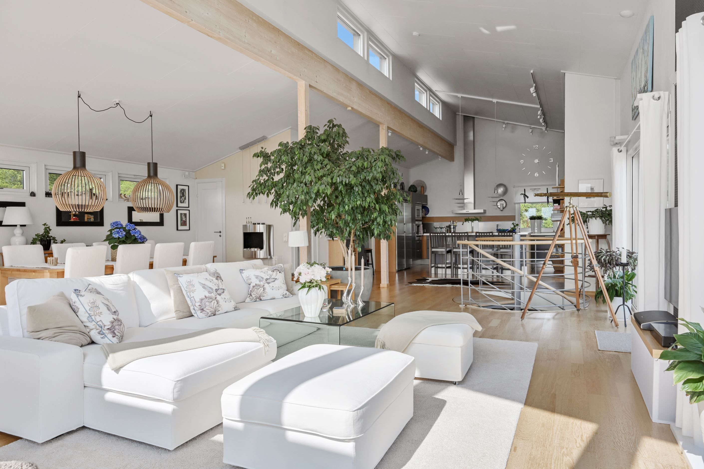 Med fem sovrum, tre badrum och två gästtoaletter finns plats för både familjeliv och gäster. Ytorna är generösa och genomtänkta med allt från tvättstuga som underlättar vardagen, till materialvalen som andas kvalitet och tidlöshet. Hela huset värms med bergvärme och vattenburen värme.