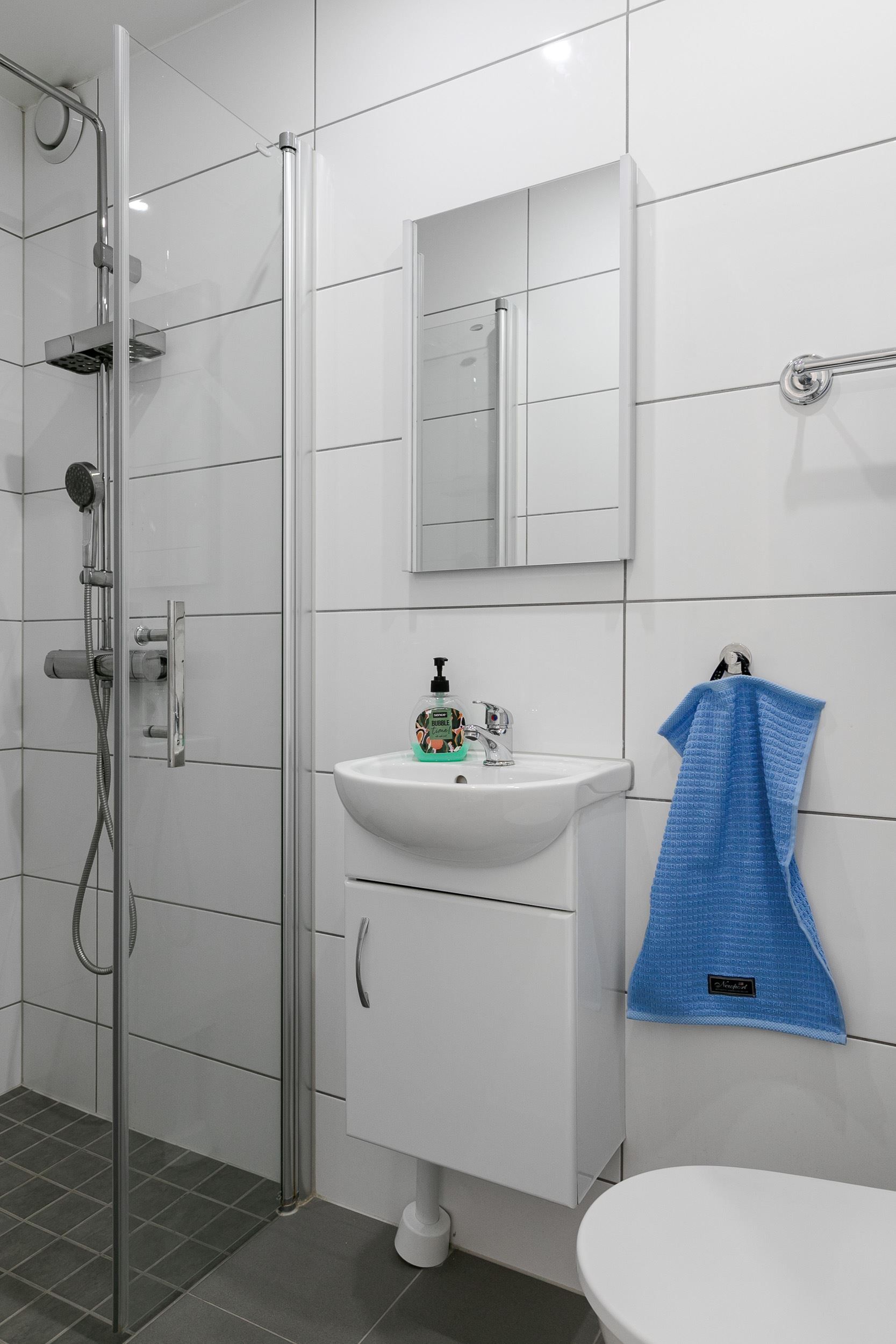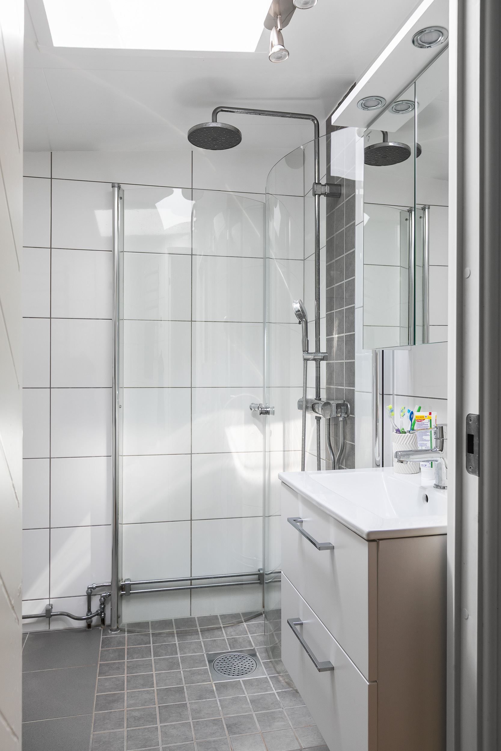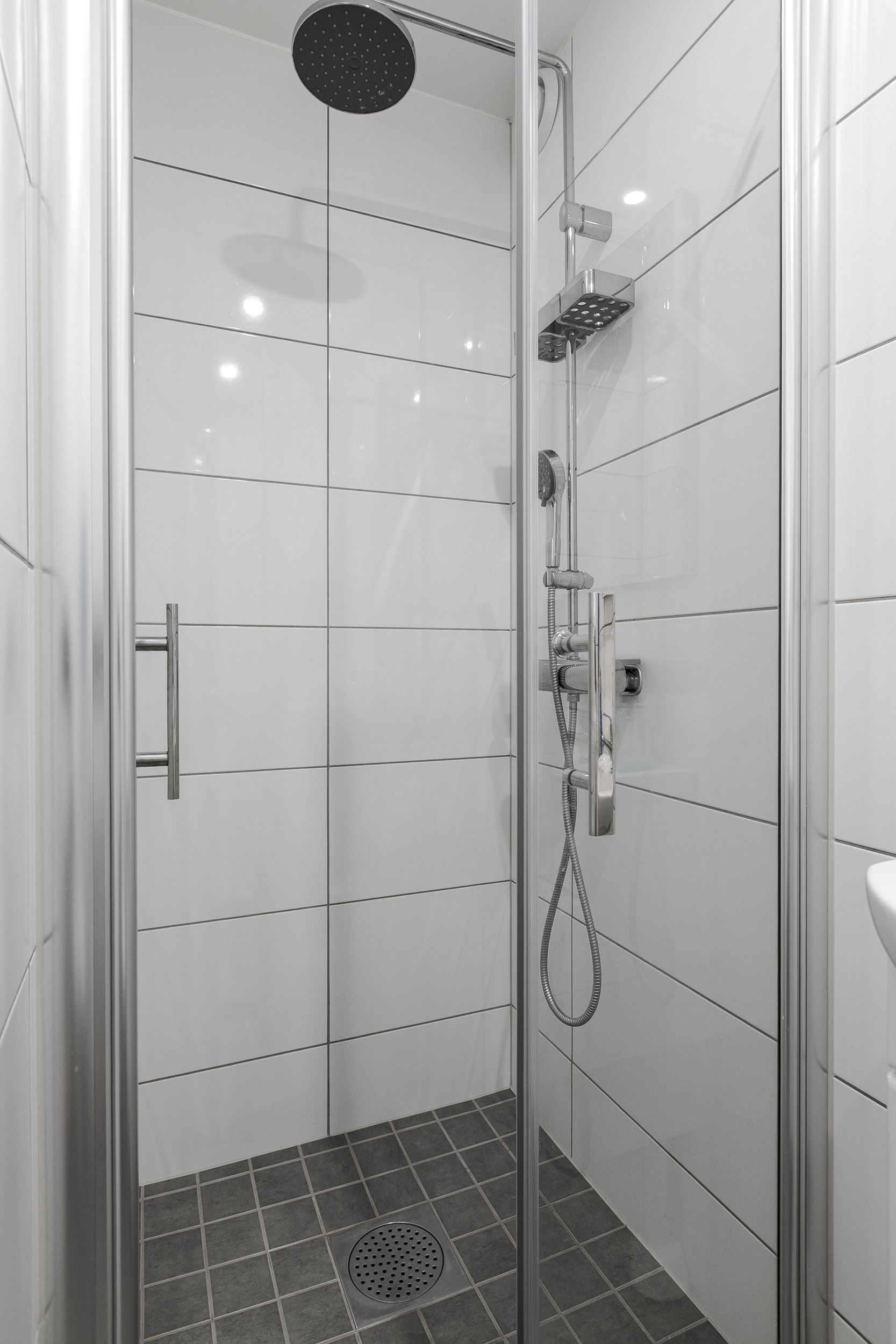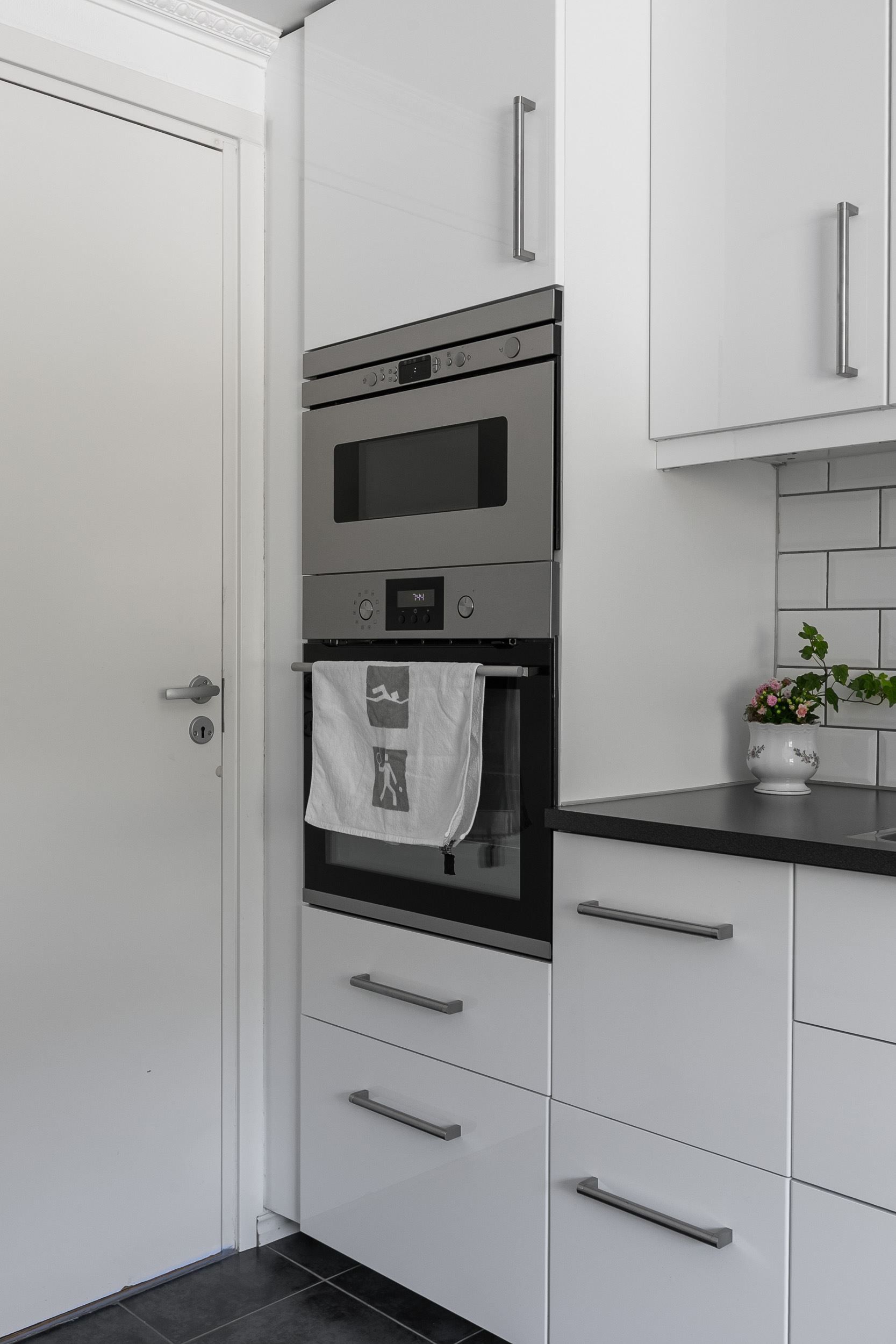 Det stilrena köket är utrustat med moderna vitvaror, gott om förvaring och arbetsyta samt vita högblanka luckor i kombination med klassiskt kakel. Sovrummen är ljusa och inbjudande, och badrummen fräscha och helkaklade.