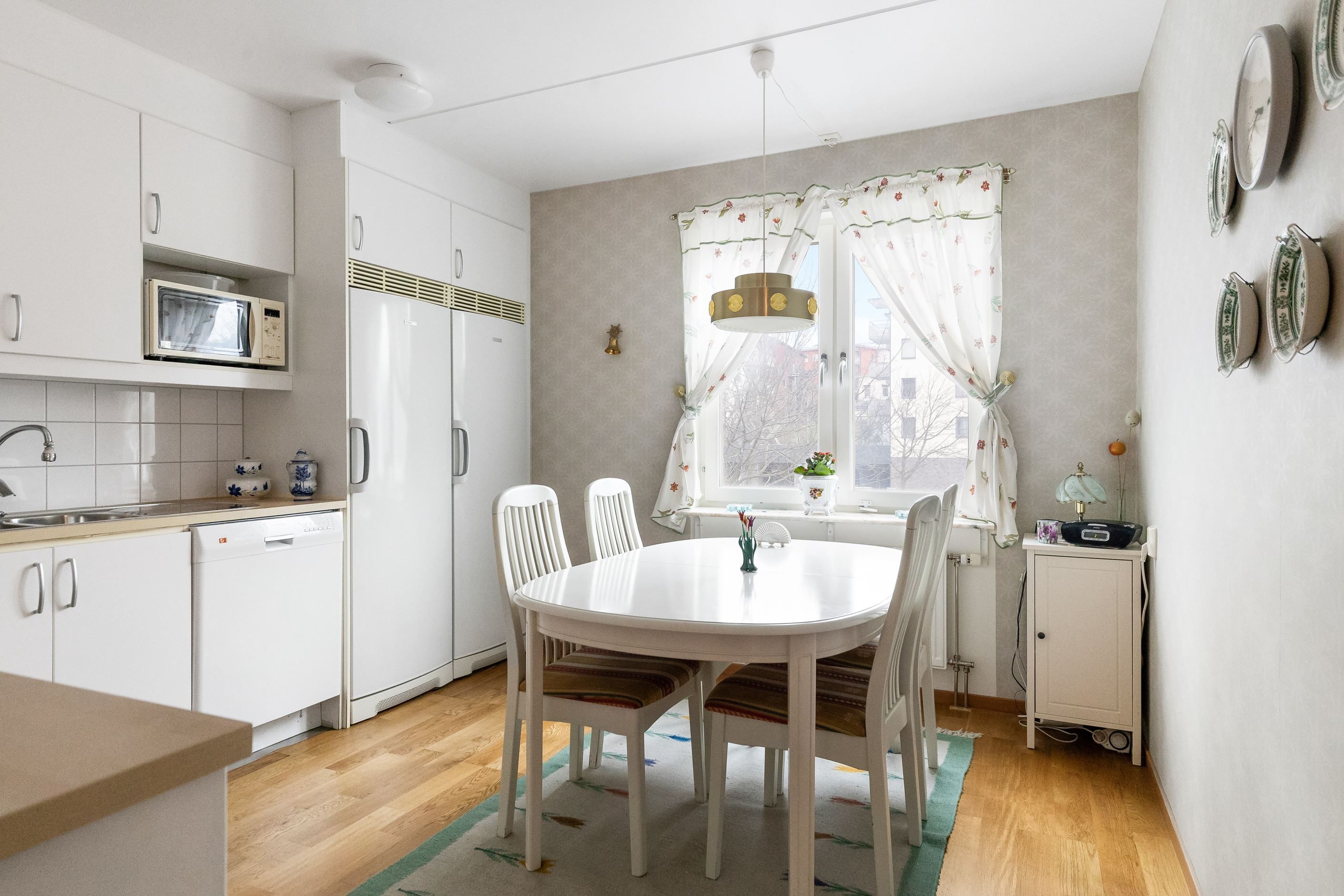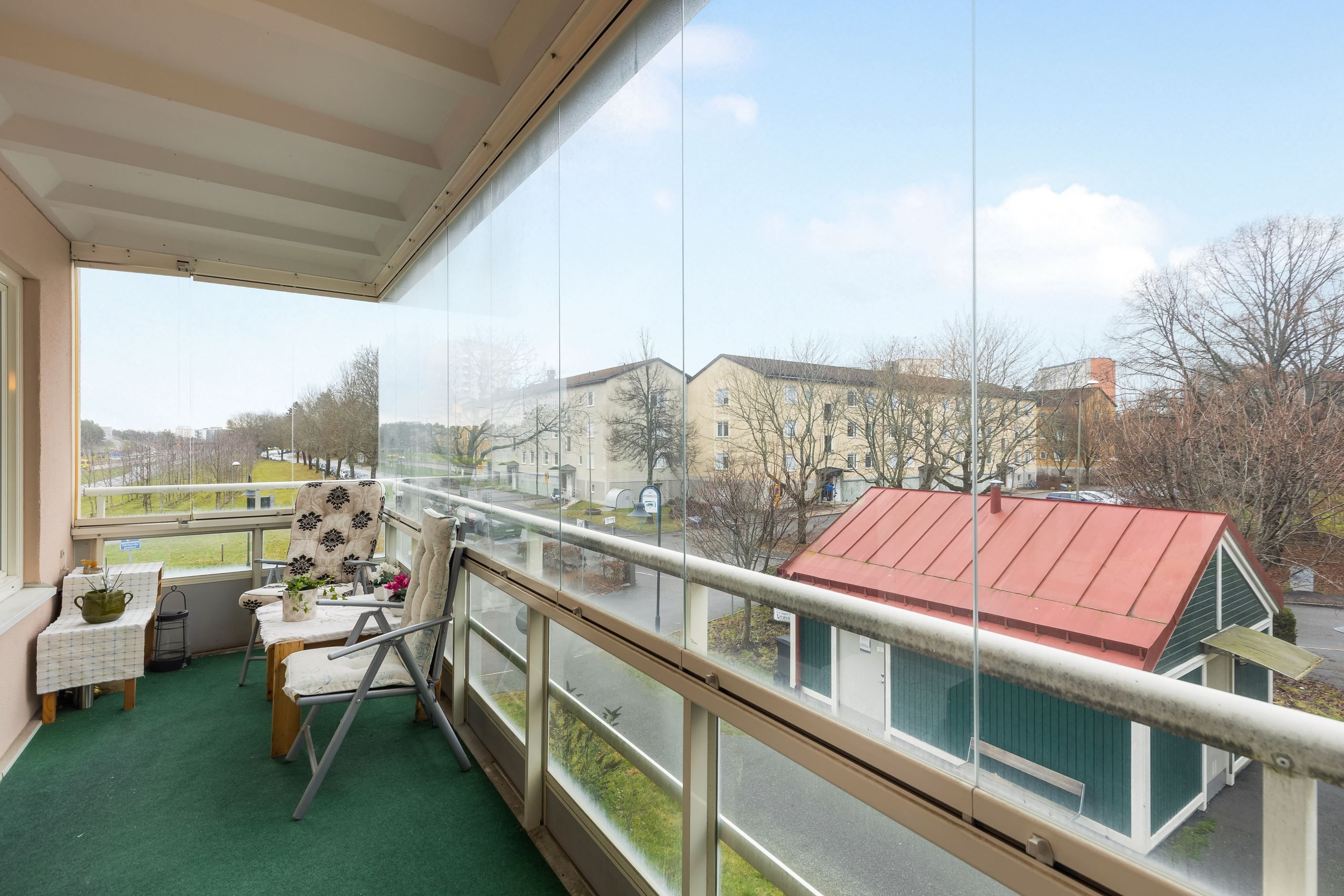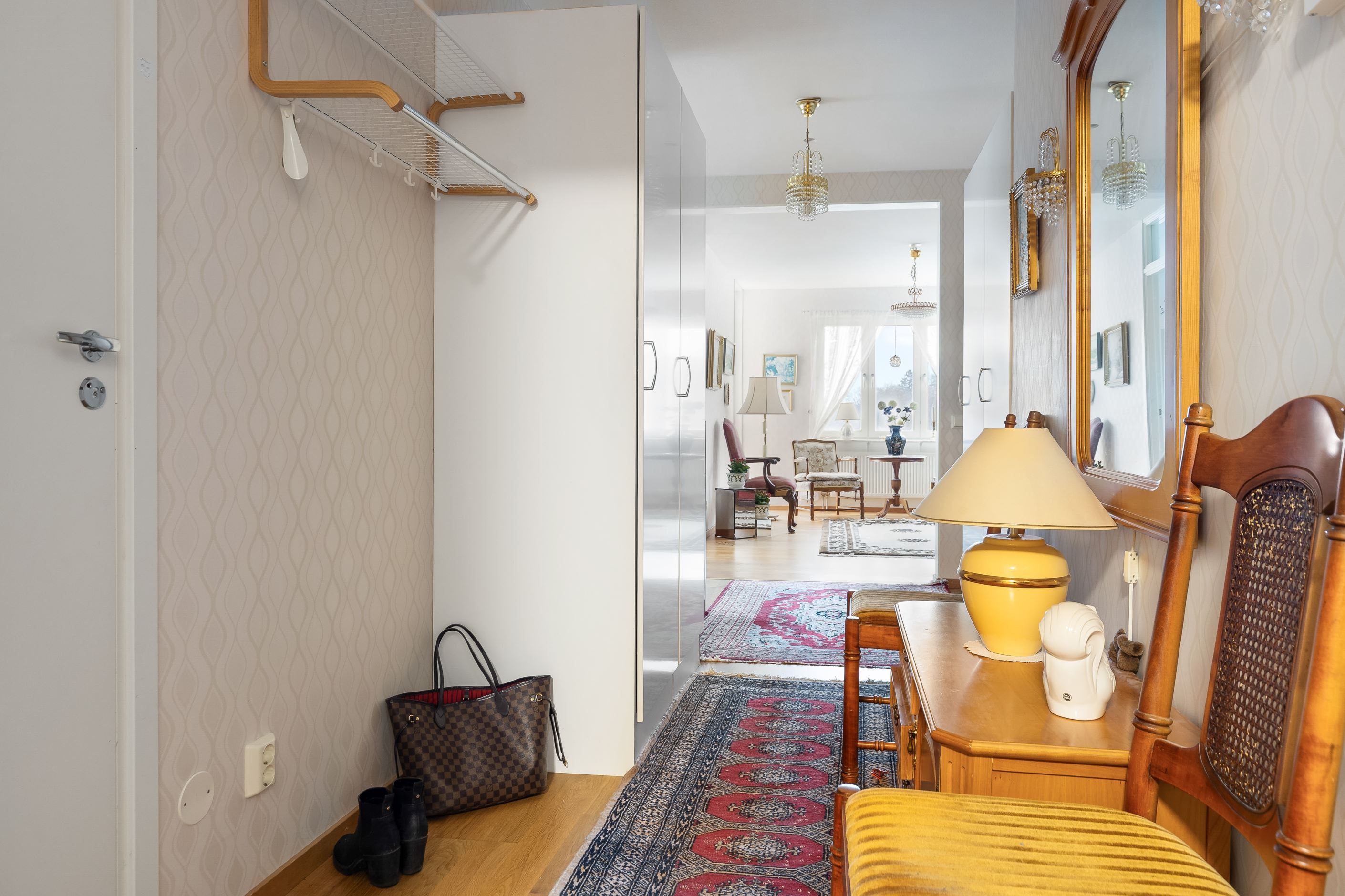 Genomgående ljust och fräscht med optimal planlösning. Praktiskt kök, helkaklat badrum och stor möblerbar balkong. Bra förvaringsmöjligheter.