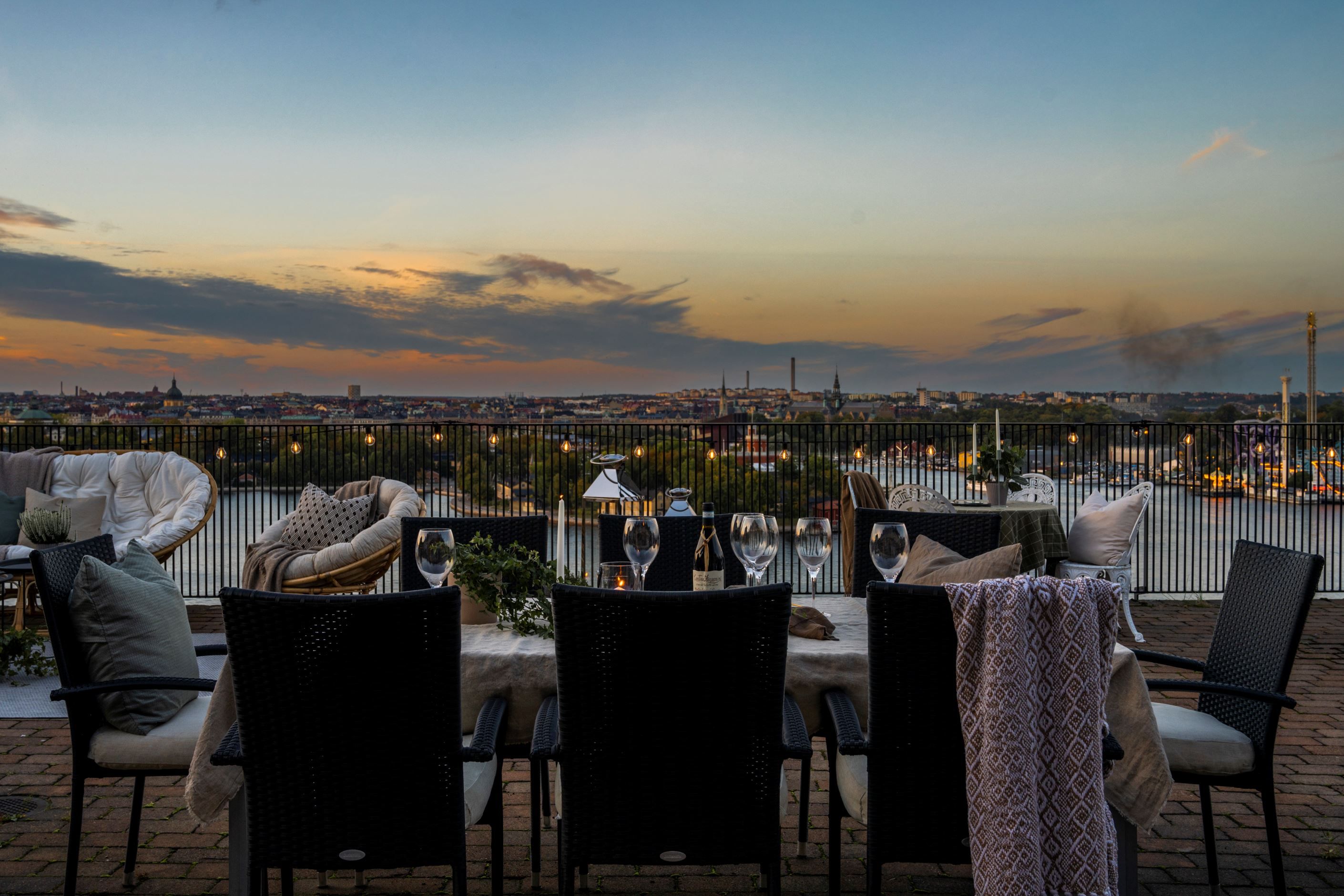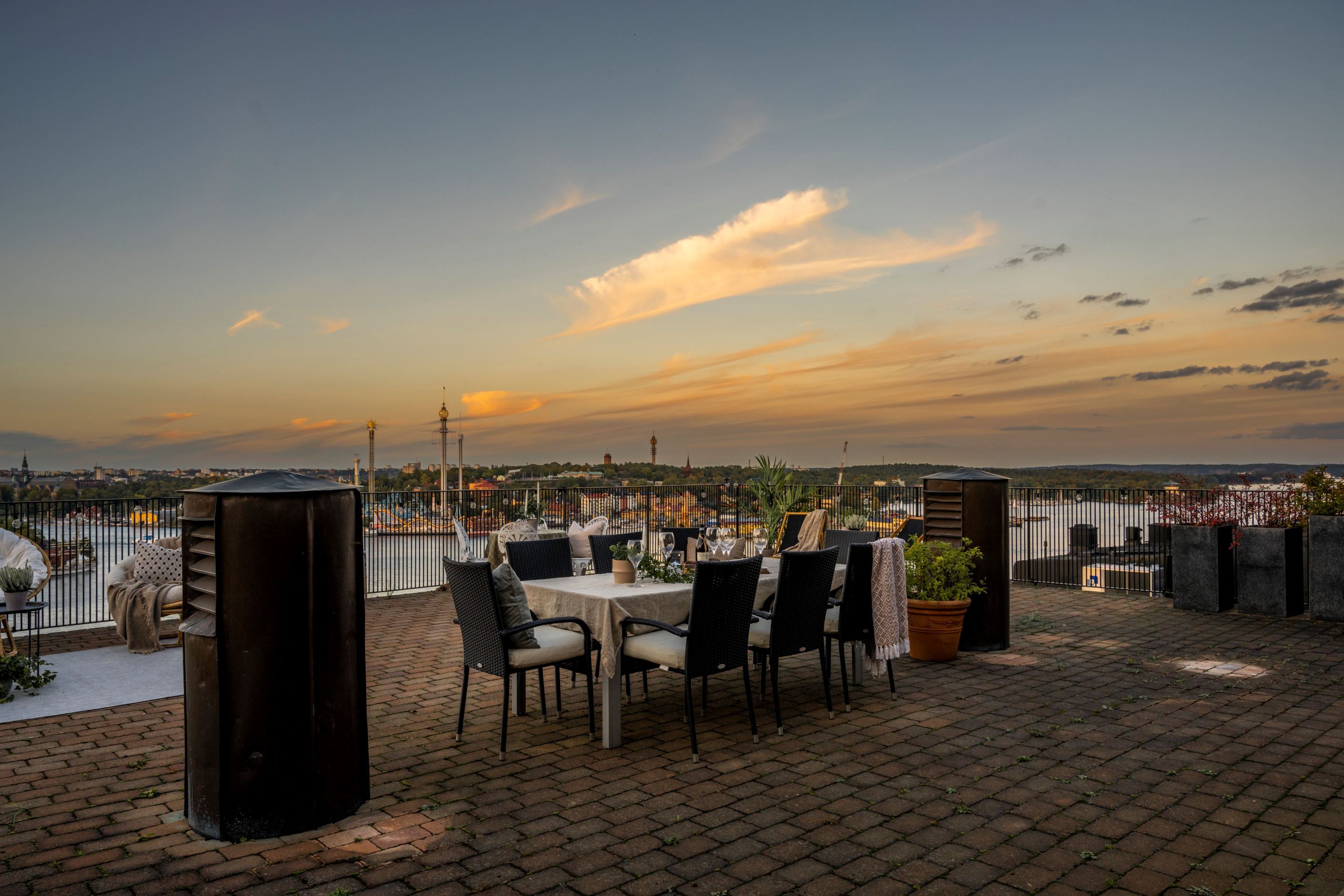 En terrass nästan lika stor som lägenheten med Stockholms bästa utsikt? Ja tack! Nu finns chansen att förvärva Södermalms mest unika lägenhet med en terrass på ca 125 kvm där ni har utsikt över hela Stockholms inlopp. En helt fantastisk våning med bevarad 20-talscharm, öppen spis, fönster i tre riktningar, kungsbalkong och separerad hiss som delas med en granne. En lägenhet som behöver upplevas på plats!
