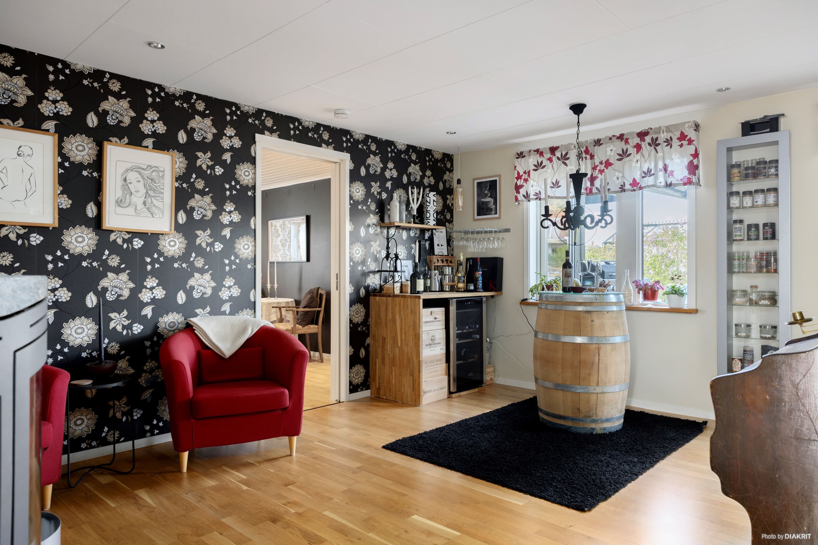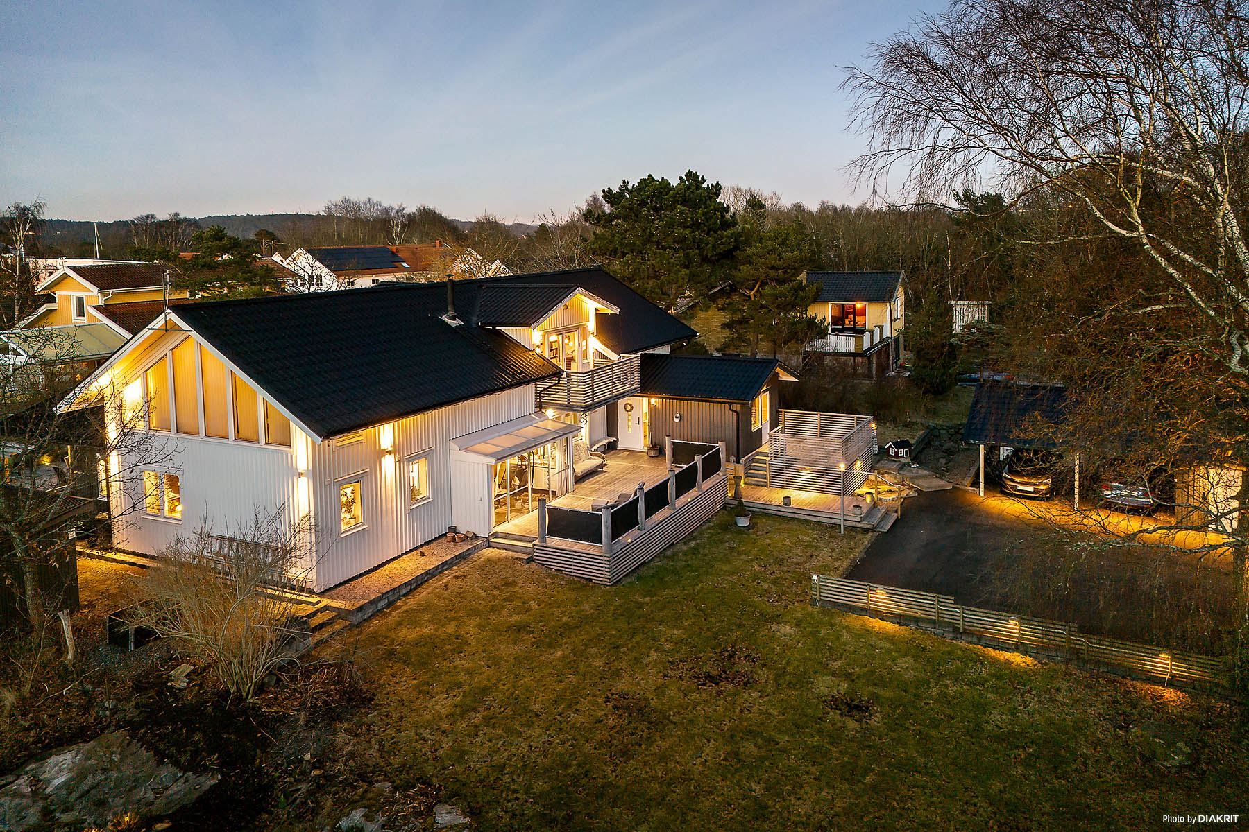 Husets sociala ytor är generösa och hemtrevliga, med stora fönsterpartier som bjuder in det naturliga ljuset. Köket är praktiskt placerat med öppen anslutning till både matplats och vardagsrum – en inbjudande plats för såväl vardagsliv som festliga tillställningar. Från vardagsrummet når du det stora altandäcket i bästa solläge, med flera härliga uteplatser, utekök, loungedel och plats för både middagssällskap och avkoppling i hängstolen. Perfekt för sommarens alla tillfällen.