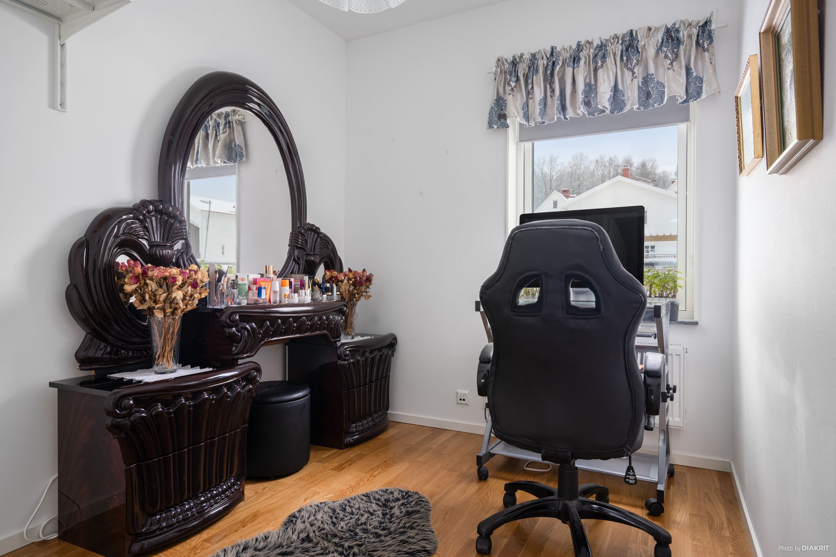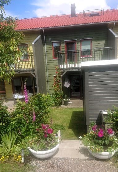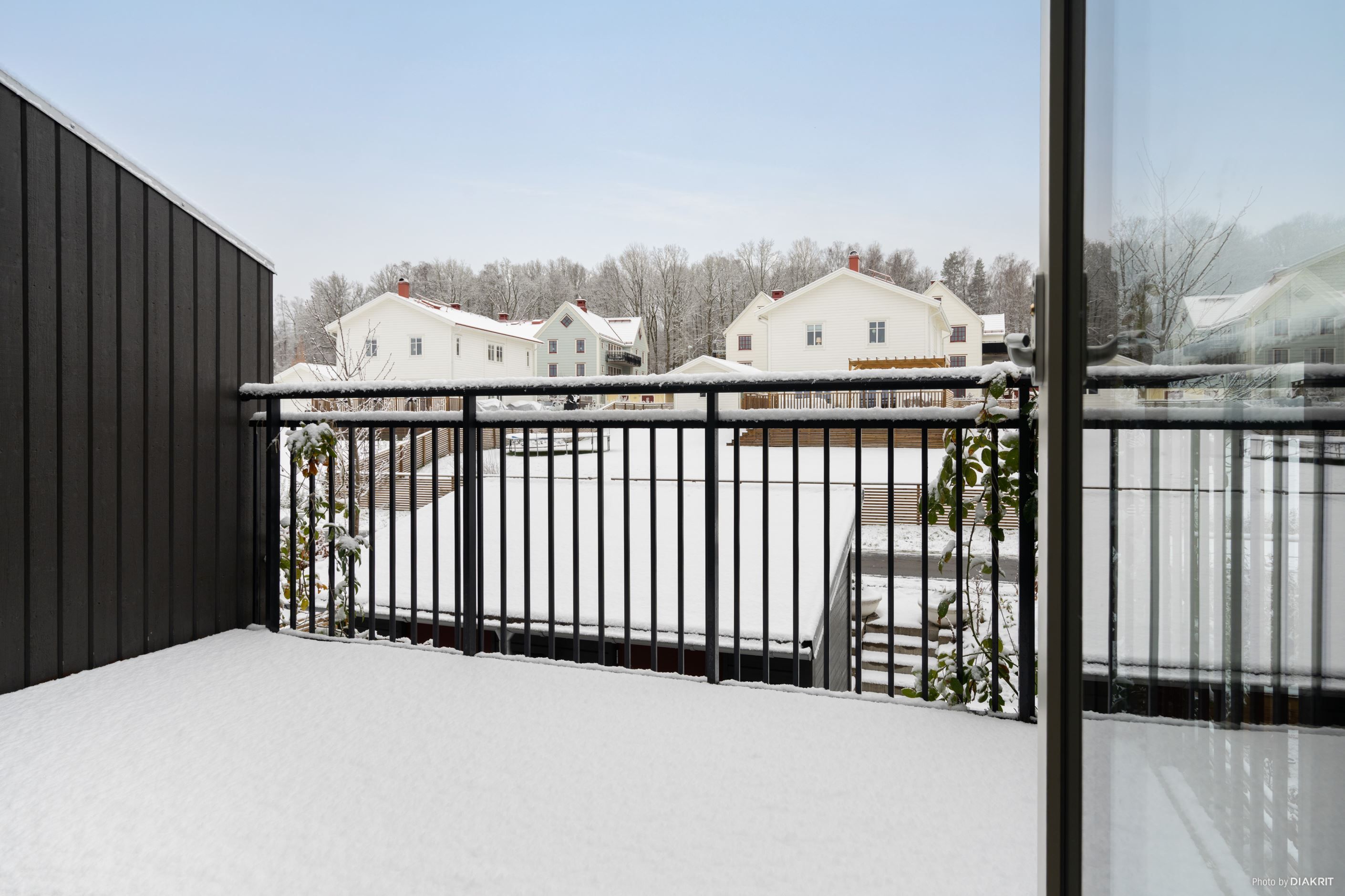 På entrésidan finns en trevlig uteplats och intill huset ligger två egna parkeringsplatser – bekvämt och lättillgängligt i vardagen. På baksidan väntar en insynsskyddad uteplats med plats för både loungemöbel och matgrupp samt praktiskt förråd. Sommarbilderna visar hur den egna uteplatsen förvandlas till en grönskande oas med rik blomning. Från övervåningen nås dessutom en generös balkong med härlig utsikt över omgivningarna. I månadsavgiften ingår kabel-TV och bredband via Telia. Välskötta Brf Ingaredspromenaden ger en trygg boendeform med moderna hus och trivsam gårdsmiljö.