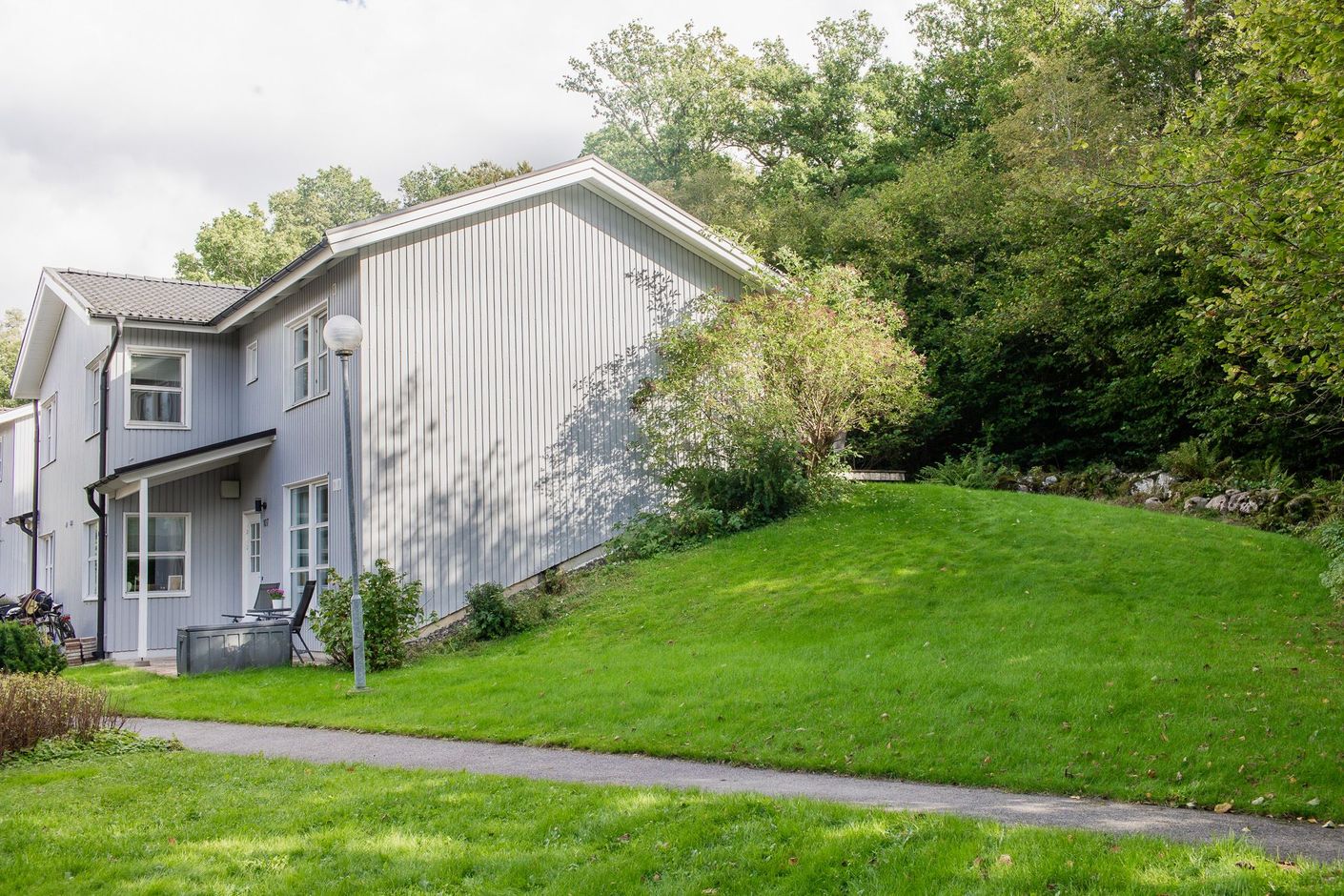 Här förbereds ett radhus med eftertraktat läge i utkanten av ett lugnt och barnvänligt område. På entréplan erbjuds en hall, rymligt kök med plats för matgrupp, vardagsrum, förråd, badrum, tvättstuga samt en stor trädgård med uteplats en våning upp i privat söderläge. På övervåningen finns tre sovrum och ett allrum som kan göras om till ett fjärde sovrum. Tack vare gavelläget så får den nya ägaren stor plats för både umgänge och lek även på utsidan. Den väl tilltagna altanen är stor nog att rymma alla dina nära och kära. Här får du plats med både soffgrupp och matgrupp.
