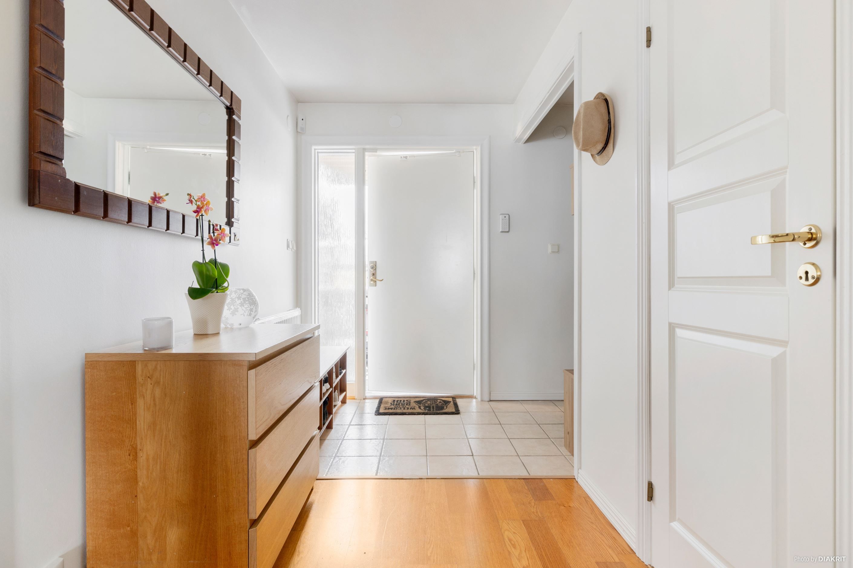 Entréplanet möter dig med en väl tilltagen och välkomnande hall med goda avhängningsmöjligheter samt praktiskt förråd. På detta plan finns även wc, sovrum samt bostadens sociala ytor där kök och vardagsrum skapar en naturlig samlingsplats för både vardag och helg.