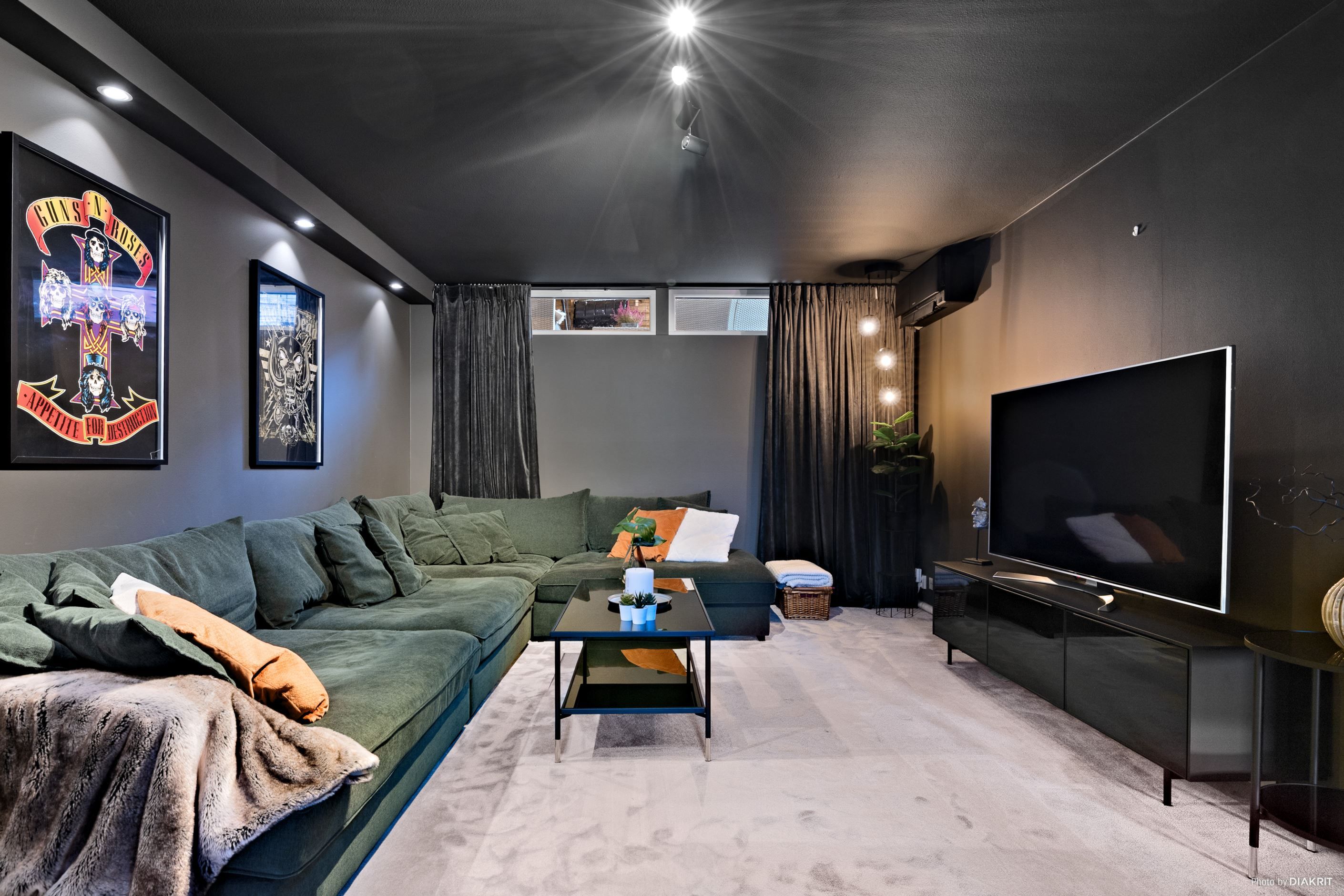 En trappa ner väntar souterrängvåningen med 2 sovrum och ett stort arbetsrum/gästrum. Här finns också ett fantastiskt nyrenoverat tv- och sällskapsrum med hög mysfaktor. Den heltäckande mattan, lugna färgvalen och den generösa ytan skapar en perfekt plats för filmkvällar, umgänge eller tonårsdel. På detta plan finns även ett stort och smakfullt badrum med wc, utrustat med bubbelbadkar, separat duschrum samt tvättstuga, vilket gör vardagen både bekväm och funktionell.